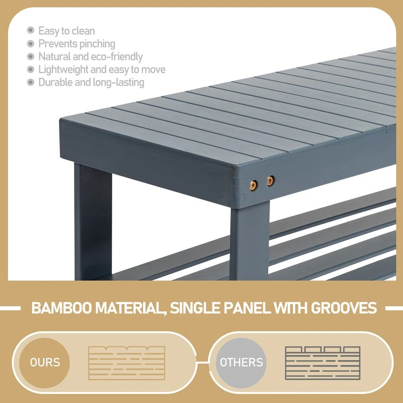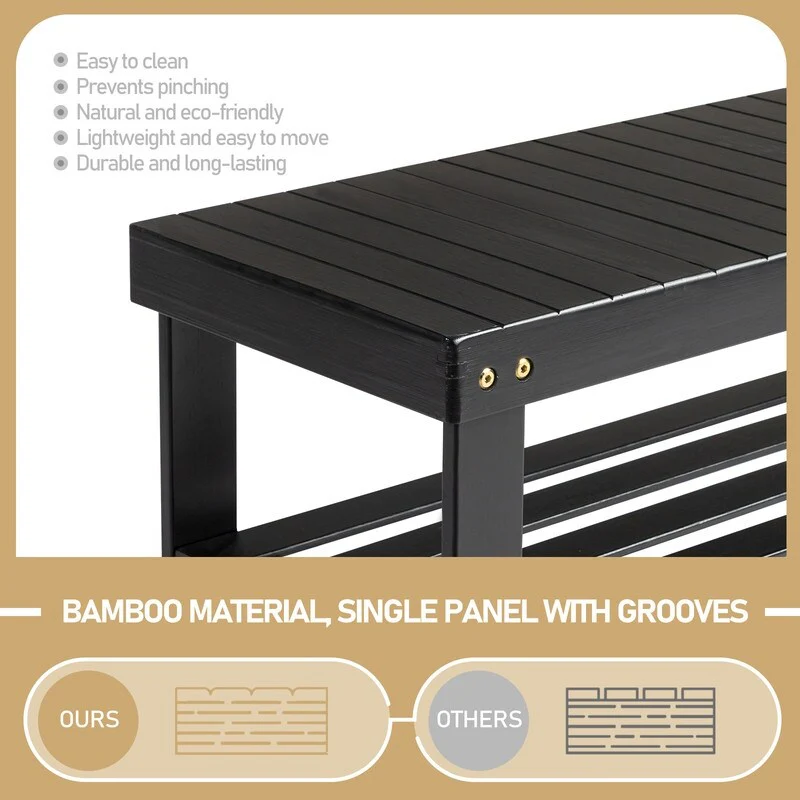 Take a try of this 90cm Strip Pattern 3 Tiers Bamboo Stool Shoe Rack! Unique strip design makes this shoe rack stylish. As a shoe rack, it is designed into 3 tiers for storage in order. In addition to its shoe rack function, it is also a nice stool for you to conveniently wear or take off your shoes. Adopting superior bamboo material and with fine workmanship, it is solid and durable to use. It is a compact item, which won't occupy much space! Just try!
