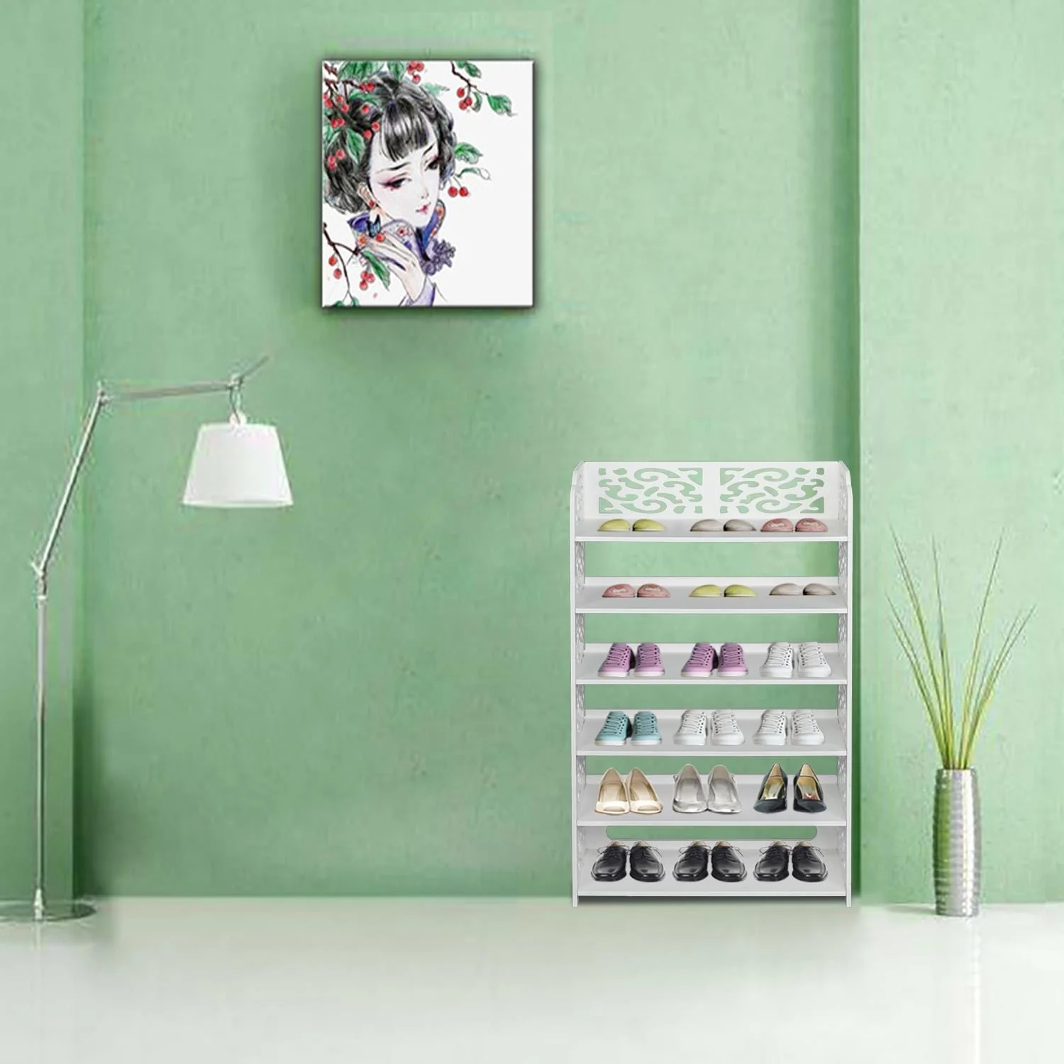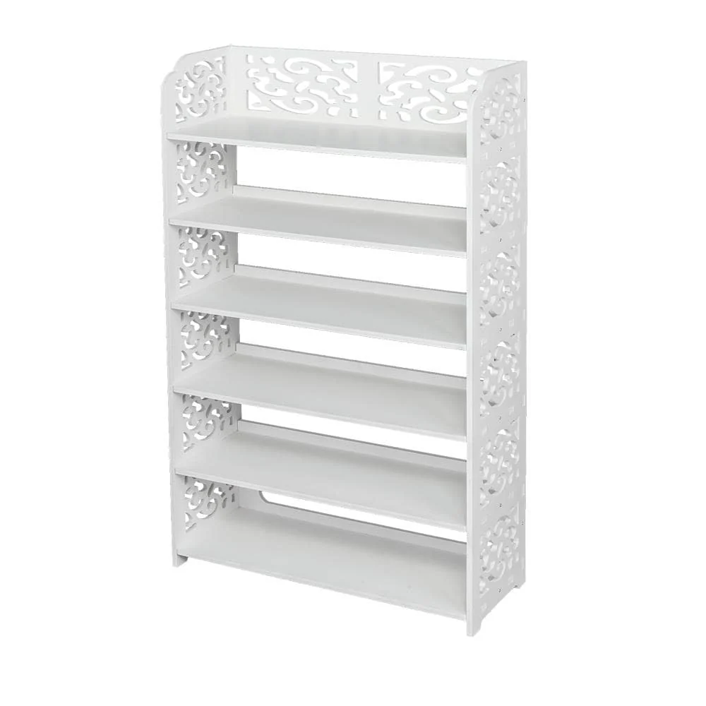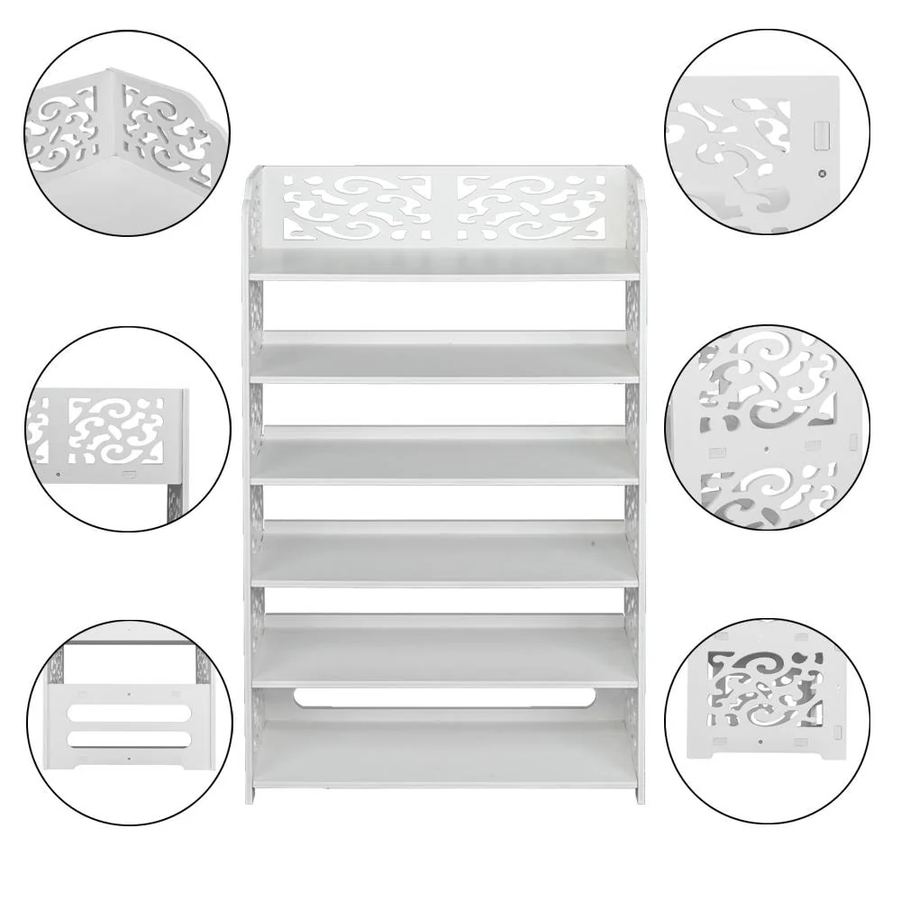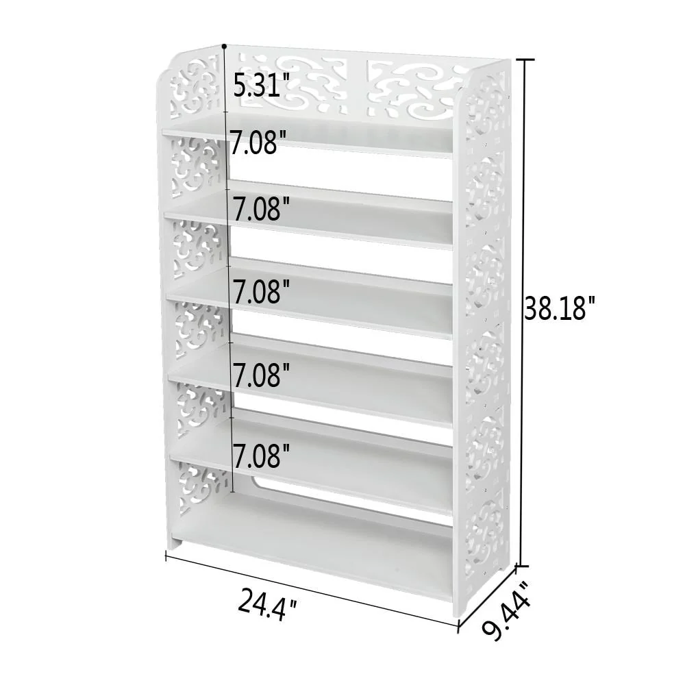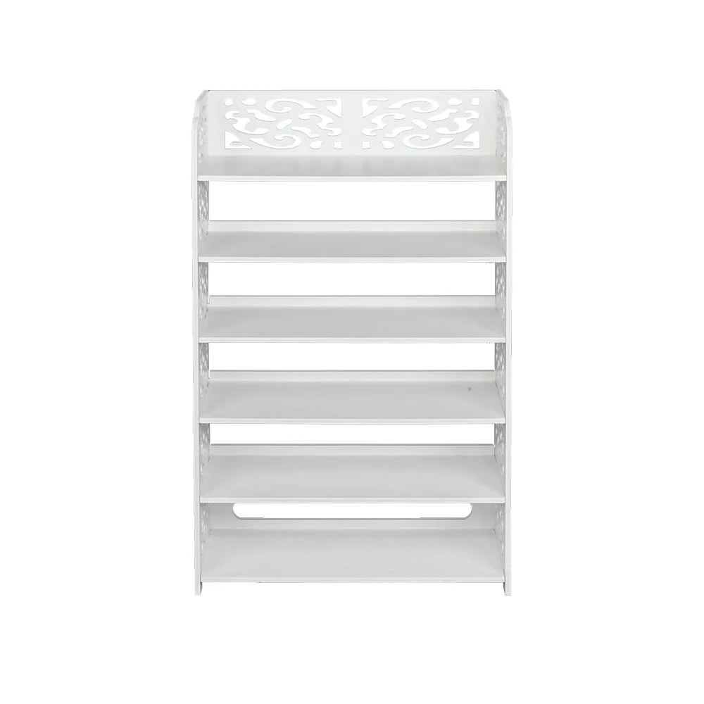 Are you looking for a practical rack to organize your shoes? If so, this Wood-plastic Board Six Tiers Carved Shoe Rack is highly recommended to you. It adopts wood-plastic board, which is smooth and beautiful. It also features waterproof, damp proof, easy to clean and not easy to become mildewed. With hollow design, it's suitable for many occasions, like living room, hall, study, bedroom, etc. Moreover, it's easy to install with no tool needed. So what are you waiting for? Just take this practical bookshelf home!