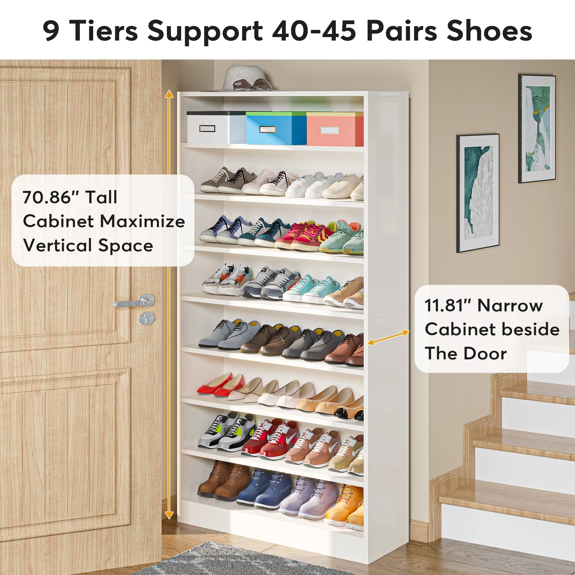 - [Space-saving Solution to Your Room] 70.86H * 31.50W * 11.81D inches. This high and narrow shoe storage cabinet is an excellent 'housekeeper' for your room, which save lots of horizontal space and at the same time take care of your shoes. This open shoes cabinet make it easy to place or get your shoes.