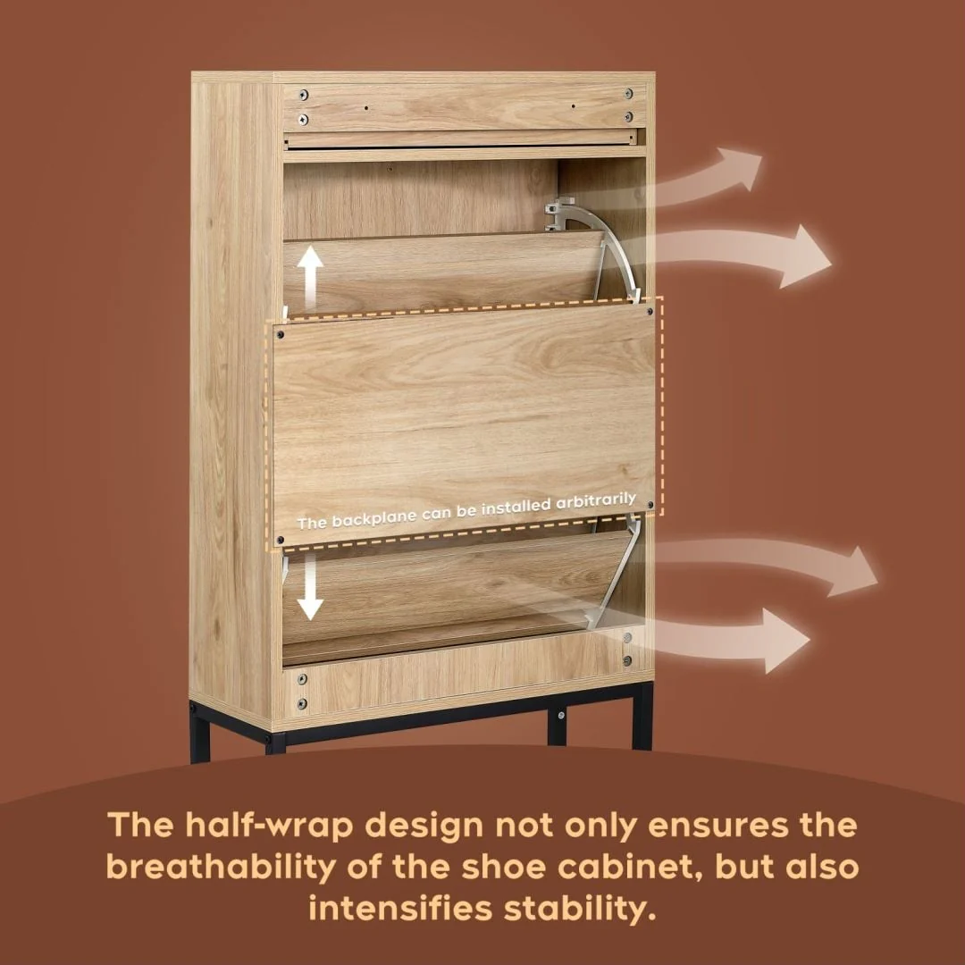 - Compact Design: the depth of the shoe cabinet is less than 9 inches, close to the wall, does not take up space, saves aisle space, and can reasonably store items. It's a total boon to narrow entryways. The half-wrap design ensures the ventilation of the shoe cabinet. The leg design is also convenient for cleaning. Place it in your home as if it were a work of art and striking. The perfect amount of décor and storage is just what you need to fulfill your beautiful vision for your home. For small homes, it is undoubtedly a good choice.
