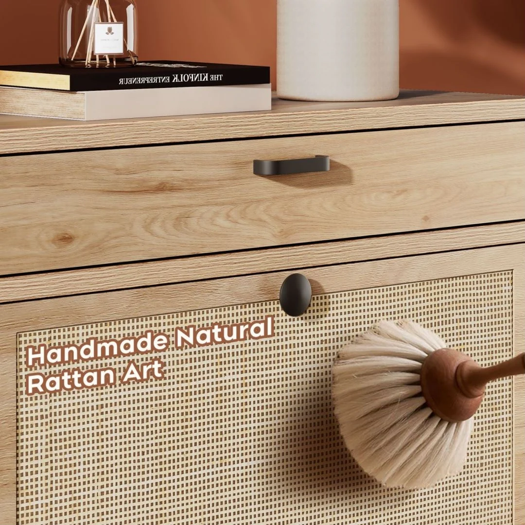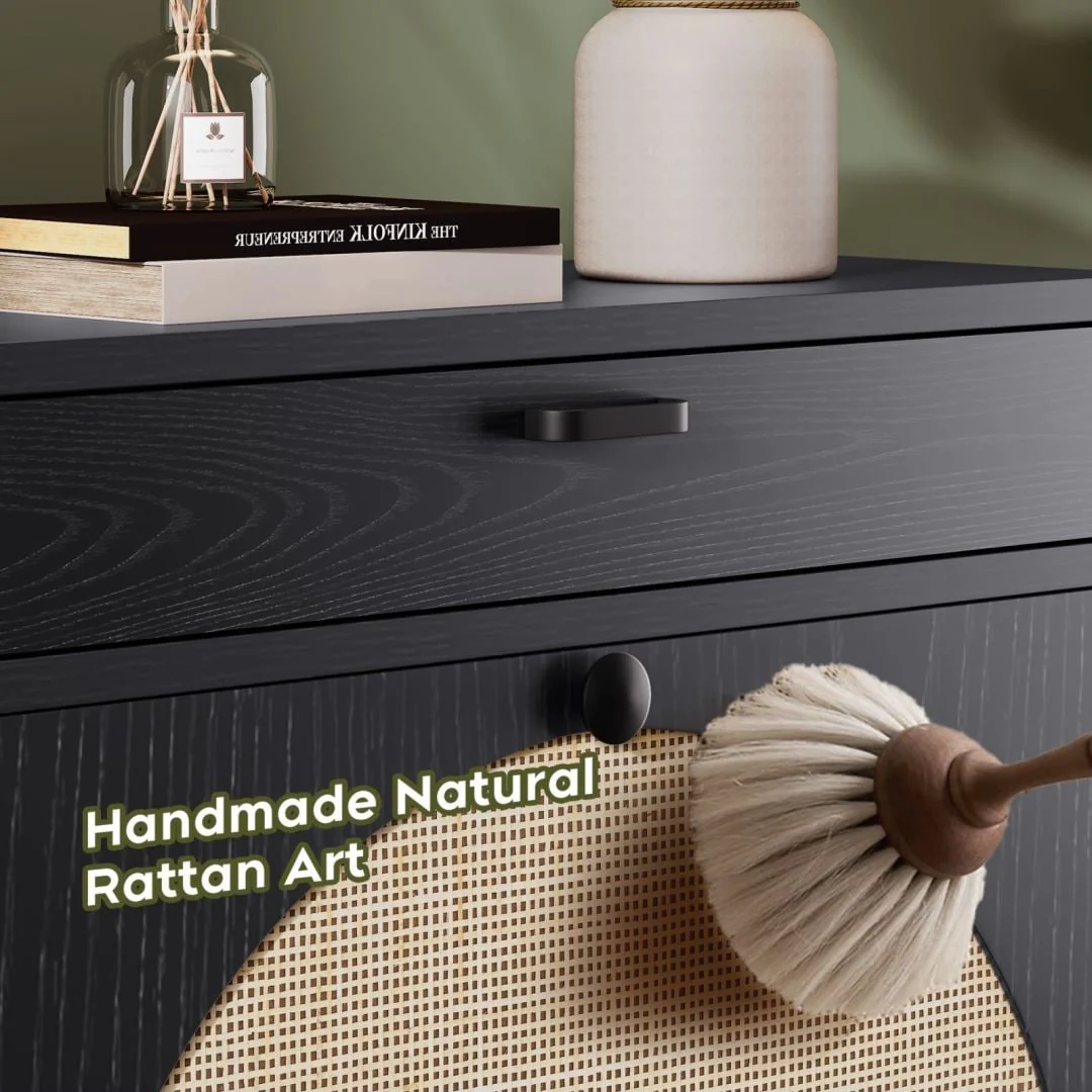 - High-Quality Materials: It’s made of high-grade MDF and metal materials, odorless, safe, and environmentally friendly. Imported natural rattan is not easy to break, soft and wear-resistant, very artistic, classic, and durable never out of fashion. Smooth metal handles give the shoe cabinet a touch of texture.
