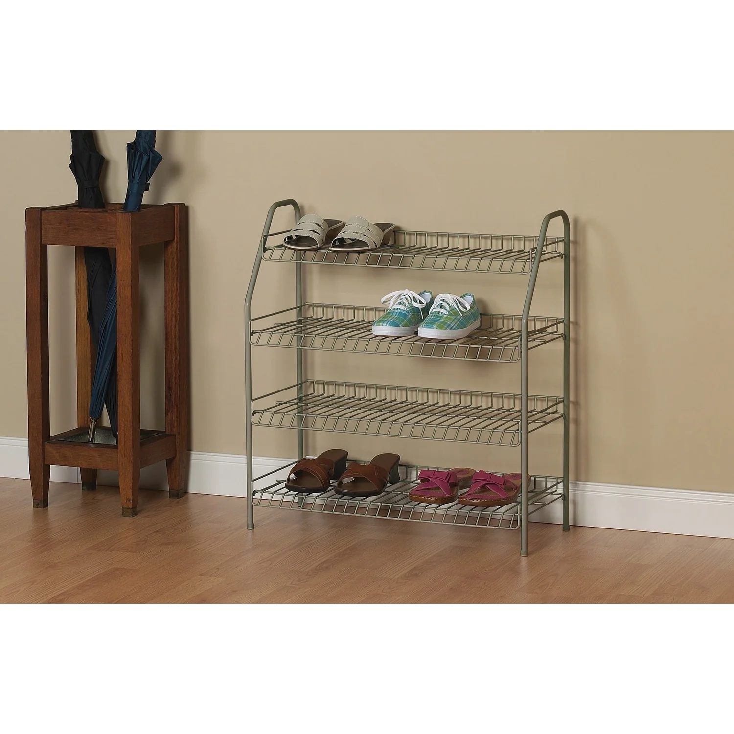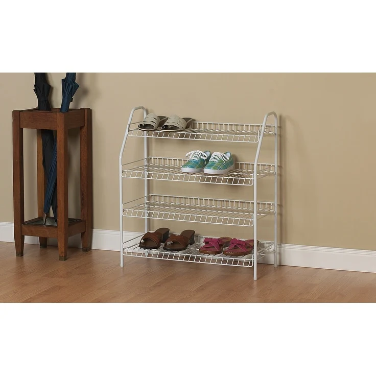 - 4-Tier shoe rack holds up to 12 pairs of shoes