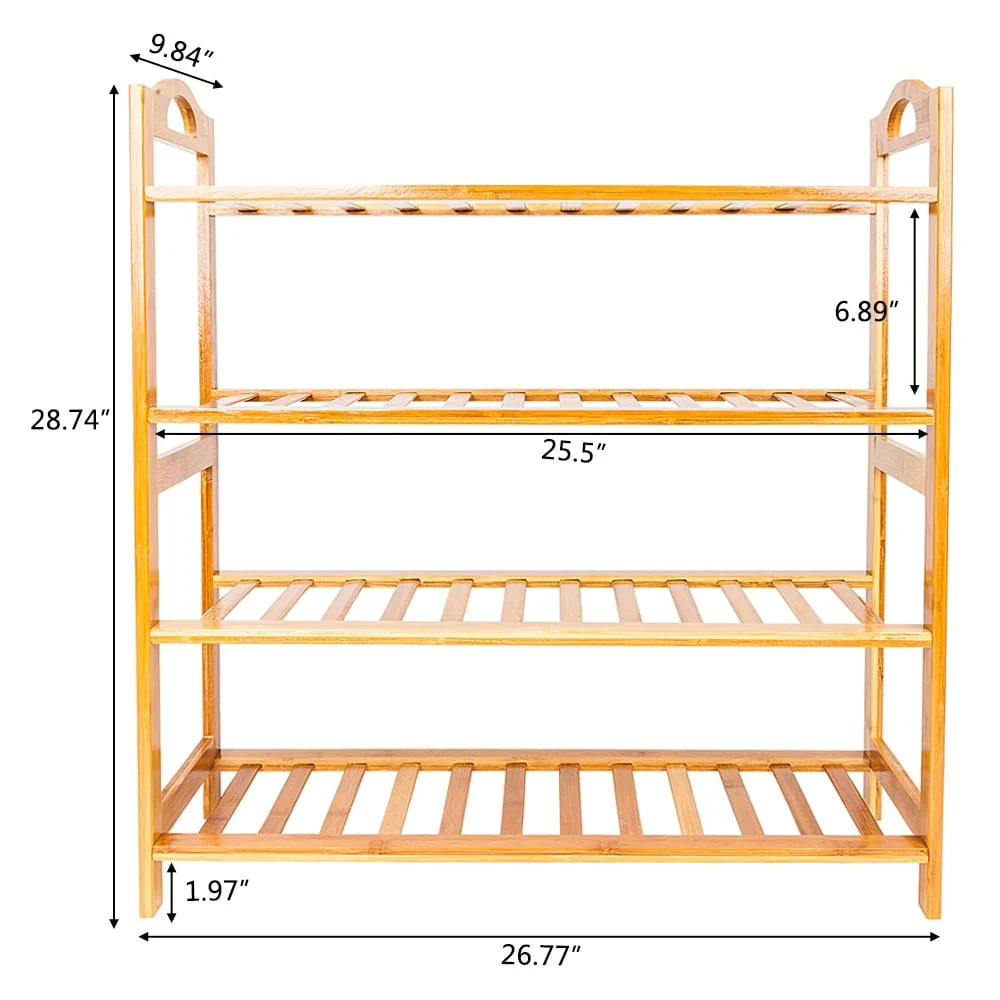 Concise 12-batten Bamboo Shoe Rack - 4-Tier