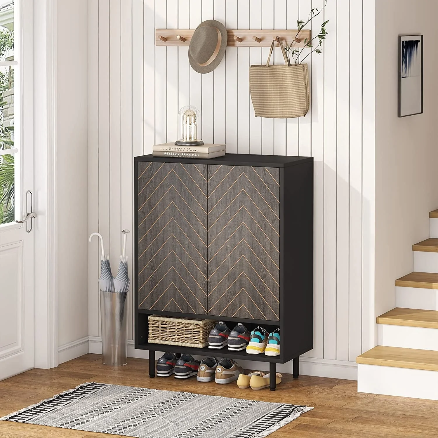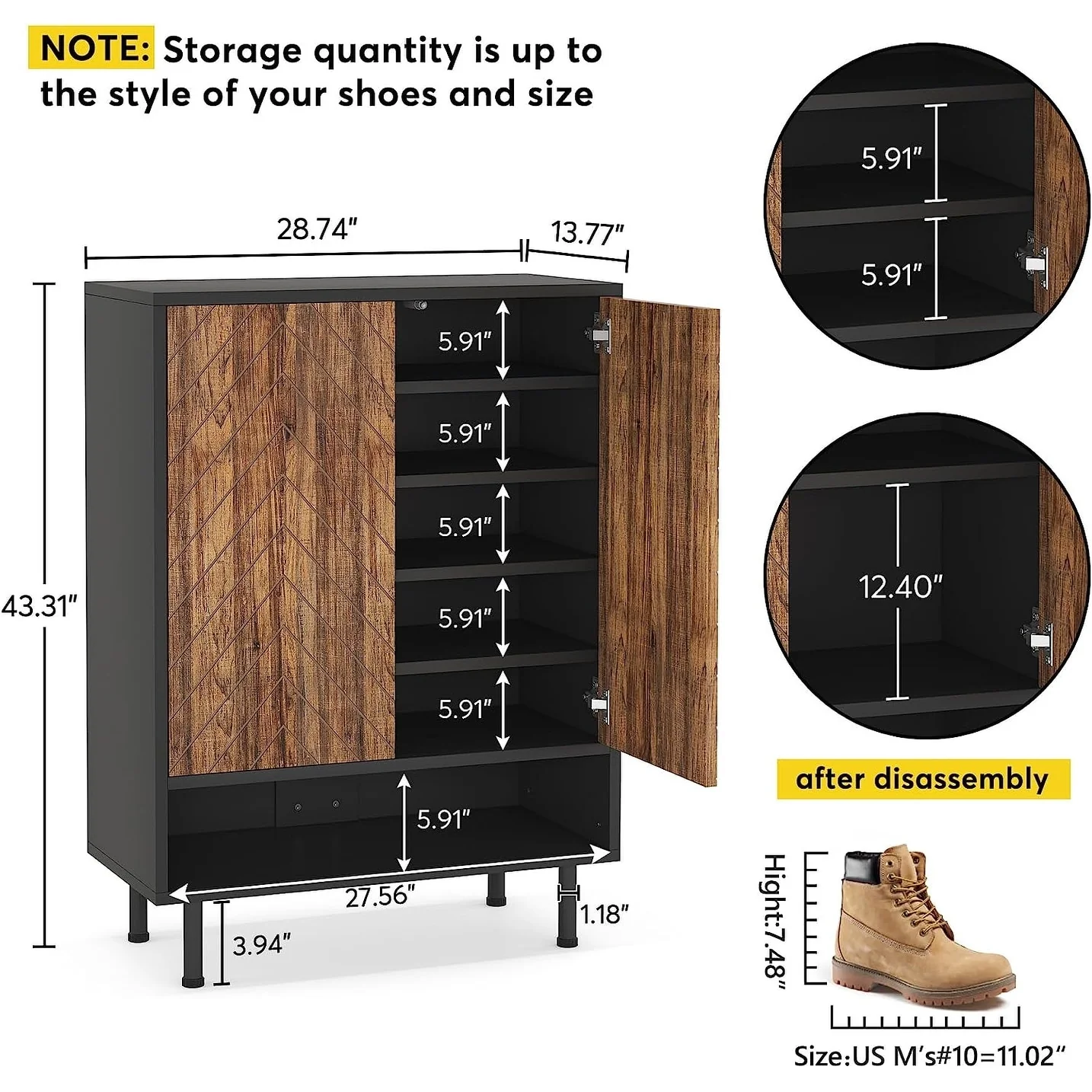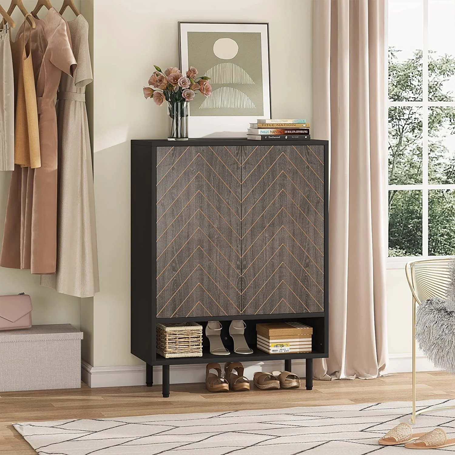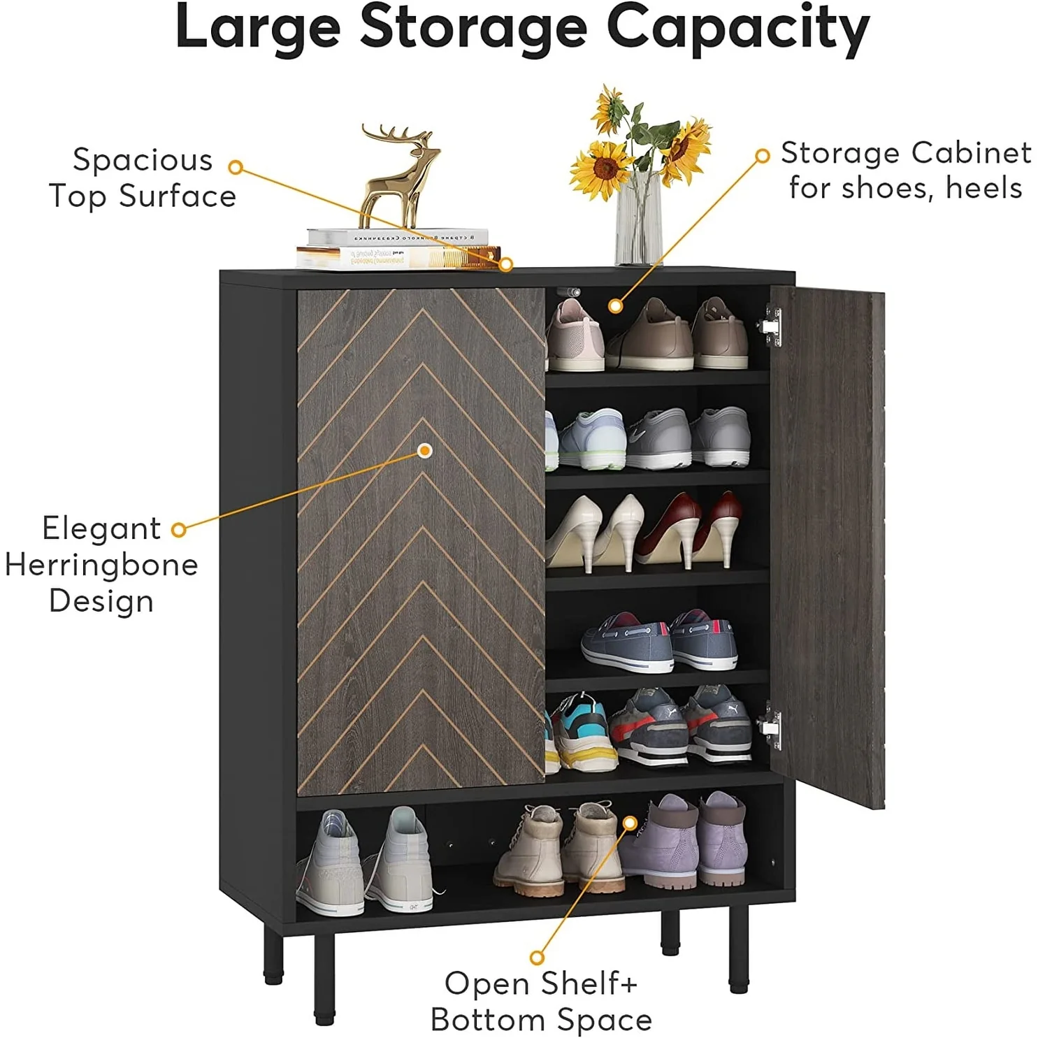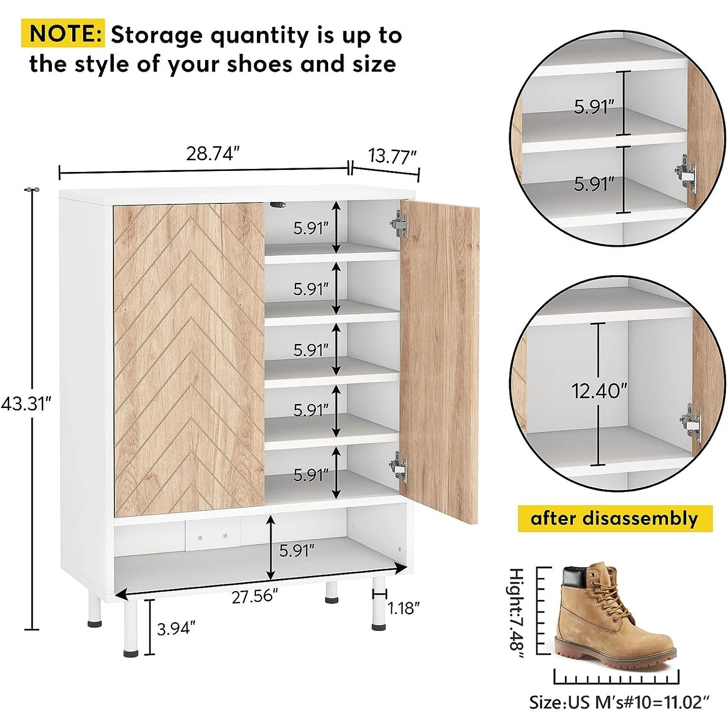 Rustic Modern Shoe Cabinet: Modernist or love an industrial twist? Try our shoe organizer! Rustic wood doors with beautiful herringbone design meet the clean white frame that makes a statement in your space while making your future guests with a 'wow!' This shoe storage brings sleek style and smart storage to your entryway, bedroom, or dressing area