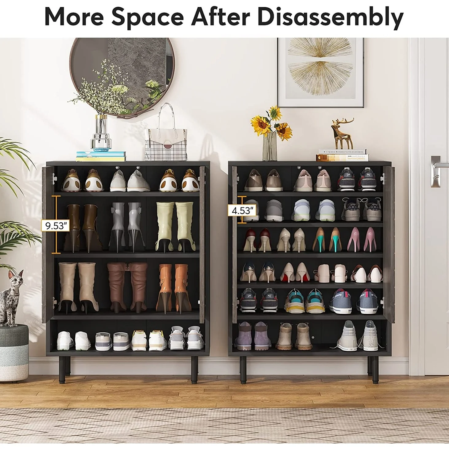 Easy to Assemble: Set up this shoe organizer cabinet without breaking a sweat! (about 30min) All of the necessary accessories are included in the package, with illustrated instructions. Can't find your all shoes or you are constantly tripping over your shoes? It's time to start keeping them organized with tribesigns shoe cabinet!