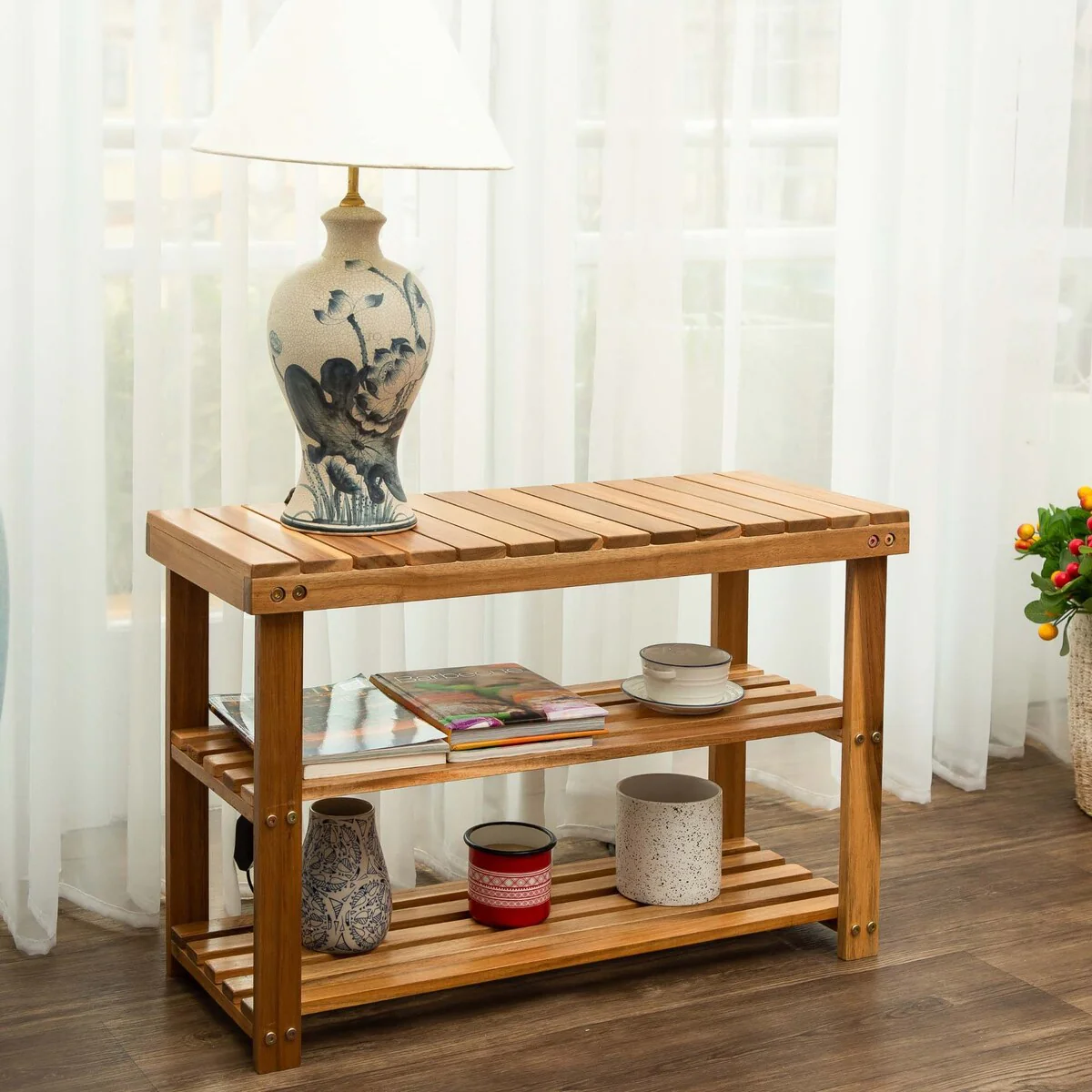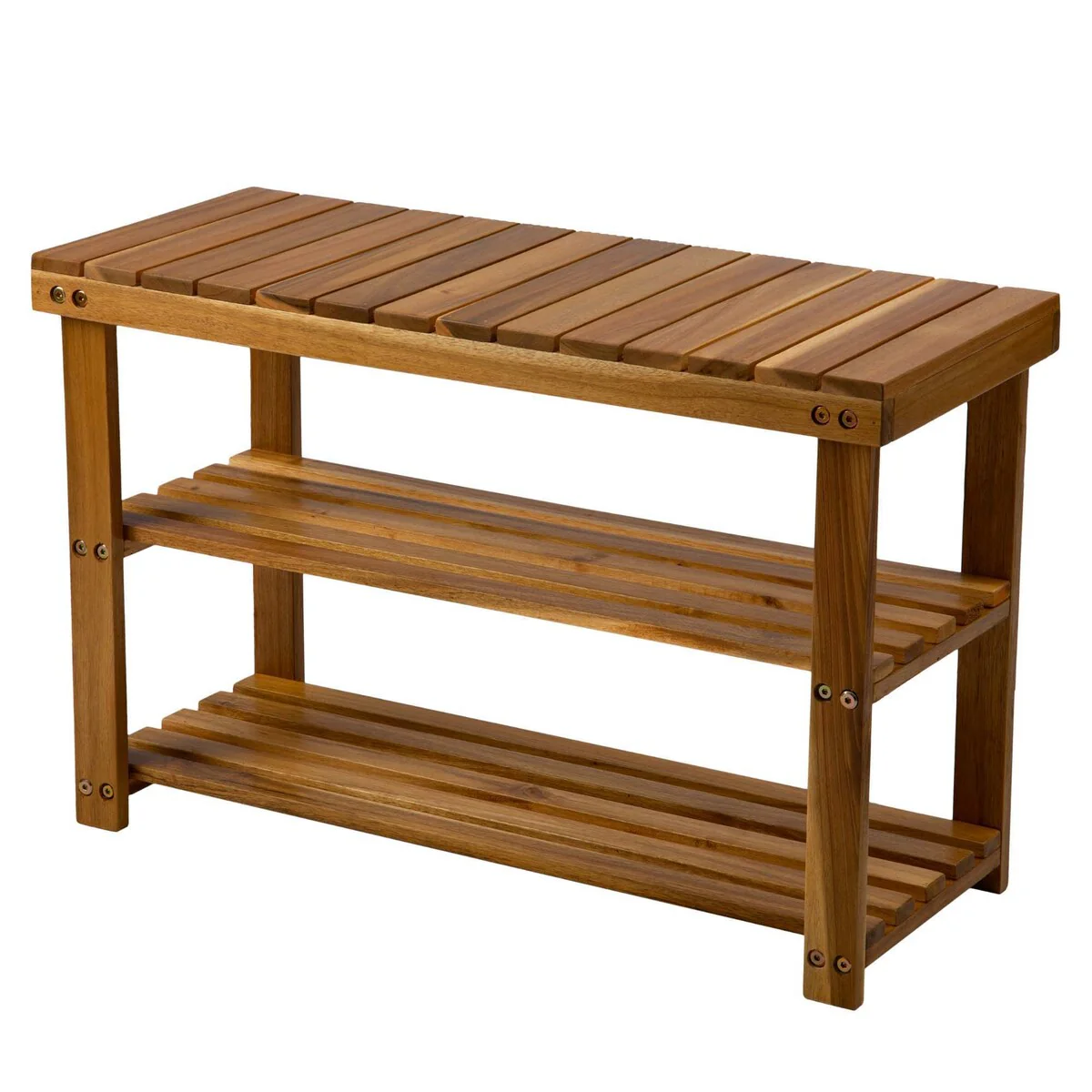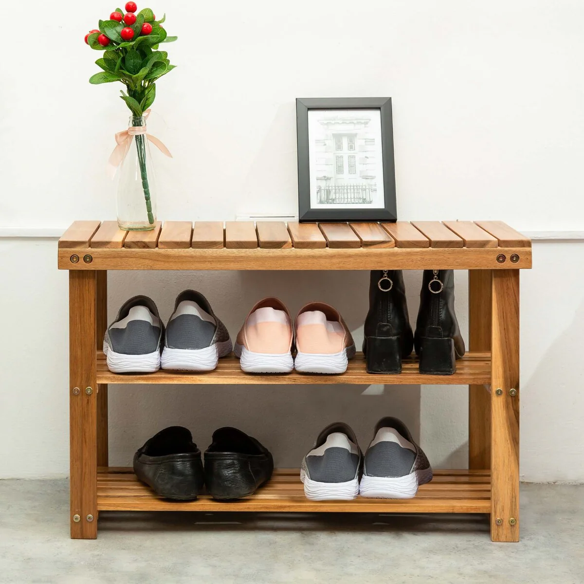 Shoe Rack is made of 100% Acacia Wood - It is natural brown in colour with an attractive natural grain, giving a warm, rich touch to any home. The surface of wood is finished by water-base coating and light glossy coating which allows rack can be used both indoor & outdoor. Multipurpose wooden shelf - fits every corner of your home. Store towels in the bathroom, bedside lamps, shelves for plants on the balcony, shelves for souvenirs in the living room, shelves for spices and pots in the kitchen, stores shoes in front doors.Strong Weight Capacity - Our product is ideal for those of you who love minimalism. Suitable size product saves your living space and lightweight item is easy to move. The weight capacity is upto 350 lbs which is suitable both for adults and kids. No sharp edges - All outer edges of the product are reduced sharpness by careful sanding. This product is safe for your hands and your kids.