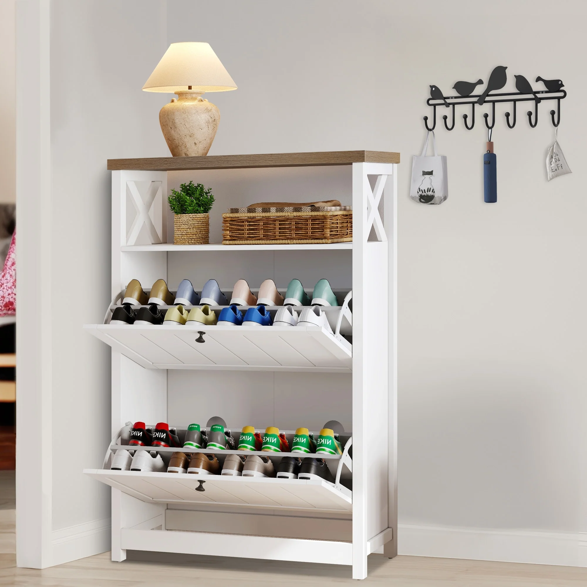 - Flip shoe drawers accommodate 12-16 pairs, protecting them from dust and messiness.