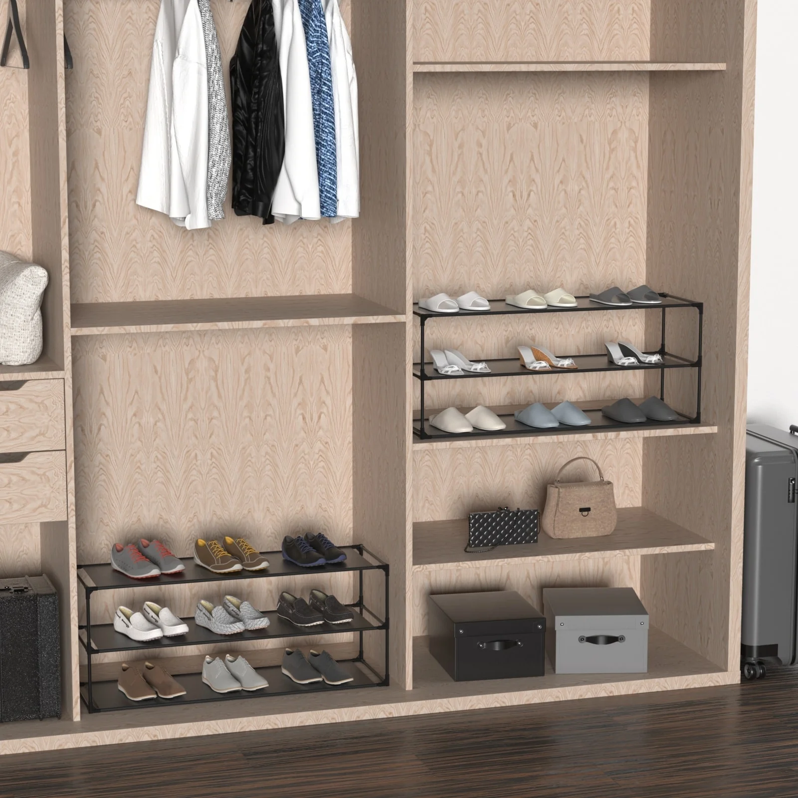 Design:Modern minimalist shoe rack specially designed for small-sized areas, featuring three stacked shelves for optimized usage in any part of your house.