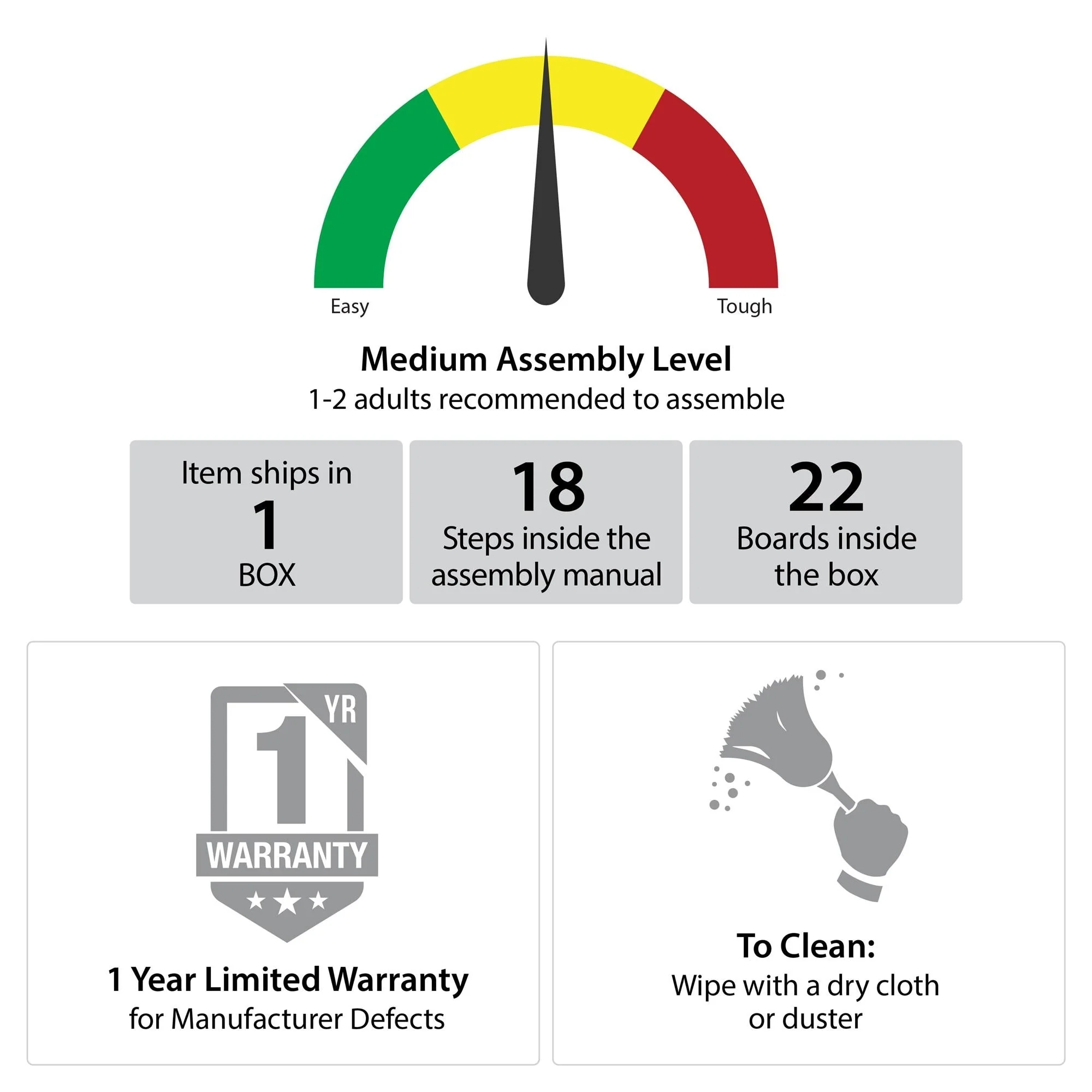 - 1-Year Limited Warranty Included