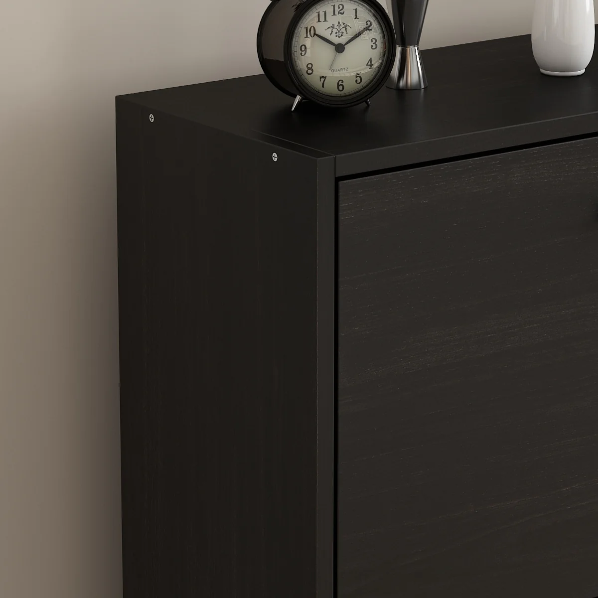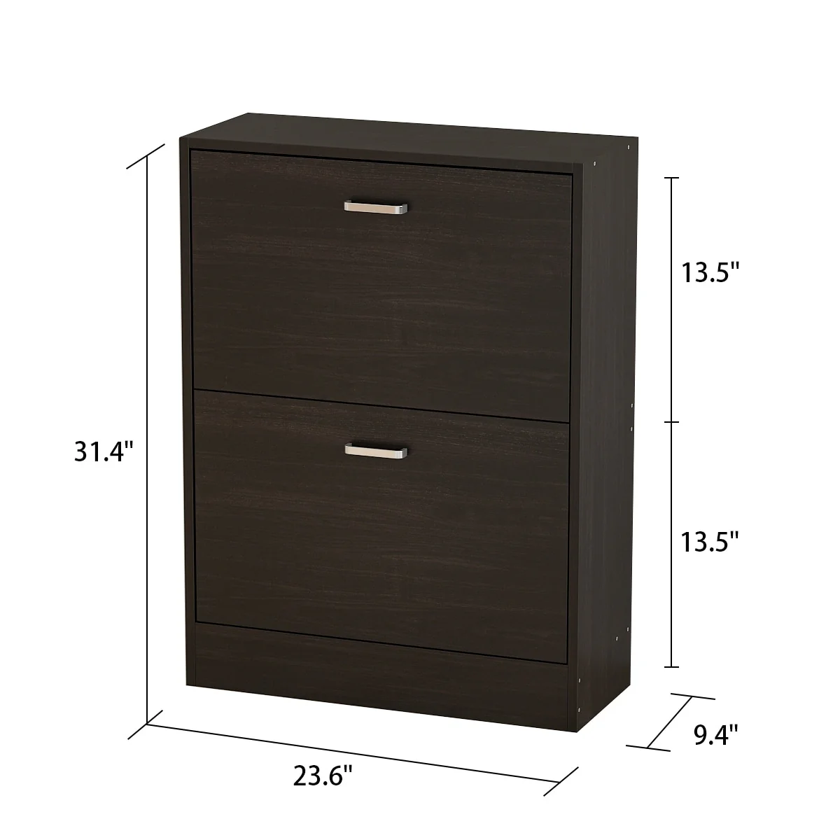 Keep your entryway organized and stylish with the Timechee Black 2-Drawer Shoe Cabinet. This cabinet has a 4-tier rack that can hold up to 12 pairs of shoes. The spacious pull-down drawers are divided into two inside components for easy organization. Made of solid MDF and painted with an environmentally-friendly material, this shoe cabinet is sturdy, durable, and easy to care for. Its classic fashionable design and clean color will add a touch of elegance to your home.