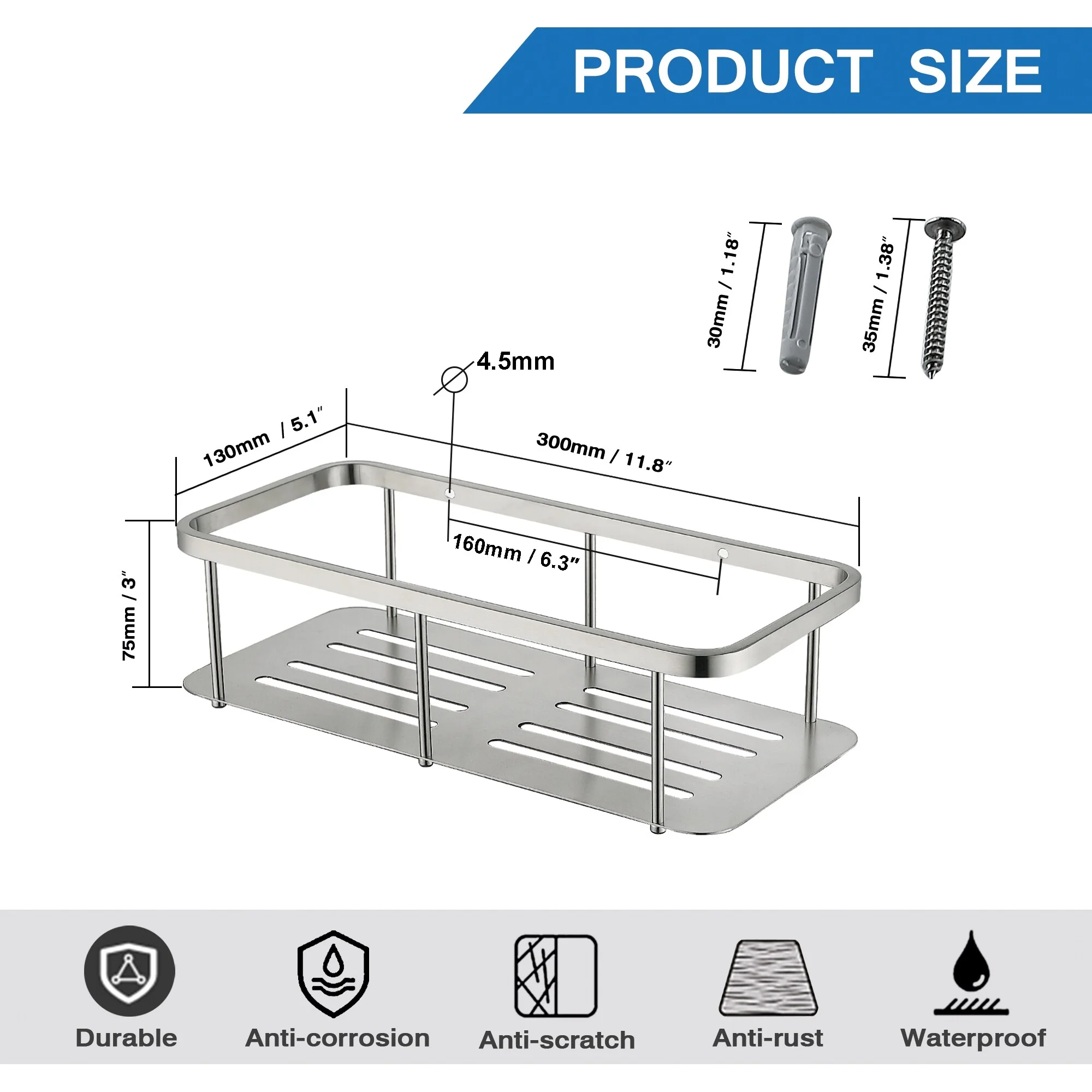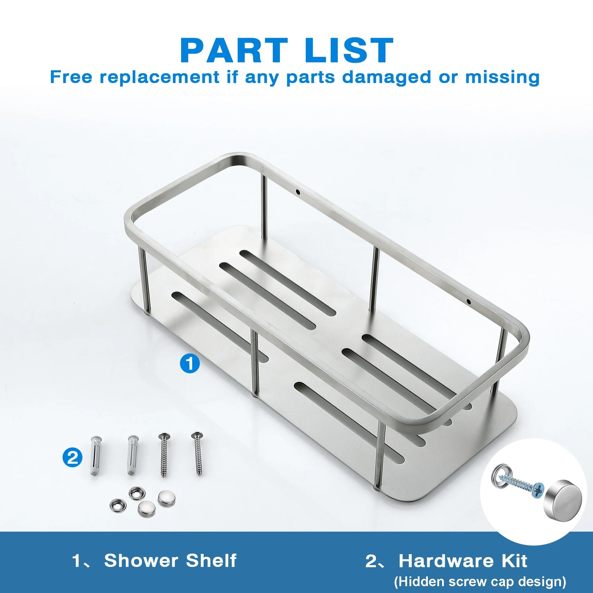 Shower Basket Rack Shelf is perfect for storing a variety of items in your bathroom. Featuring stainless steel construction, this shower shelf is guaranteed rustproof for life. The rustproof shower basket is quick-draining. Reasonable storage can hold most of the daily necessities of the bathroom so that the bathroom becomes well organized. This easy-to-install shower basket shelf hides all mounting hardware for a clean look. Come with install instruction, easy to install.