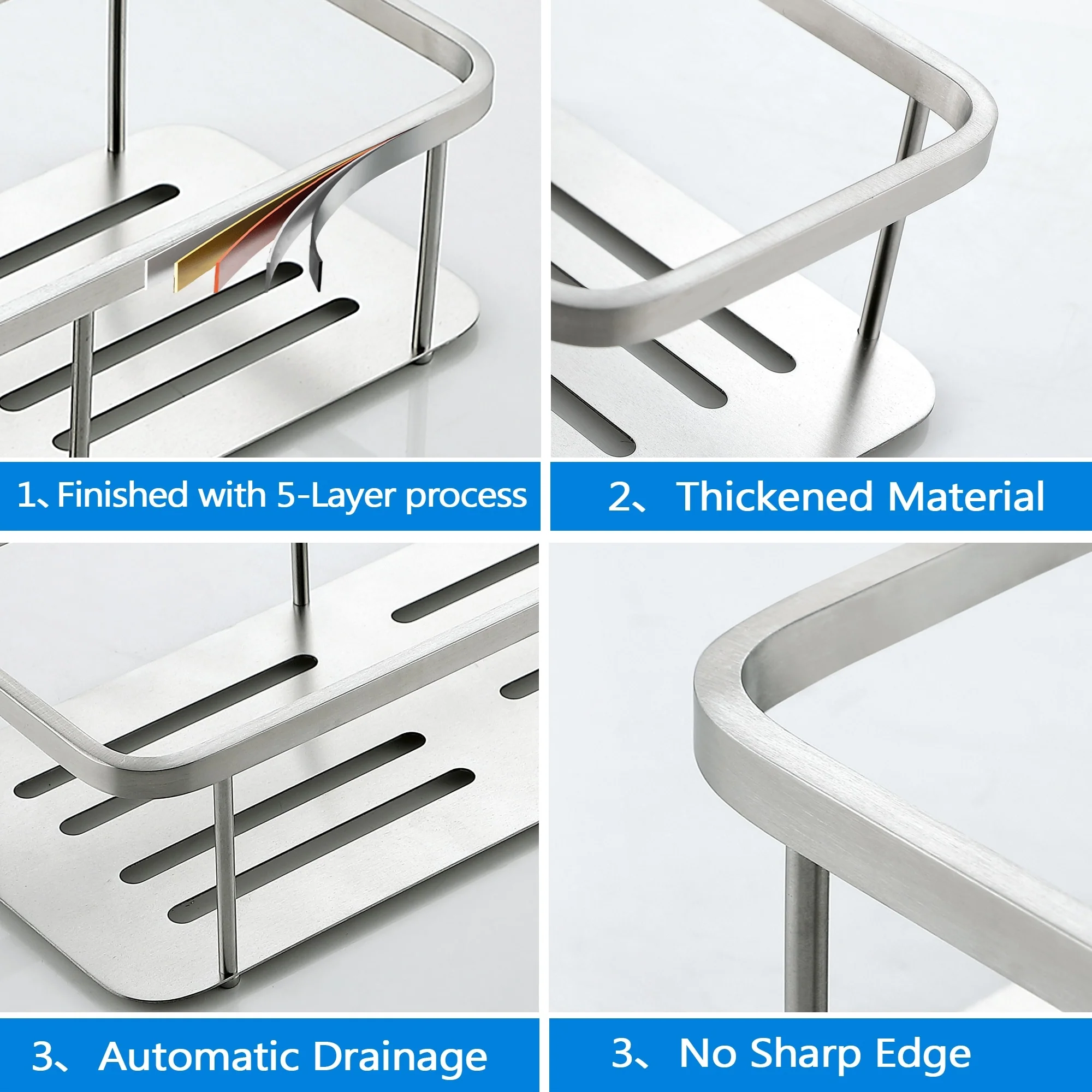 - Our shower storage rack were specifically designed to improve the water drain and therefore help to keep your bathroom dry and clean.