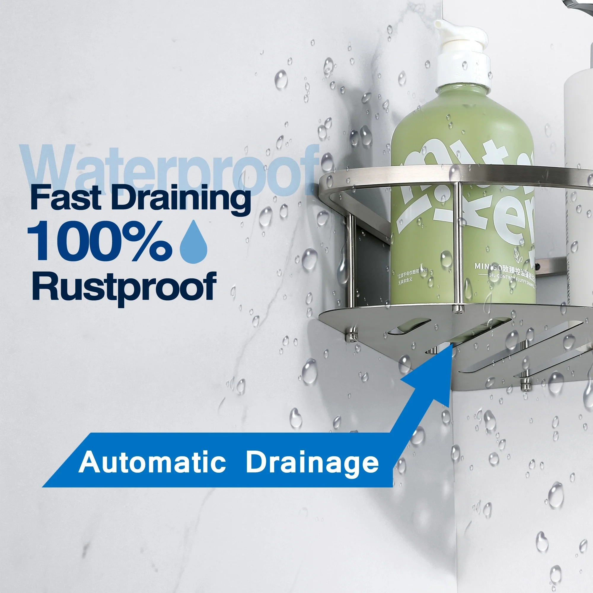 This L-Shaped of the corber shower caddy is designed for making full use of corner space. It's made of SUS304 stainless steel, rustproof and durable. Wall mounted for more stable. Great shower organizer can organize most toiletries in the bathroom and help to create a clean finished look in your shower. Extremely handy for shower organizing. Moreover, the whole-body ventilation design allows quick water drainage, keeping your shower items clean and dry.
