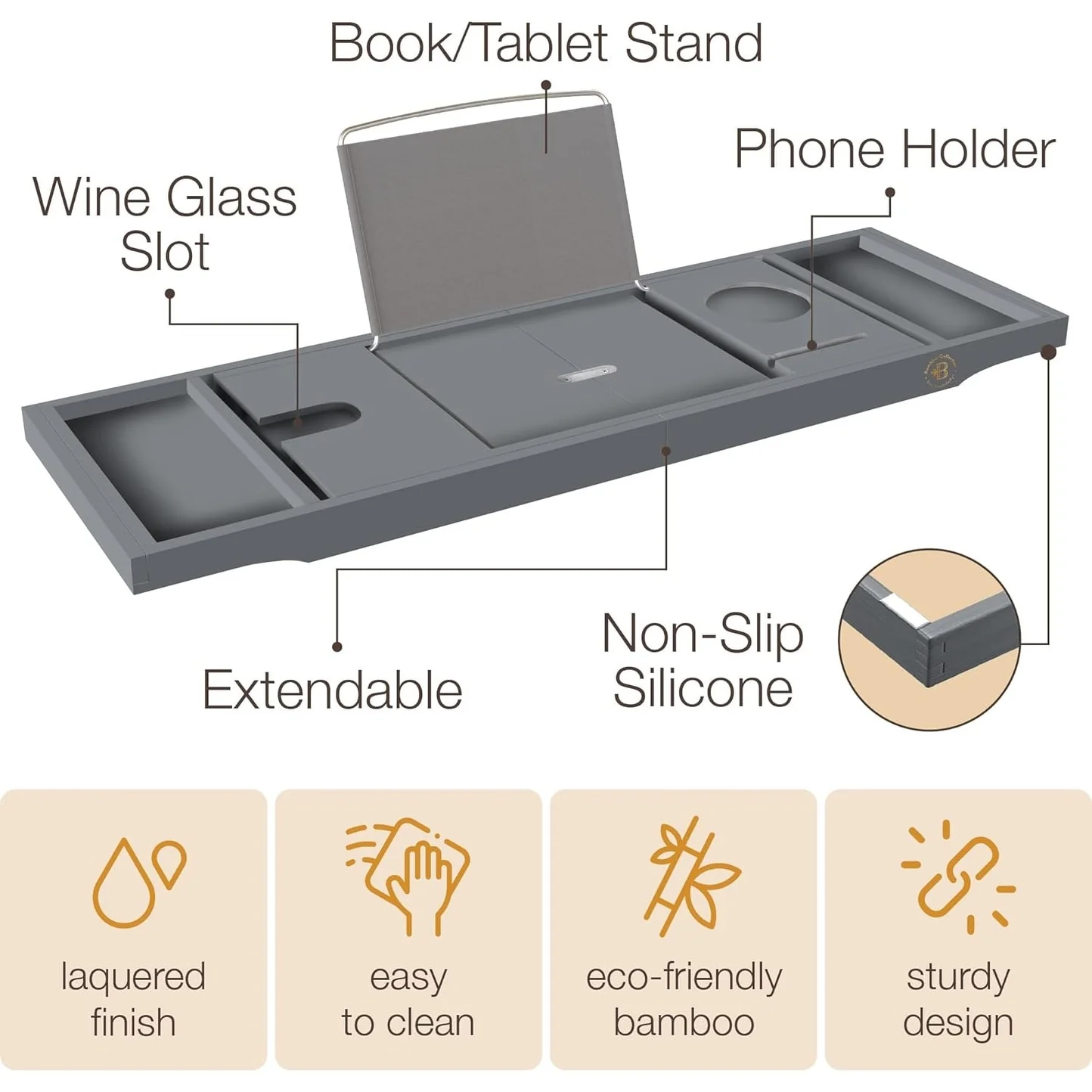 - SUSTAINABLE LUXURY: Experience the natural splendor of responsibly sourced bamboo. This eco-friendly bath tray elevates your bath to a luxurious escape while embracing sustainable practices. Enjoy the harmony of sophistication and earth-conscious living.