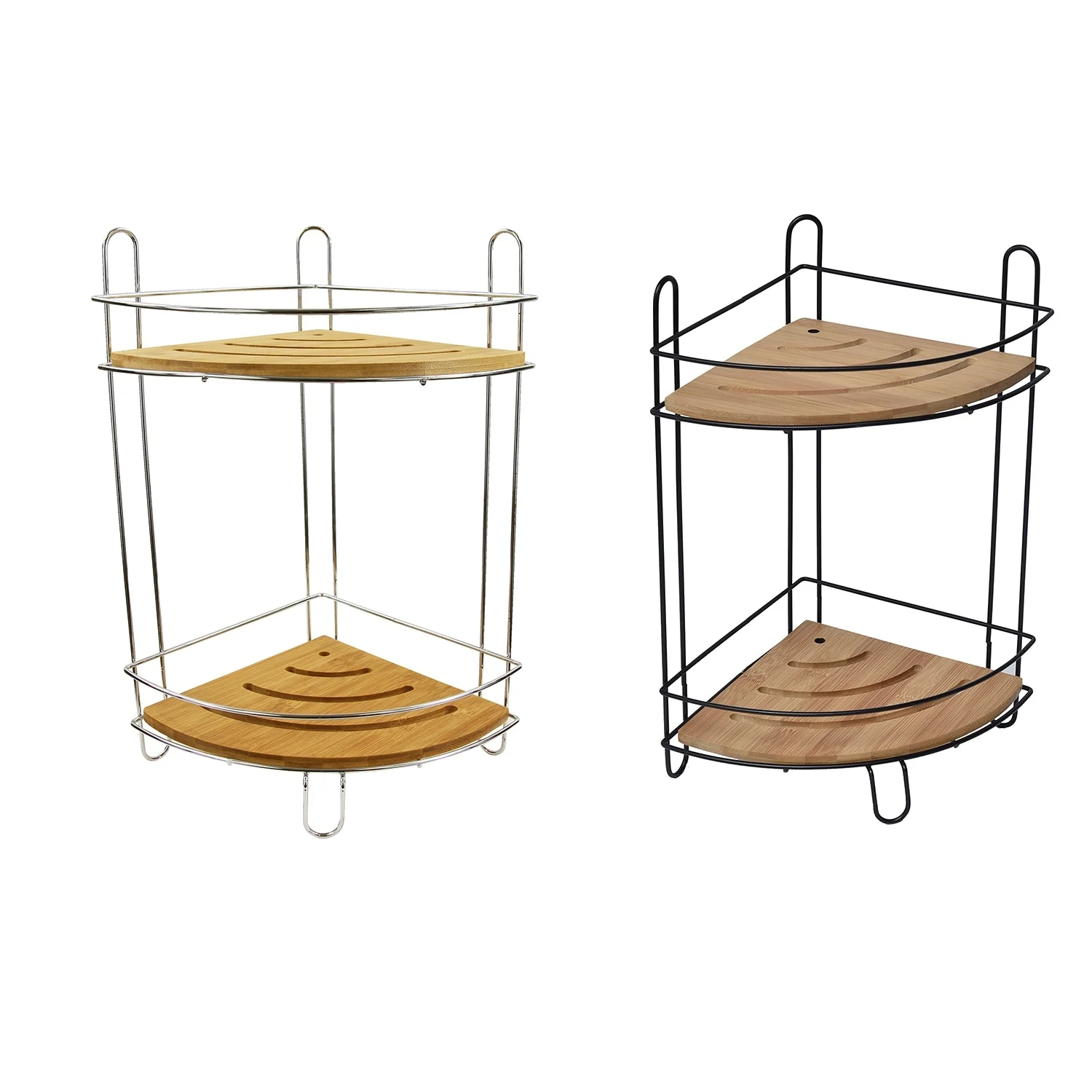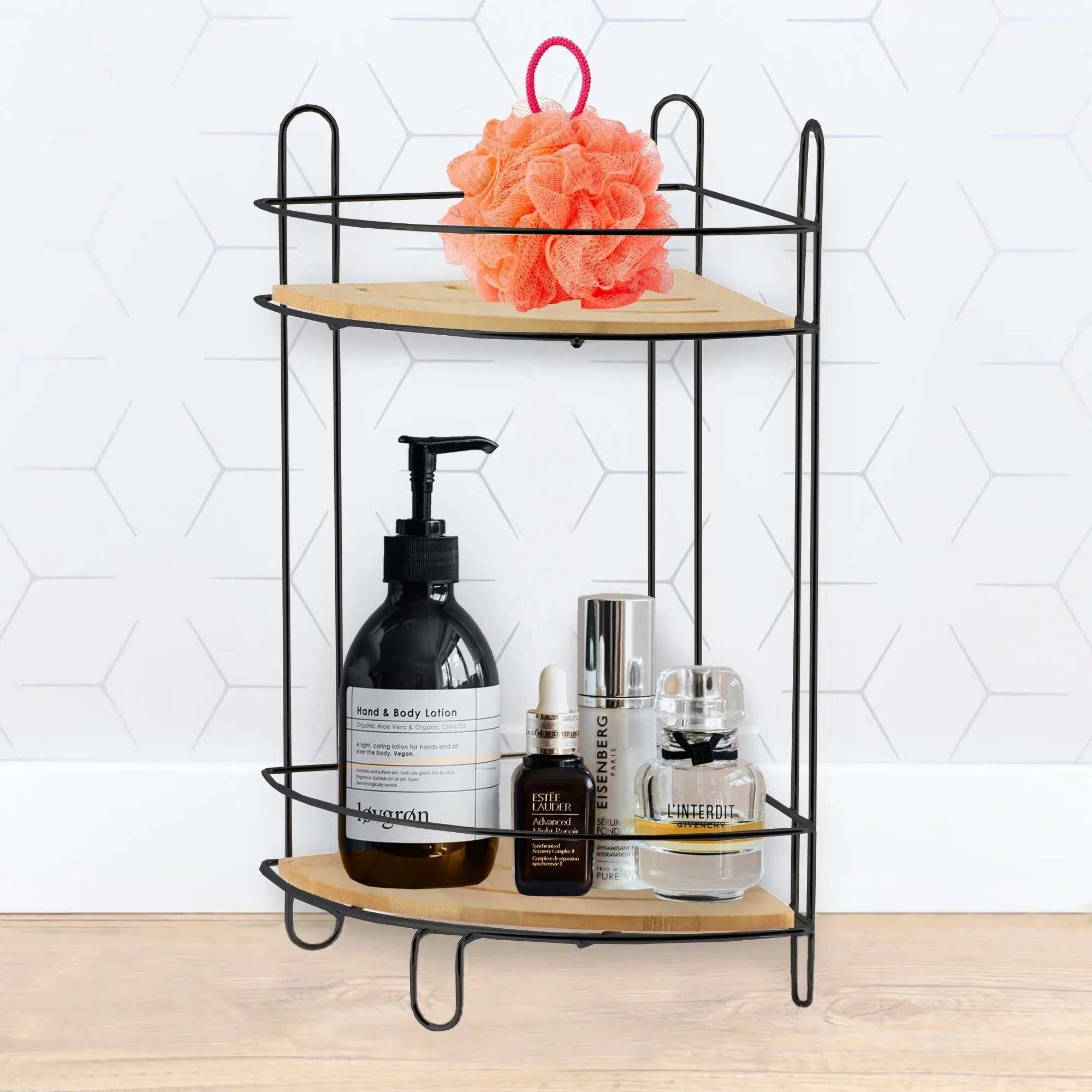 Optimize your bathroom storage space in seconds with this trendy and functional bamboo corner shelf. The combination of natural bamboo and black metal wire creates a refined and modern design that will fit any decor, bringing a subtle touch of Zen to your bathroom. With its three open shelves, this freestanding shelf provides enough space to hold all your bath items or toiletries, keeping your space tidy and organized. The refined finish of this corner organizer will match any decoration, and it's also perfect for narrow spaces, such as the countertop, corner of the bathtub, or in the shower.