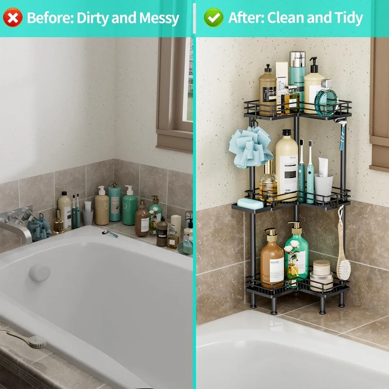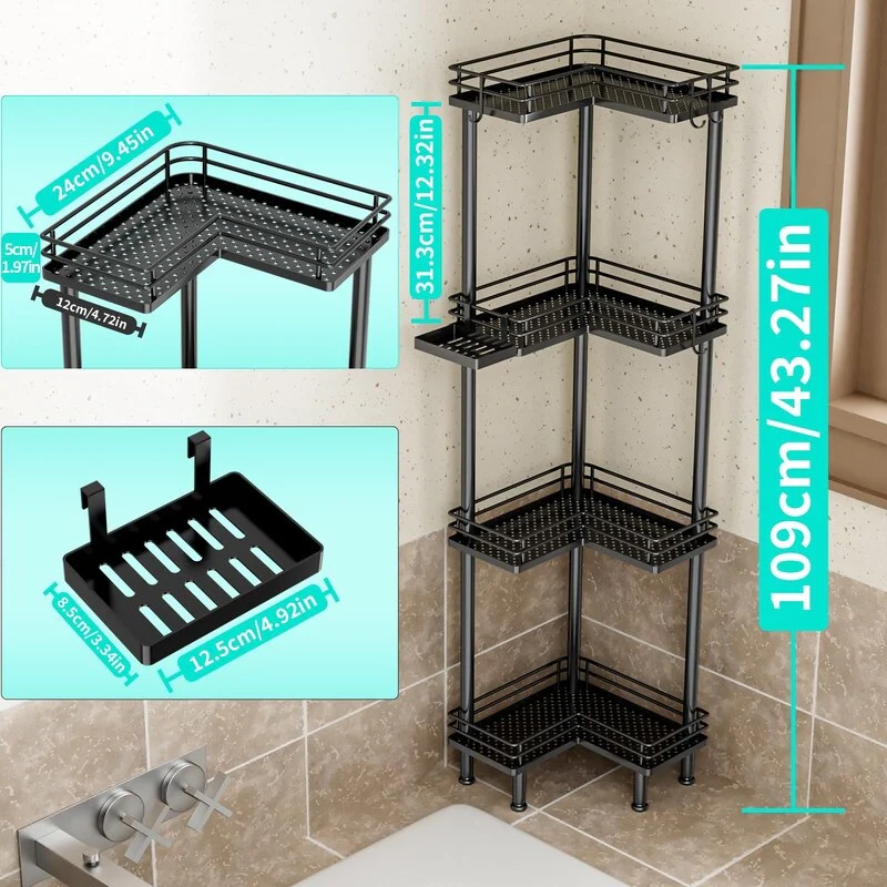 - 【Space-saving Shower Storage】Our shower organizer corner size is 9.45*1.97*4.72in, overall length is 30.94 in, won't take up too much space. It helps you organize space in your bathroom and have a more comfortable bathing experience. Warm Tips:If you need to use the corner shower shelves on the corner of the bathtub, please measure the size of the corner of your bathtub before purchasing.
