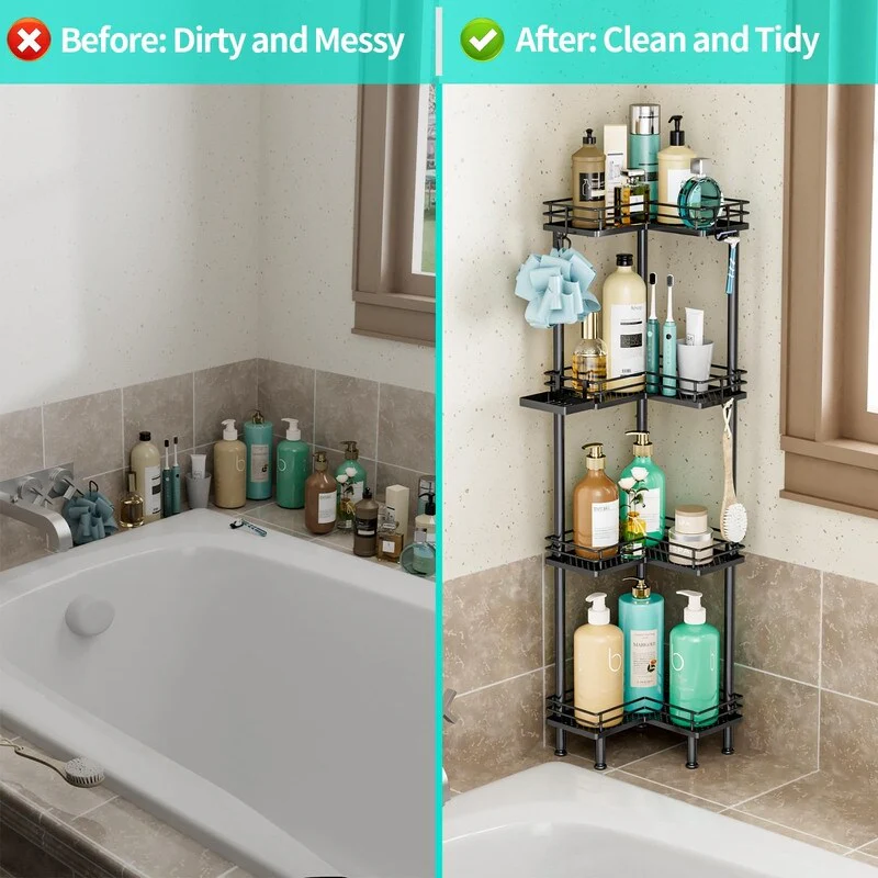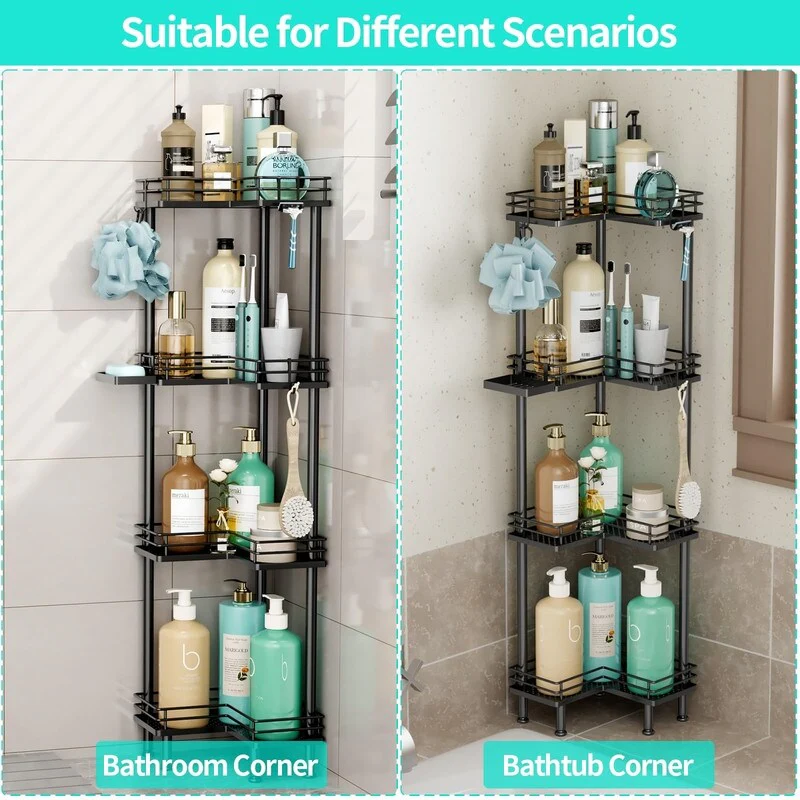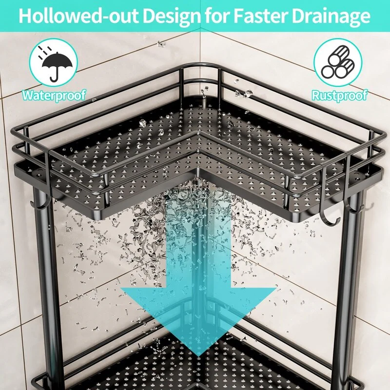 - 【Waterproof & Rustproof Shower Tower】Made of high quality stainless steel, the shower caddy corner is sturdy, durable as well as waterproof and rustproof. The drainage holes of the shower shelf are designed to drain quickly to keep it dry.