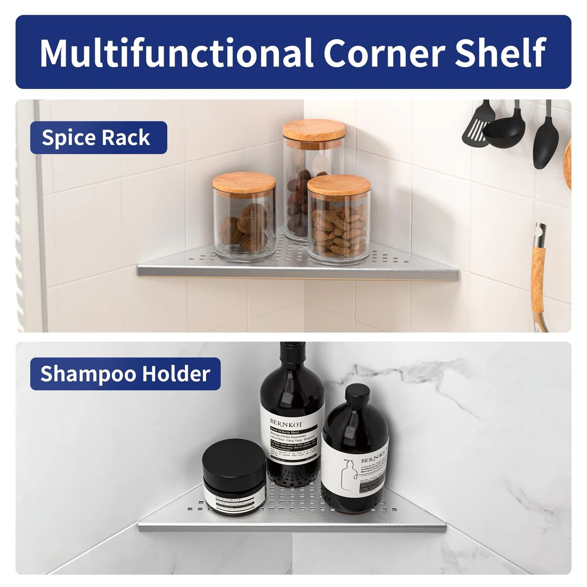【Space Saving & Modern Style】Our corner floating shelves are designed for organizing your bathroom and kitchen. They are ideal for holding your shampoo, body wash, cream, razor, seasonings and more. Please note that shelves are ONLY for 90°corners, it is a great choice for both narrow and broad bathroom spaces.