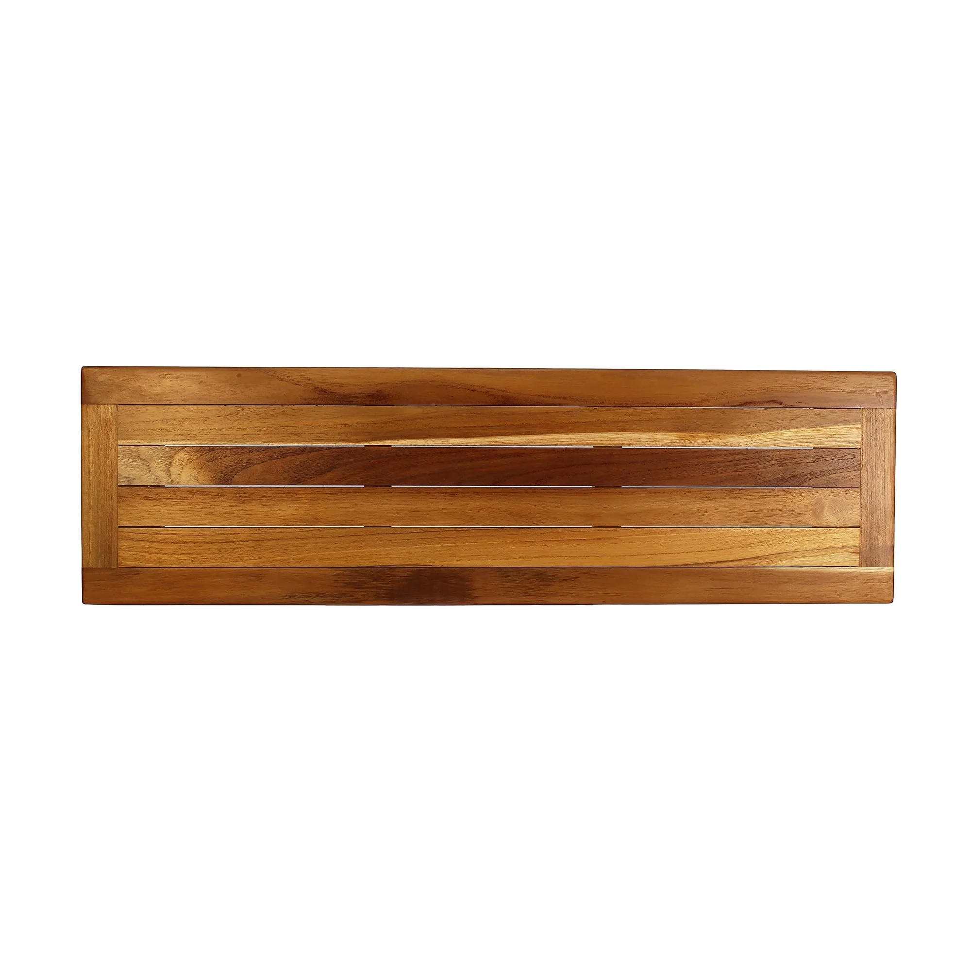 Improve your bathing experience with the Eleganto® 34' Teak Bath Tray and Seat in EarthyTeak® Finish. Constructed from solid plantation teak wood sourced from Indonesia, this bath accessory seamlessly combines form and function. The naturally water-resistant teak wood ensures durability and longevity, while the slatted design allows effective water drainage.