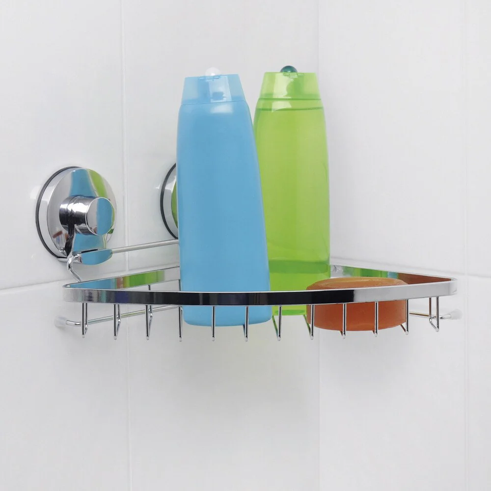 Made of beautiful polished stainless steel, this storage rack installs easily in the corner of your shower. With a wide triangular shelf and included hooks for hanging washcloths or bath sponges, this exceptional basket is a superbly convenient addition to your bathroom routine.