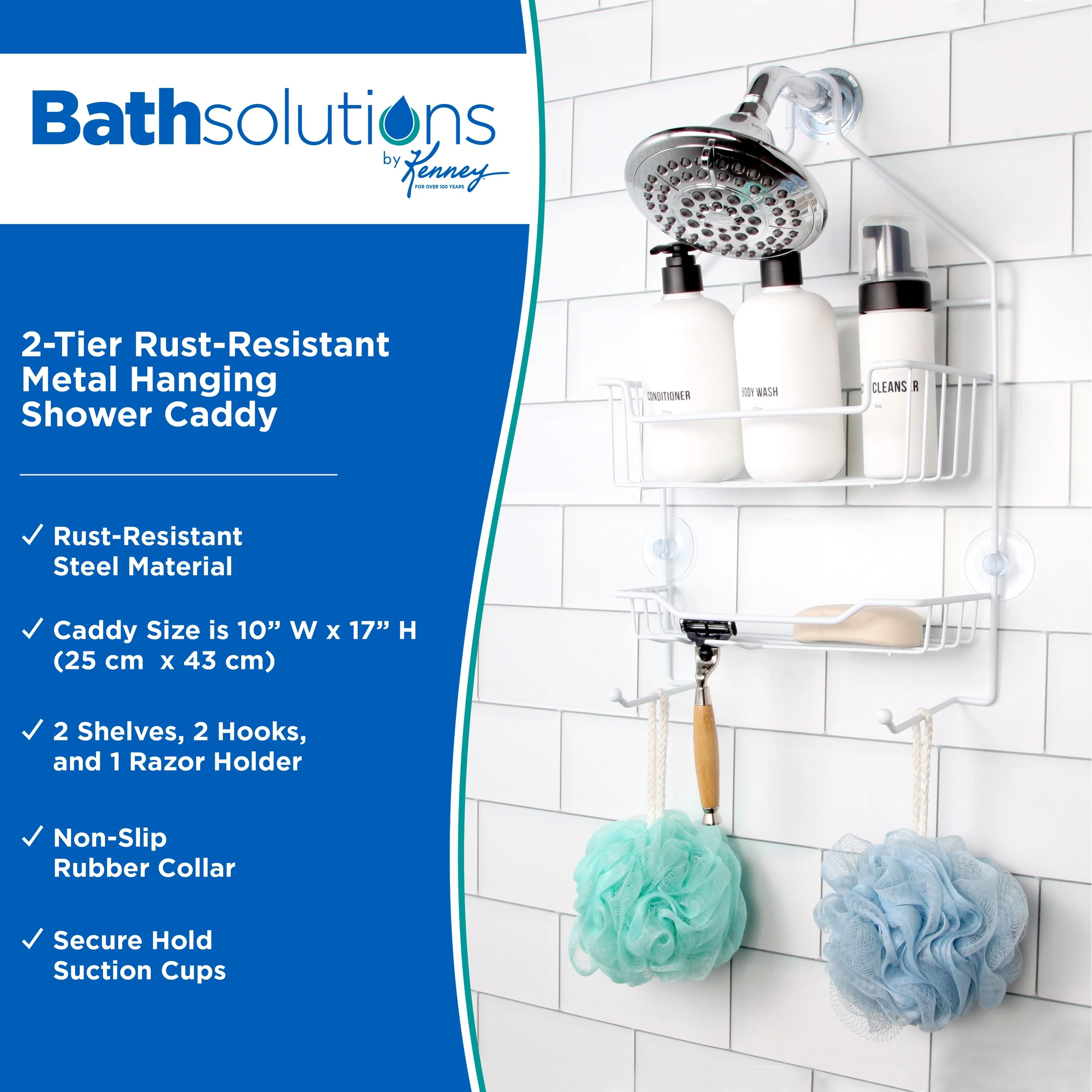 - The Kenney Rust-Resistant 2-Tier Small Hanging Shower Caddy helps keep your bath and shower products organized with two shelves, one razor holder, and two hooks