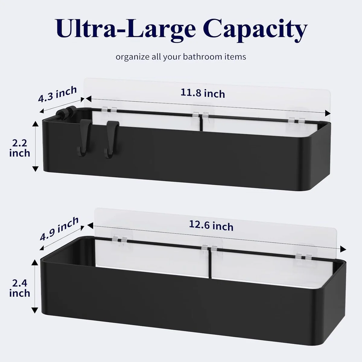 LARGE CAPACITY: The two Kitsure large shower caddies measure 12.6' and 11.8' respectively. They are large enough to store all your bathroom items, such as body wash, shampoo, conditioner, and facial cleanser. The heightened guard rail can effectively prevent your items from accidentally dropping down.