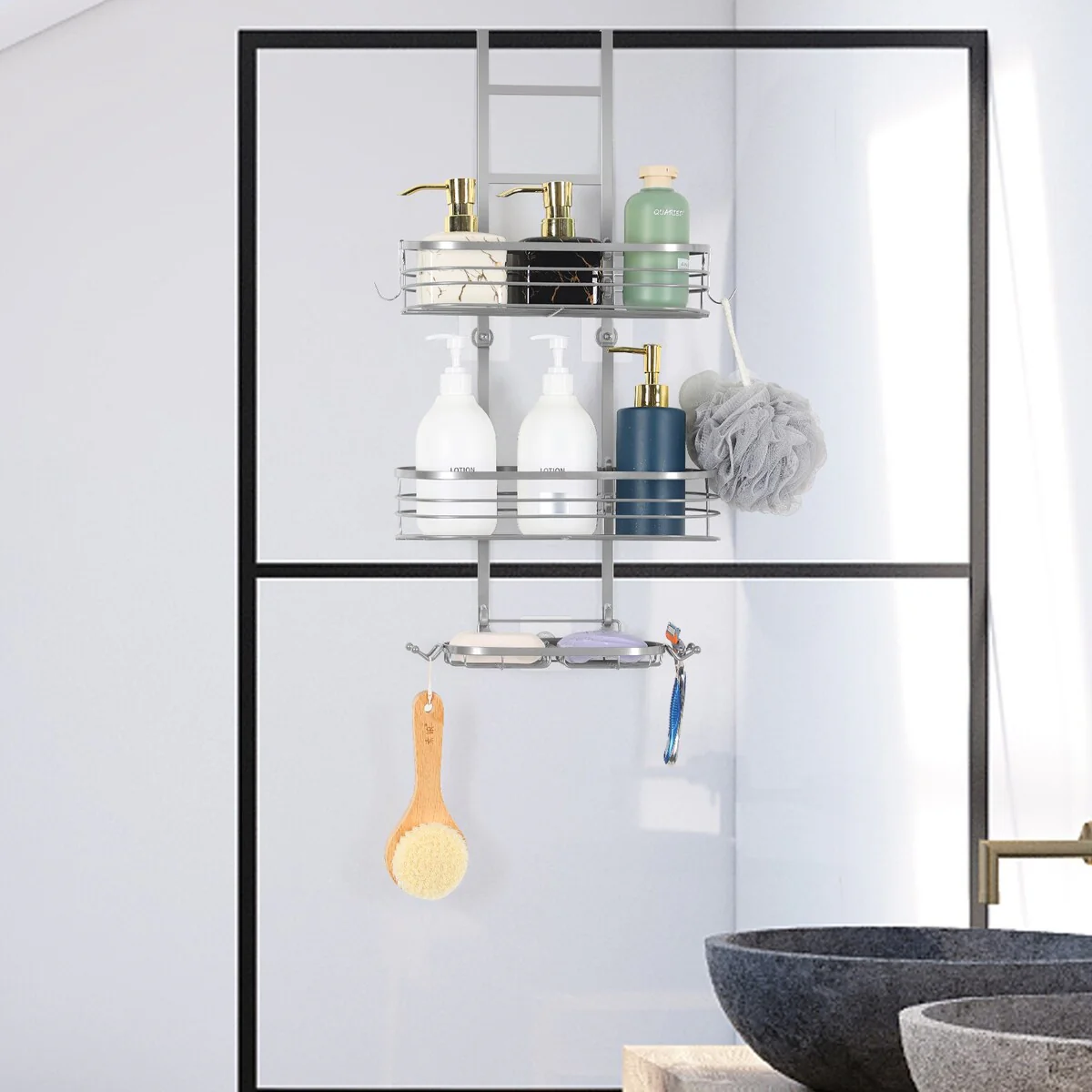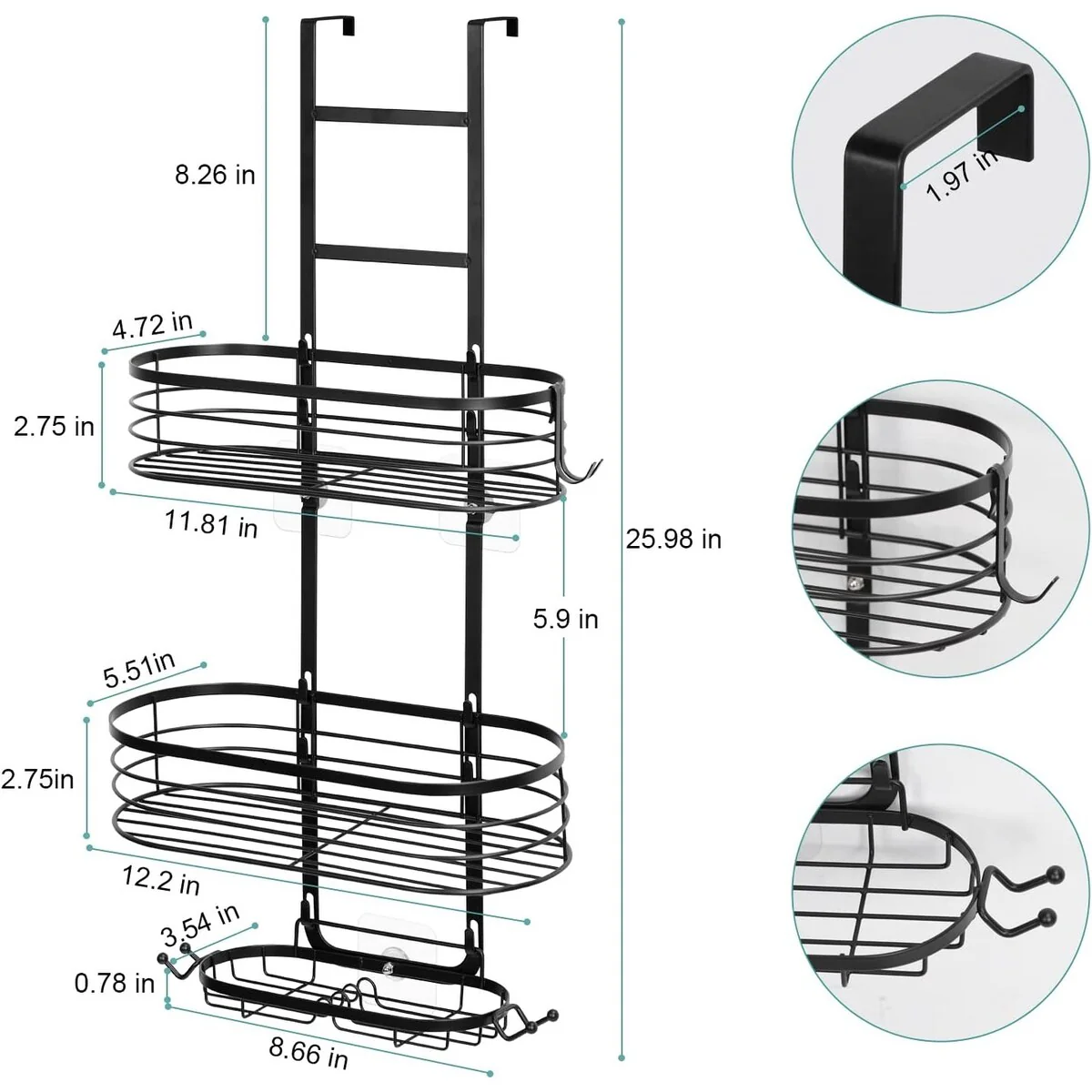- 【Sturdy, Rust-proof and Easy to Assemble】: Our hanging shower caddy fits all 1.96 inch doors without hardware or drilling; the entire assembly and setup process takes less than 5 minutes, and the shelves have a special finish, not only rust-proof, And it's sturdy and durable.