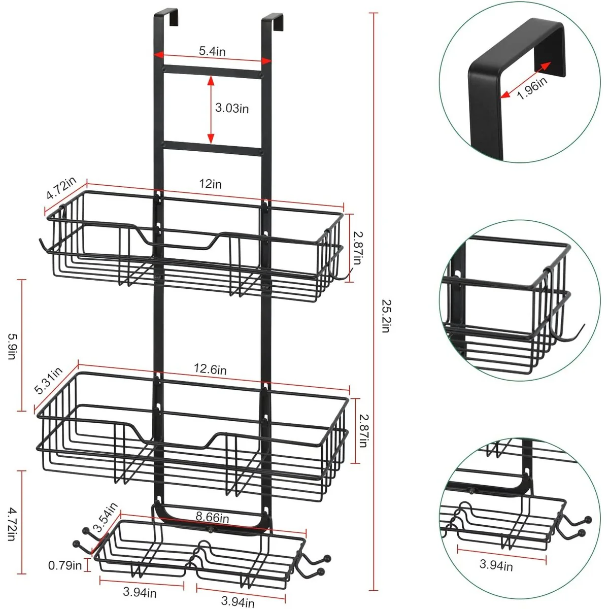 - 【Size & Unique Design】Classic size:5.3'D x 12.6'W x 25.2'H. You can hang it on any door that does not exceed 1.96 inches thick in the bathroom, room, or kitchen. With a load capacity of up to 40 pounds, it can perfectly solve your storage needs.