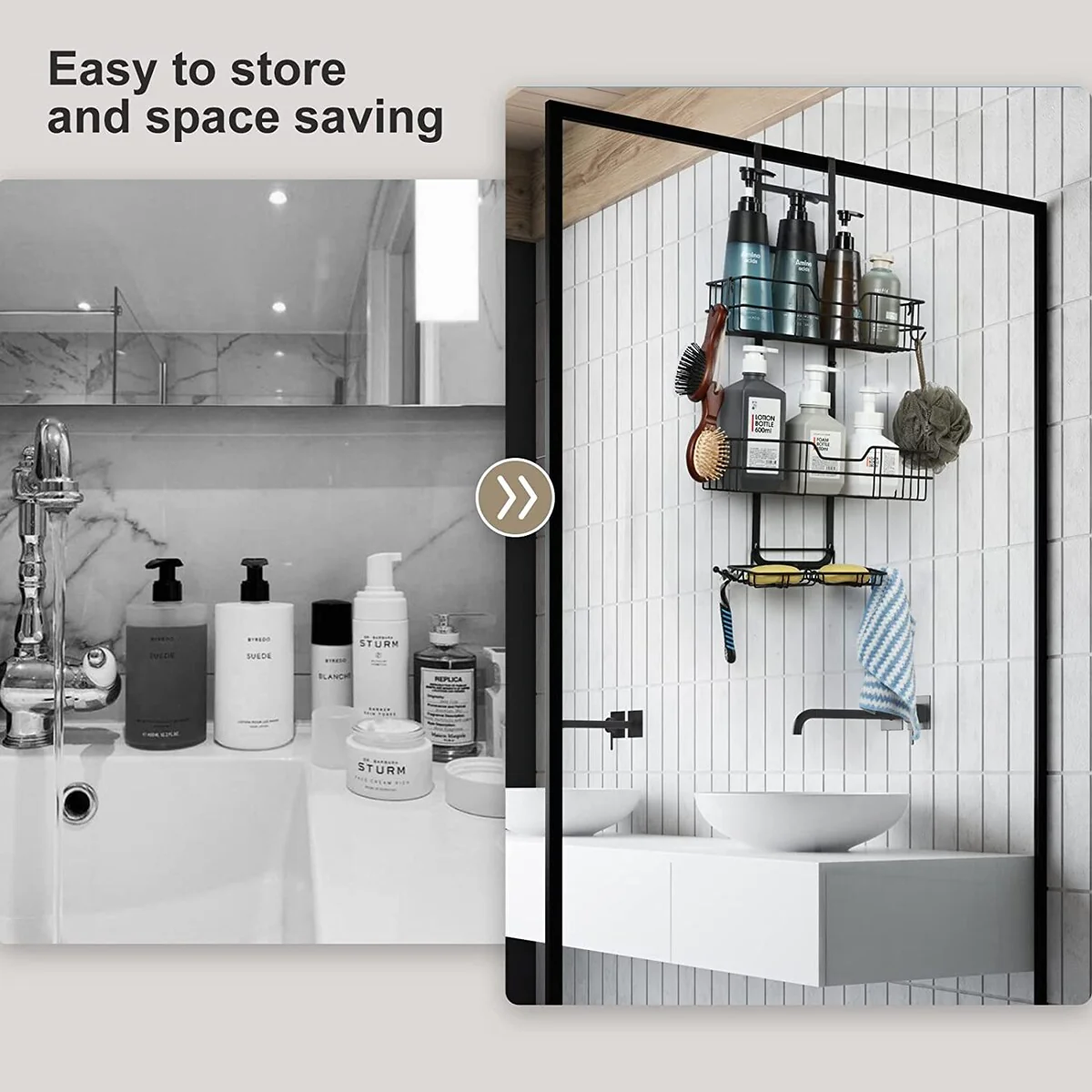- 【With hooks & Large Capacity Shelves】This shower caddy has three-layer. Two layers can be used to place various shower gels, shampoos, and the lower layer has a soap holder specially designed for placing soap. There are also hooks designed for storing razors, bath balls, and towels.