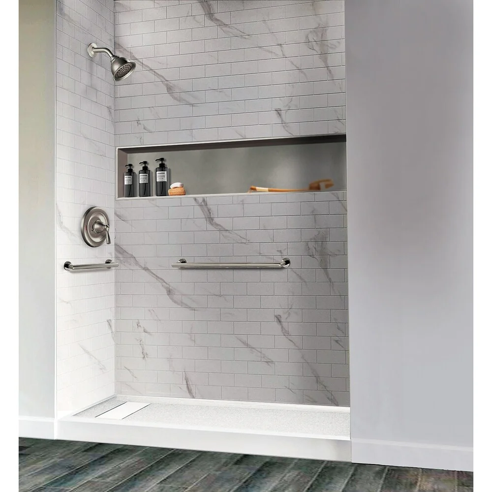 - Installs quickly and easily on tile or solid surface walls