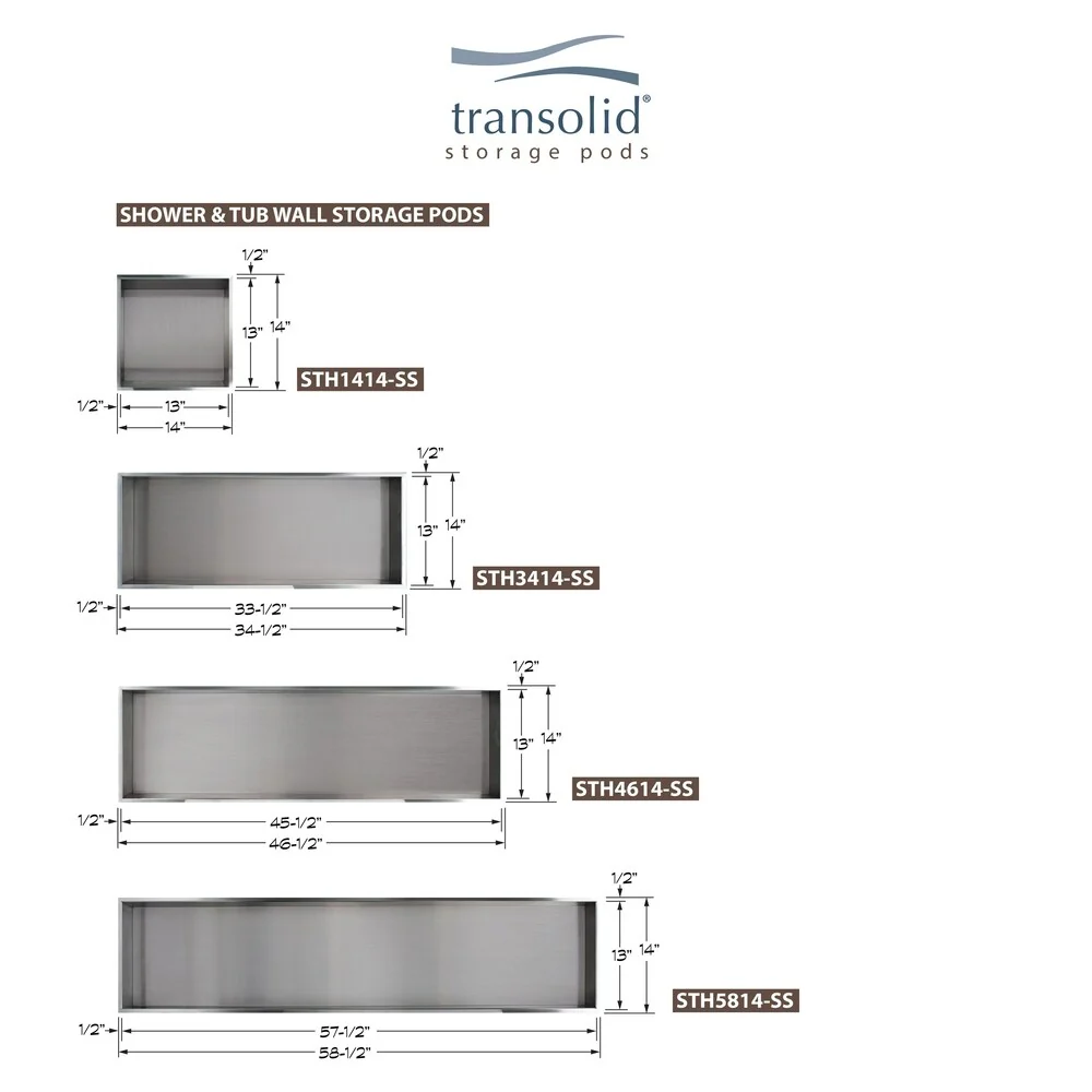 - Transolid storage pods allow you to conveniently store shampoo, soap, and other items in your shower