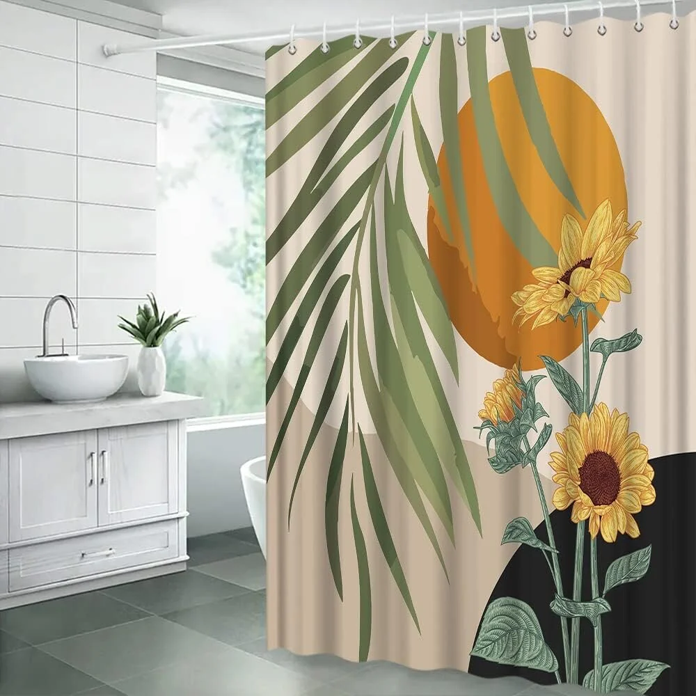 Introducing our Abstract Tropical Shower Curtain, adorned with Boho Leaves, Sunflower, Sun, and Geometric designs, adding a burst of vibrant energy to your bathroom decor! Crafted from high-quality fabric, this curtain captures the essence of tropical beauty and Bohemian charm, creating a captivating focal point in your bath space. Elevate your bath experience with our Abstract Tropical Shower Curtain, where eclectic patterns and vibrant colors meet for a refreshing and inviting ambiance.