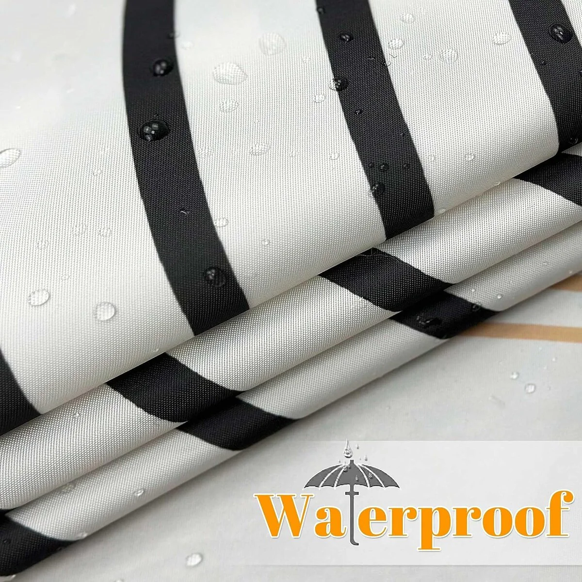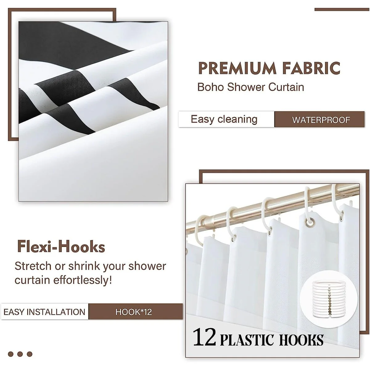 Fabric:This shower curtain is made of high-quality polyester fabric, 100% waterproof, soft and durable, totally odorless, non fading and wrinkle free. In terms of fabric, we have upgraded the waterproof grade. Compared with most products, its waterproof effect will be better and more durable. Design: Water-repellent fabric is treated to promote water bead formation and prevent curtain soaking and bathroom floor messes.We added a row of black tassels at the middle and bottom To ensure that the appearance of the shower curtain is more unique, modern. More suitable for your bathroom. Unique:72 x 72 inches, fit any standard size shower tub.Black stripes,cream background and boho black tassels etc., such Boho elements better explained that our product design is unique and popula! Package: 1 PCS shower curtain coming with 12 high-grade exquisite metal metal grommet holes, perfect integration with the design of the shower curtain.Also with 12 hooks. Easy Care: Can be machine or hand washed to keep it clean, A quick rinse and clean up with water or a damp cloth, do not bleach or tumble dry.