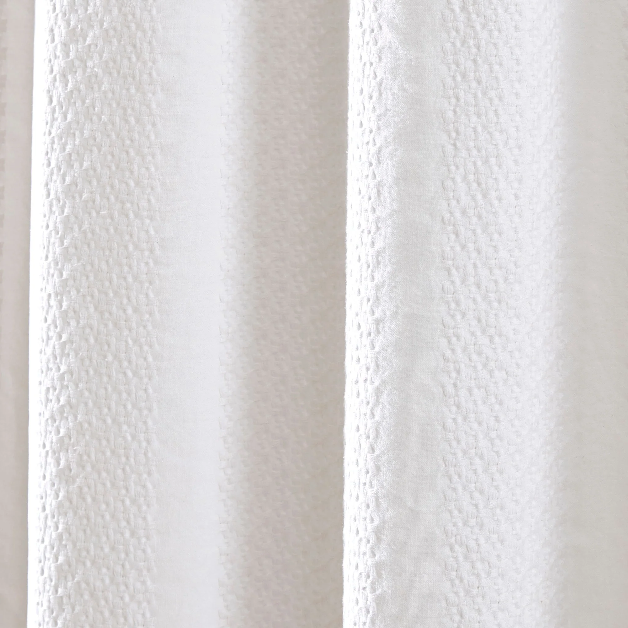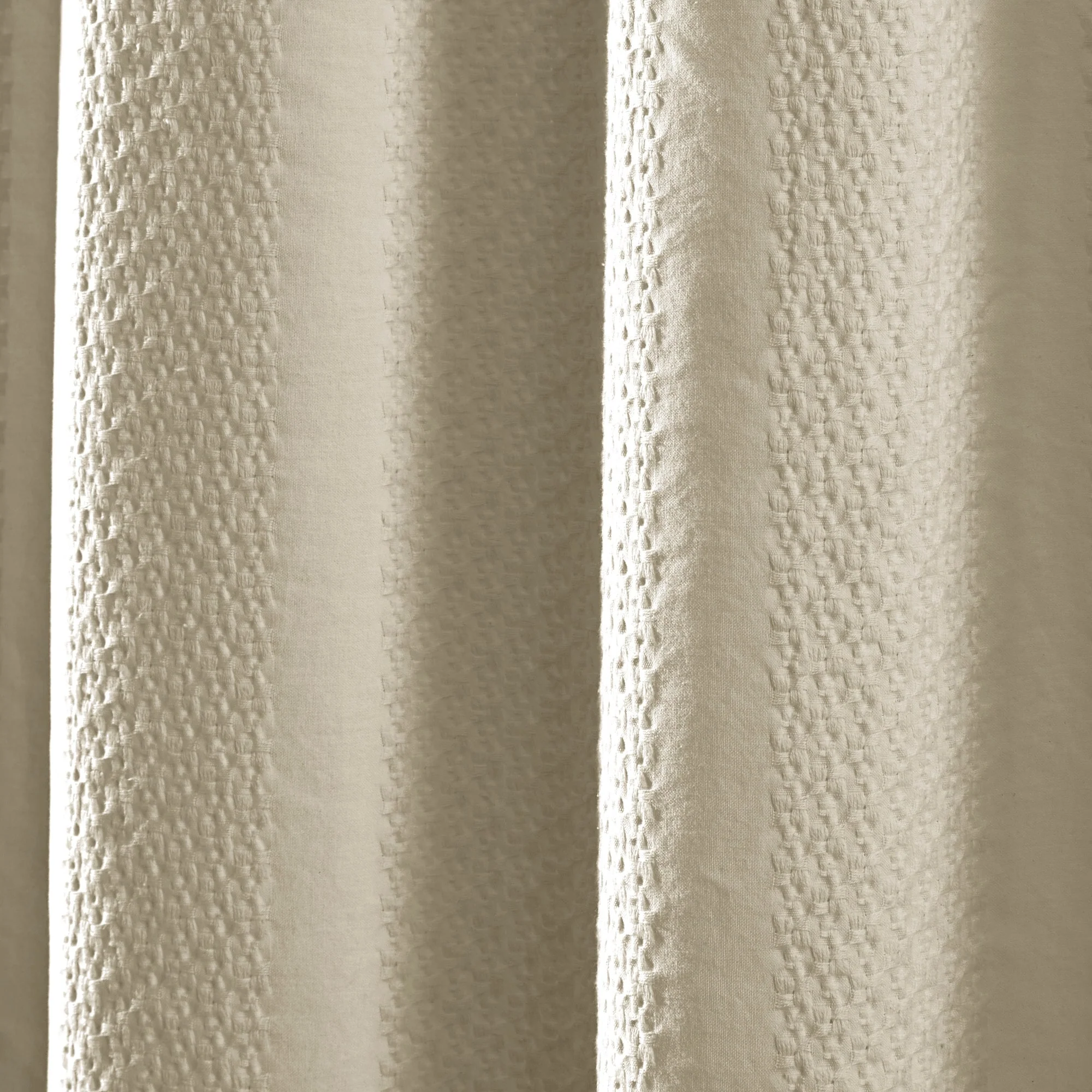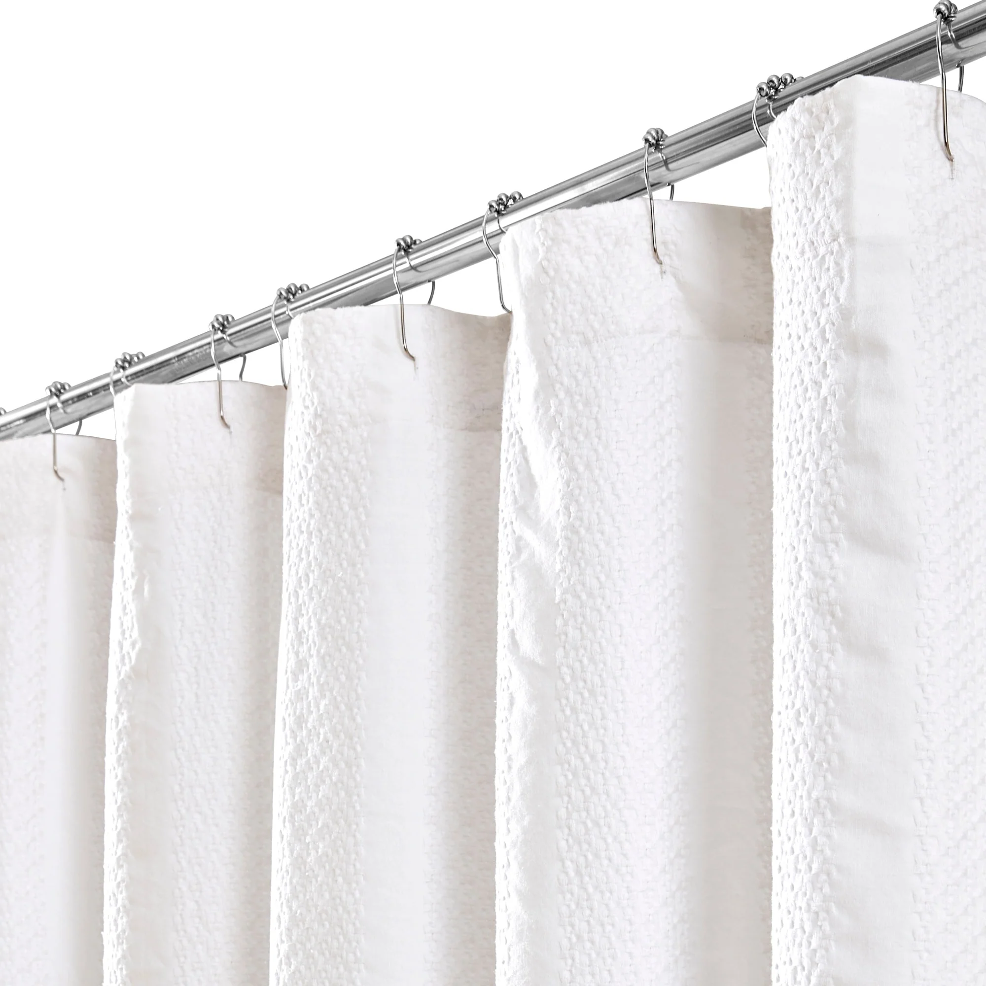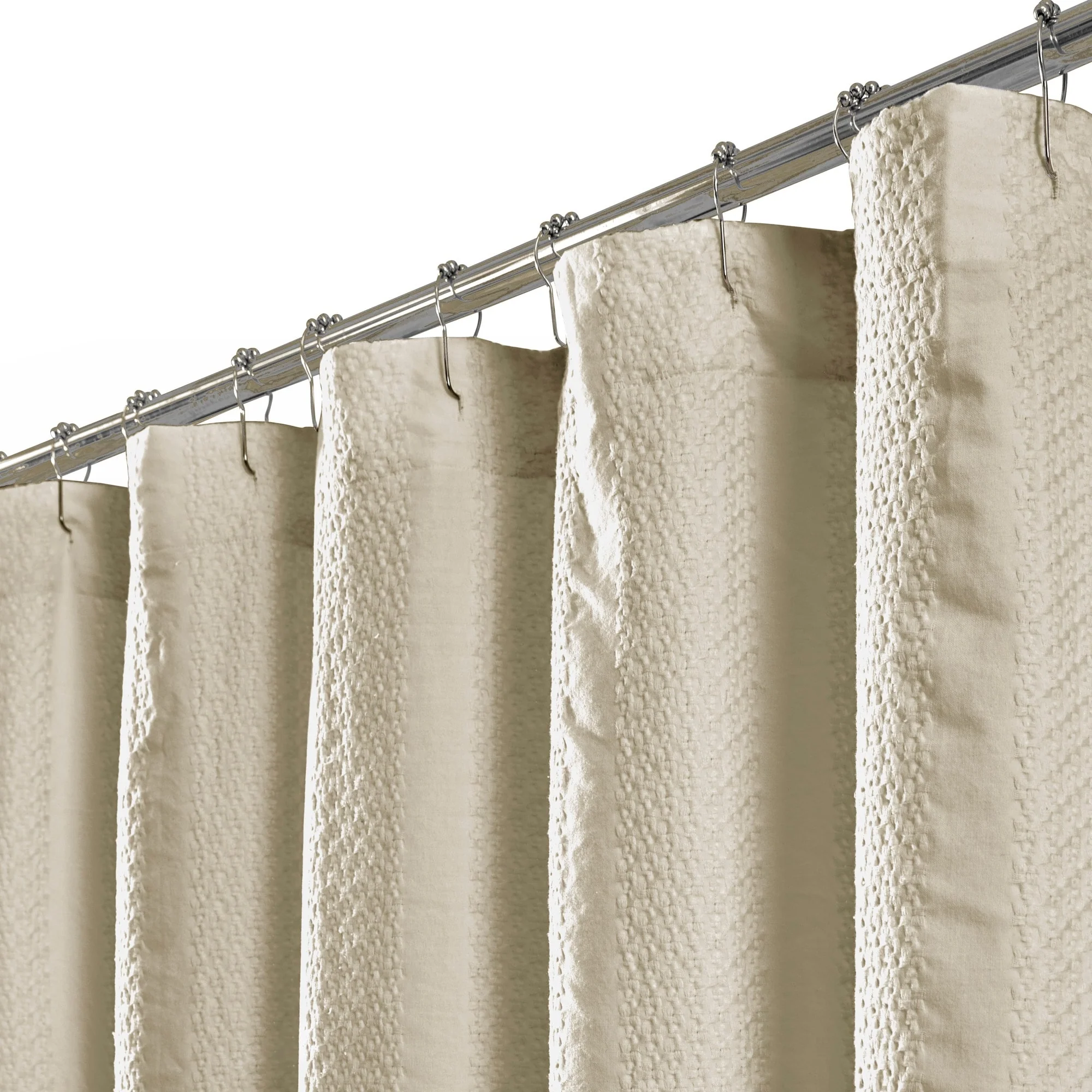 Elevate the ambiance of your bathroom with the simple and casual Billie shower curtain from Brielle Home. Made of 100% cotton, this fabric shower curtain boasts a solid color and a jacquard woven stripe. Garment washed for extra softness, it offers both style and comfort. The Billie shower curtain is available in two sizes and is OEKO-TEX Standard 100 certified. Shower curtain rings sold separately.