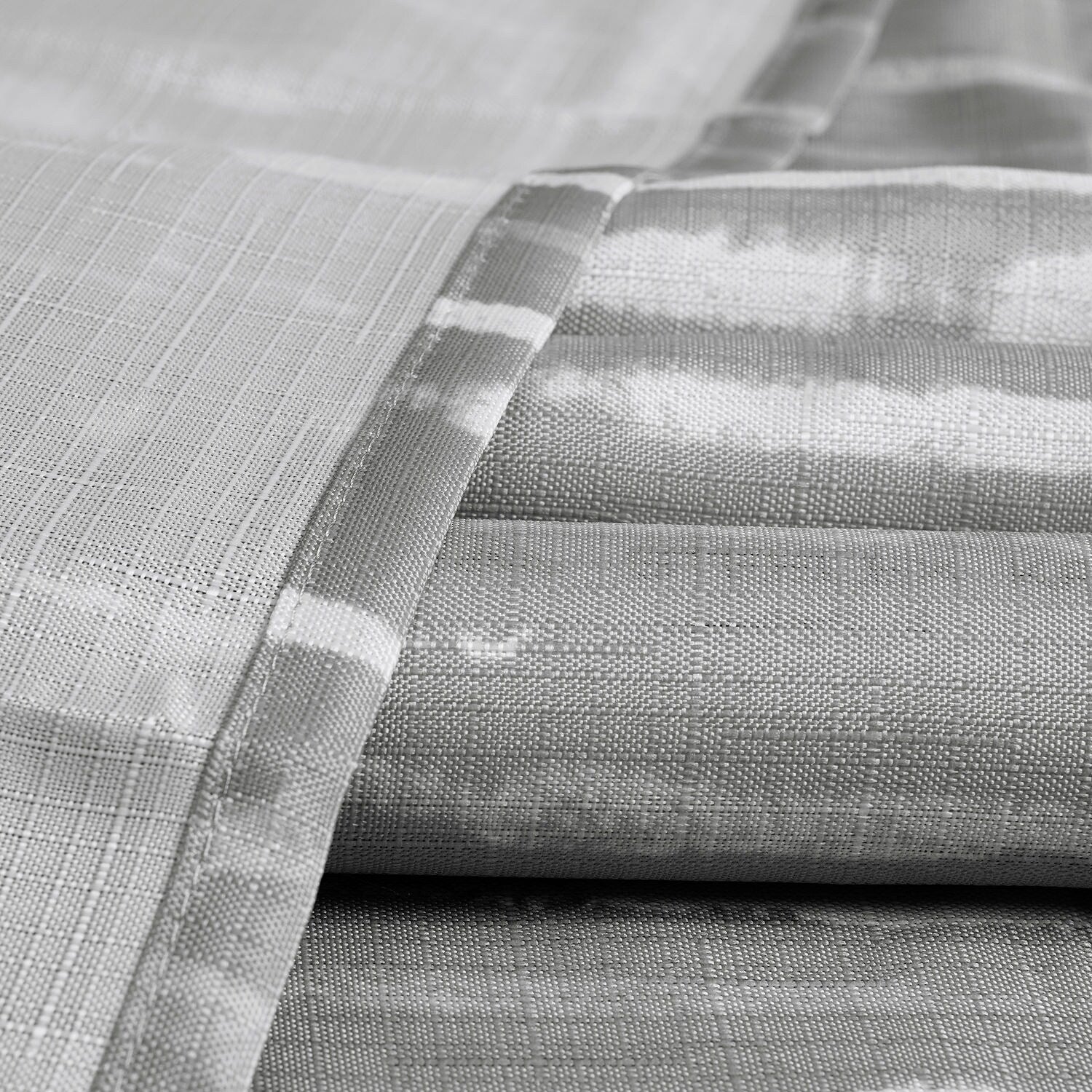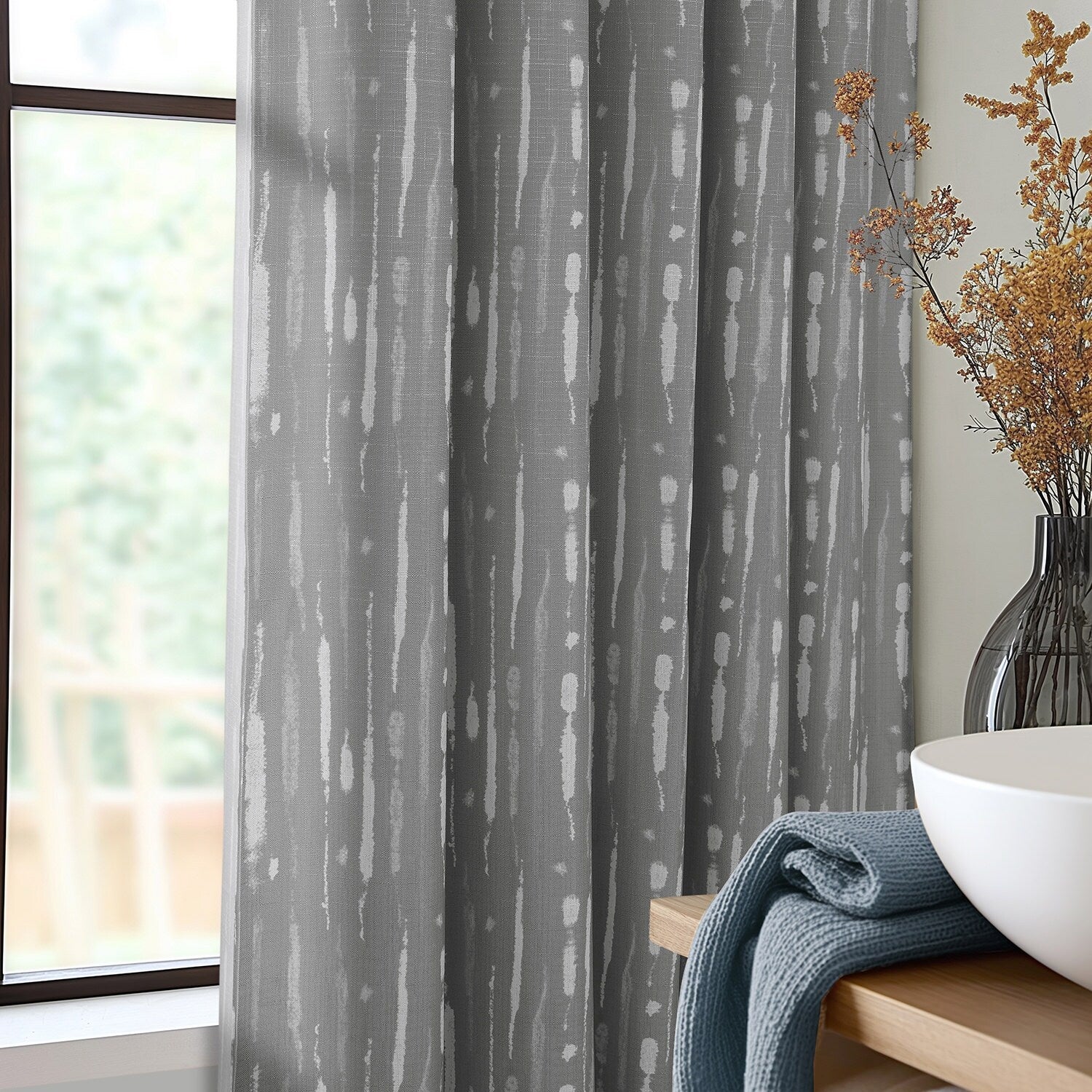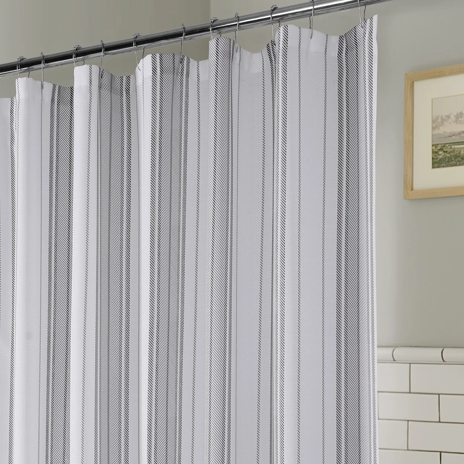 Add a sophisticated touch to your bathroom with these curtains. They are equipped with 12 metal ring grommets at the top for easy hanging and come with 12 metal silver rust less curtain hooks. The textured fabric not only enhances the visual appeal but also provides the durability needed for everyday use. These curtains are machine washable in cold water. Transform your bathroom into a chic and inviting space with this elegantly crafted collection. Care instructions: Machine wash separately in cold water, delicate cycle, do not bleach, tumble dry low.