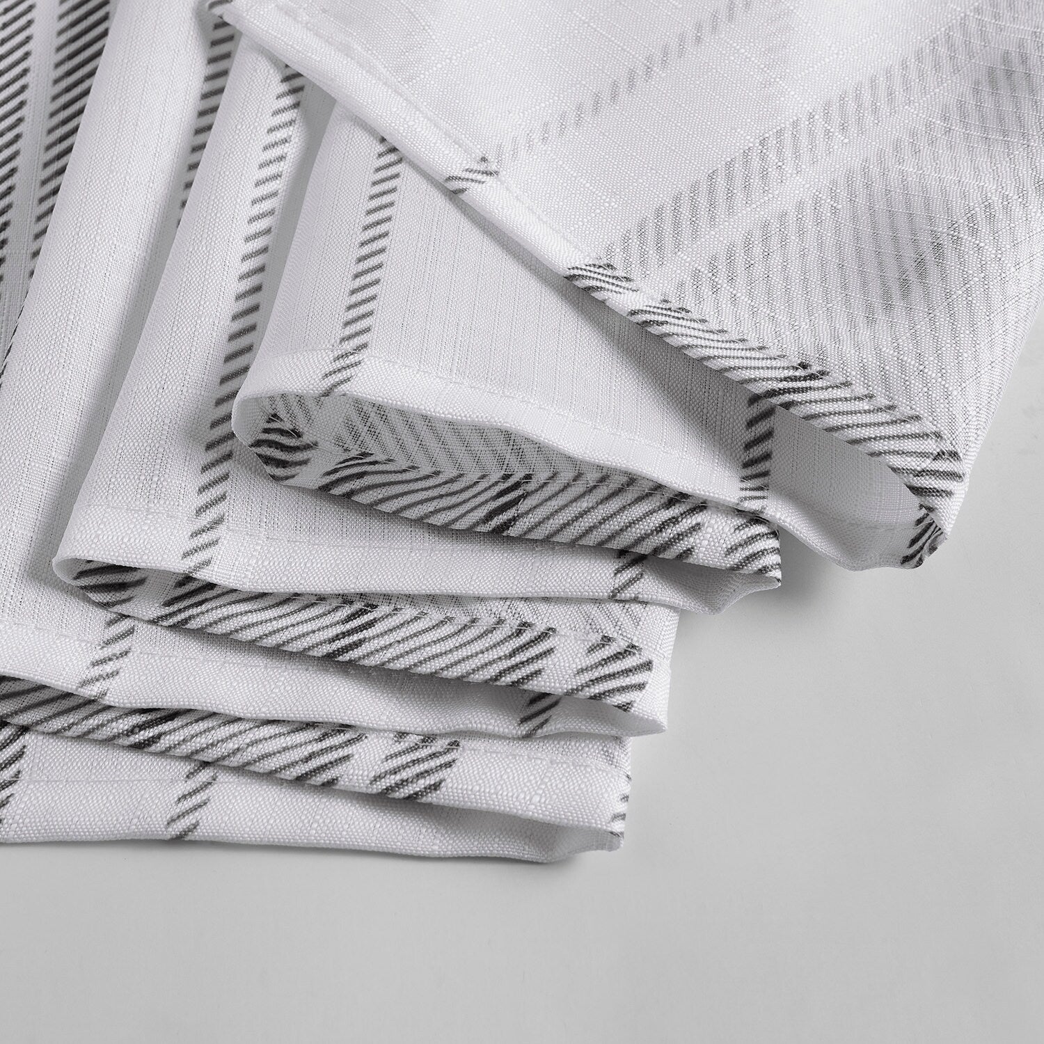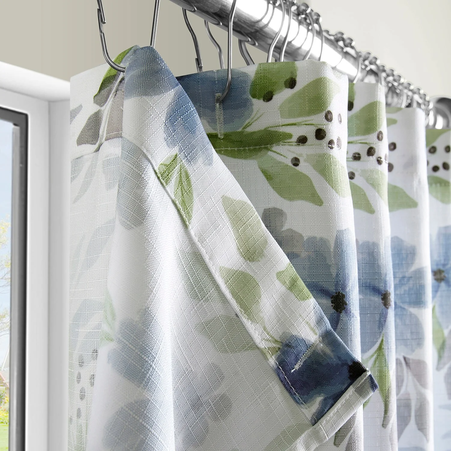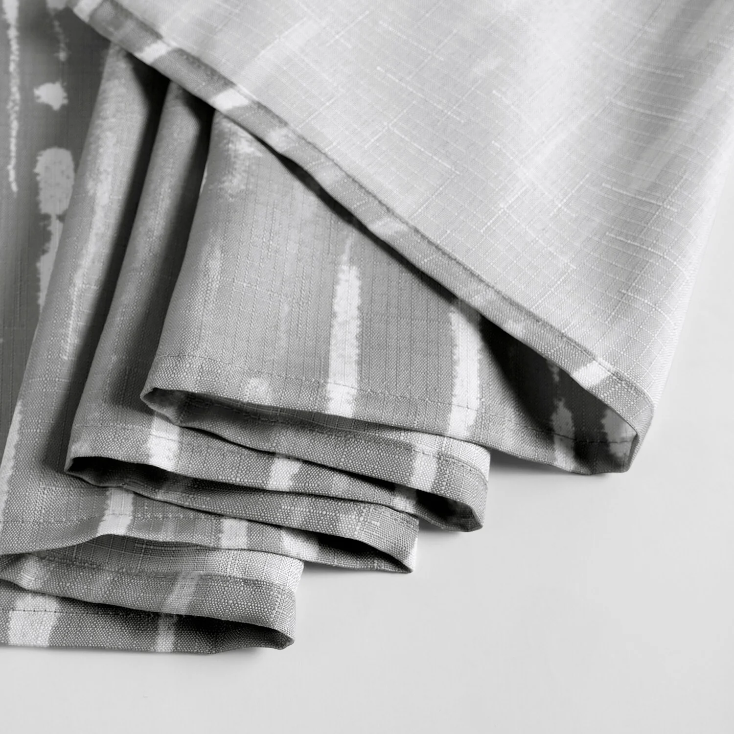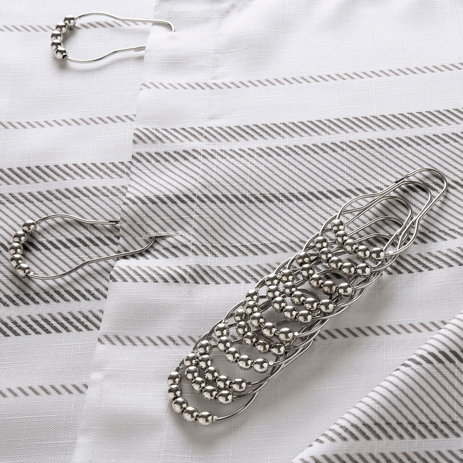 Add a sophisticated touch to your bathroom with these curtains. They are equipped with 12 metal ring grommets at the top for easy hanging and come with 12 metal silver rust less curtain hooks. The textured fabric not only enhances the visual appeal but also provides the durability needed for everyday use. These curtains are machine washable in cold water. Transform your bathroom into a chic and inviting space with this elegantly crafted collection. Care instructions: Machine wash separately in cold water, delicate cycle, do not bleach, tumble dry low.