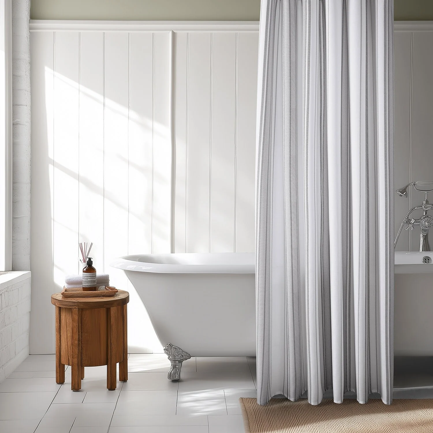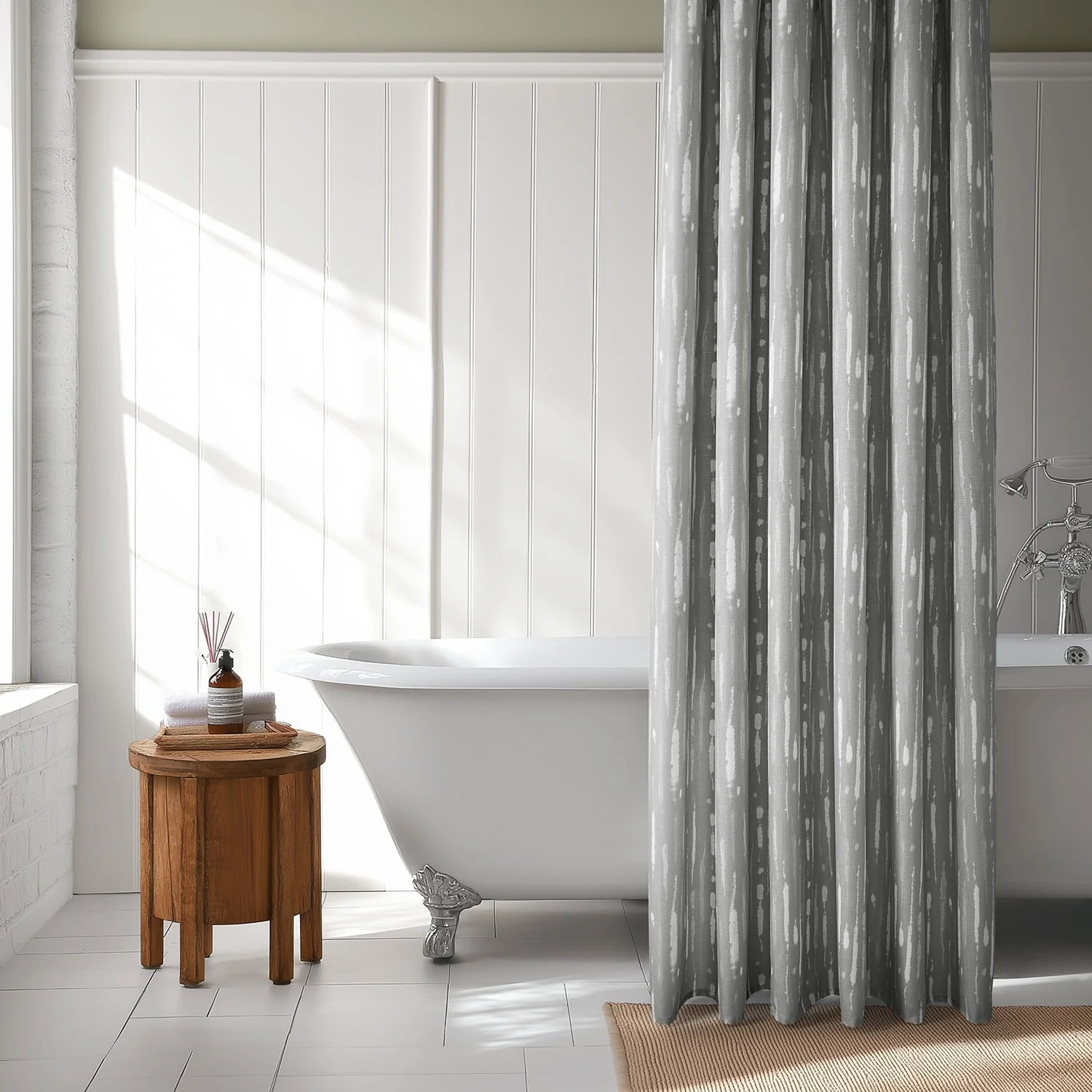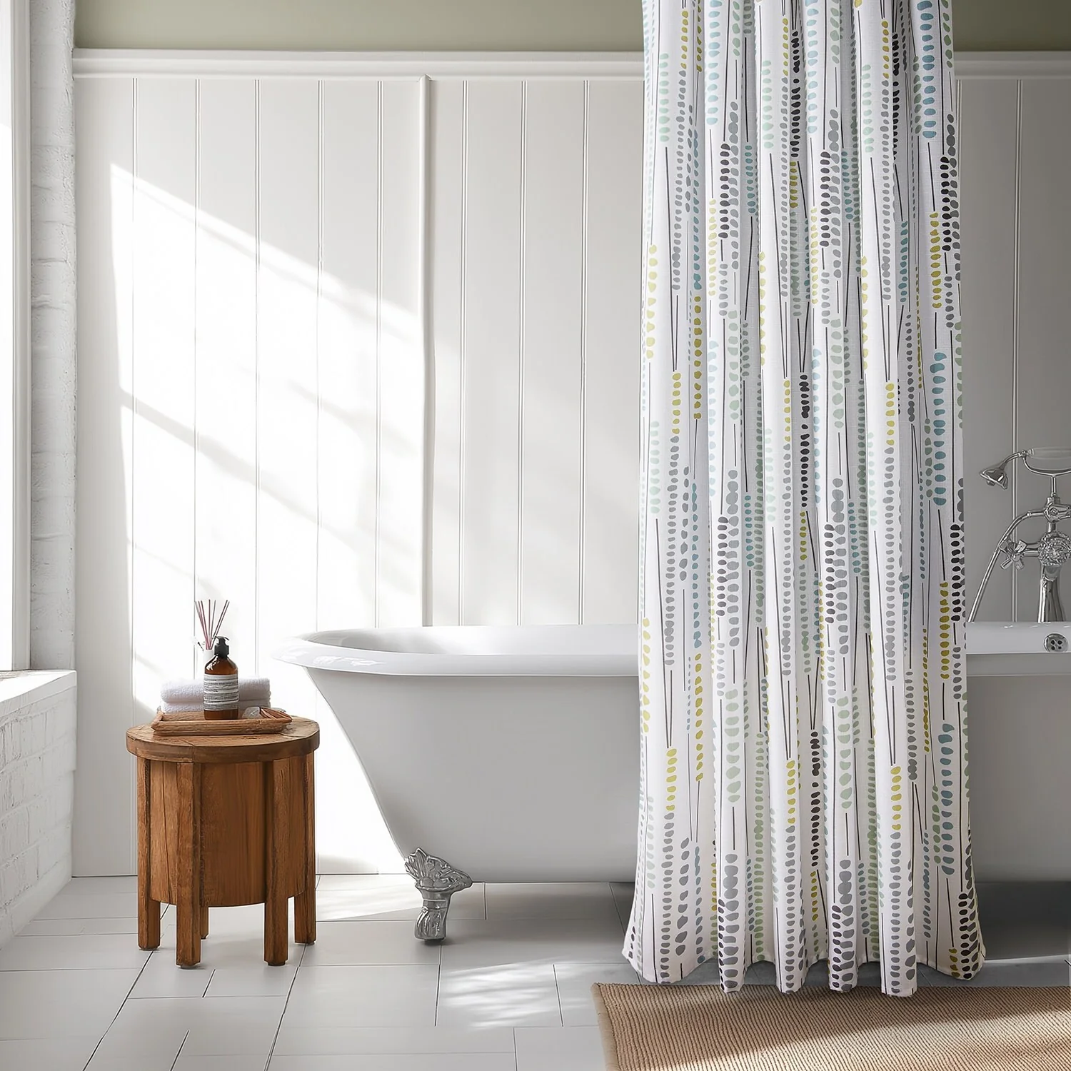 - Water Resistant: This unlined, water-resistant shower curtain repels moisture, allowing water to bead up and roll off, keeping your bathroom dry and clean