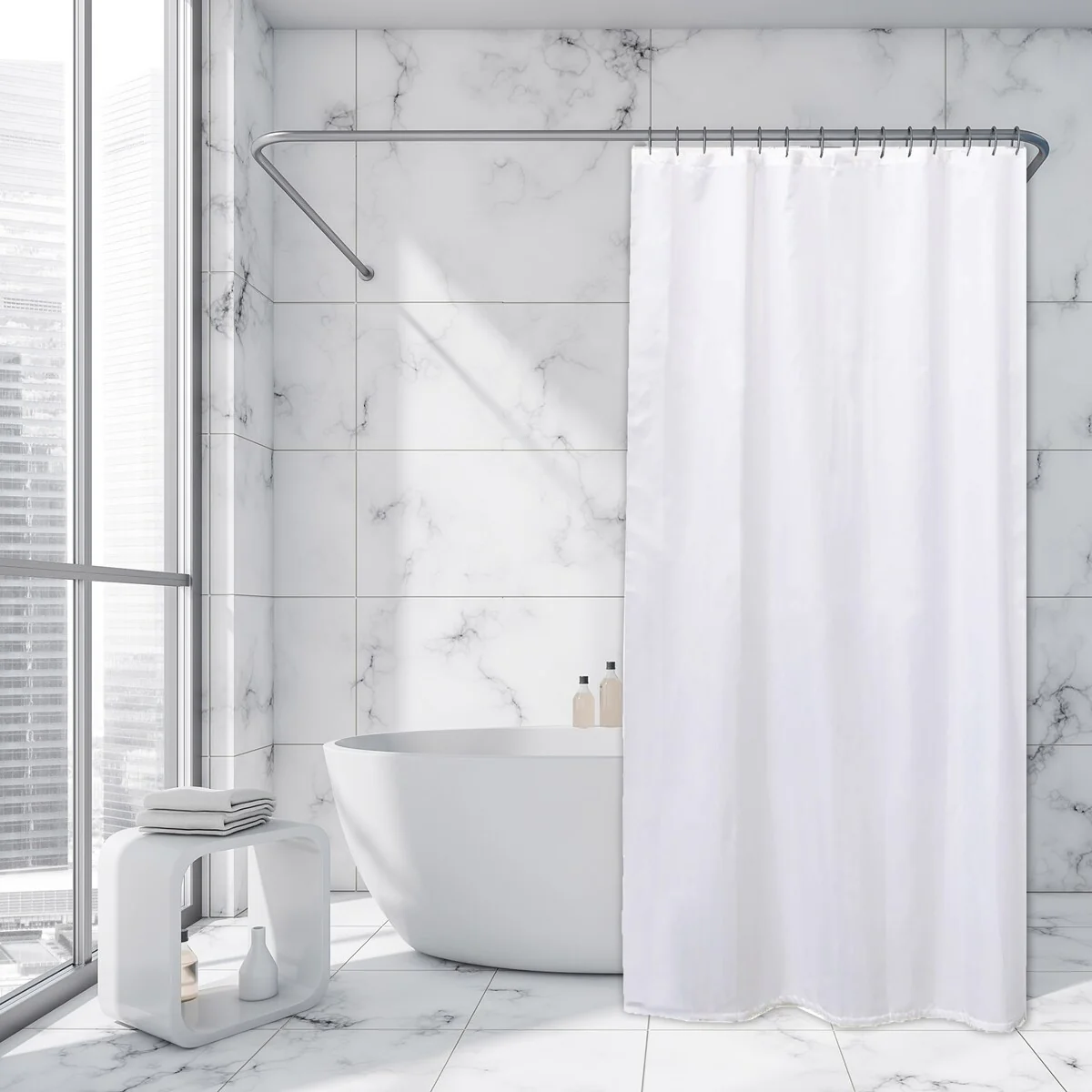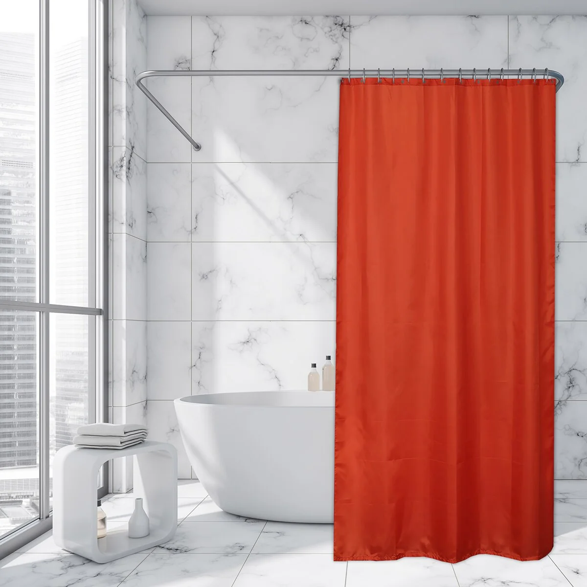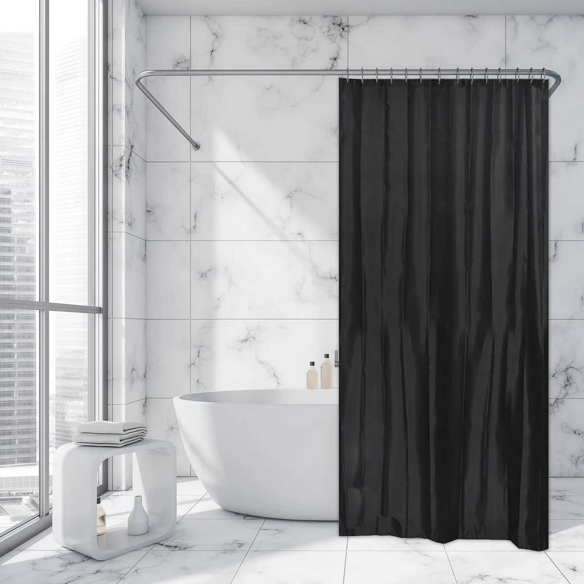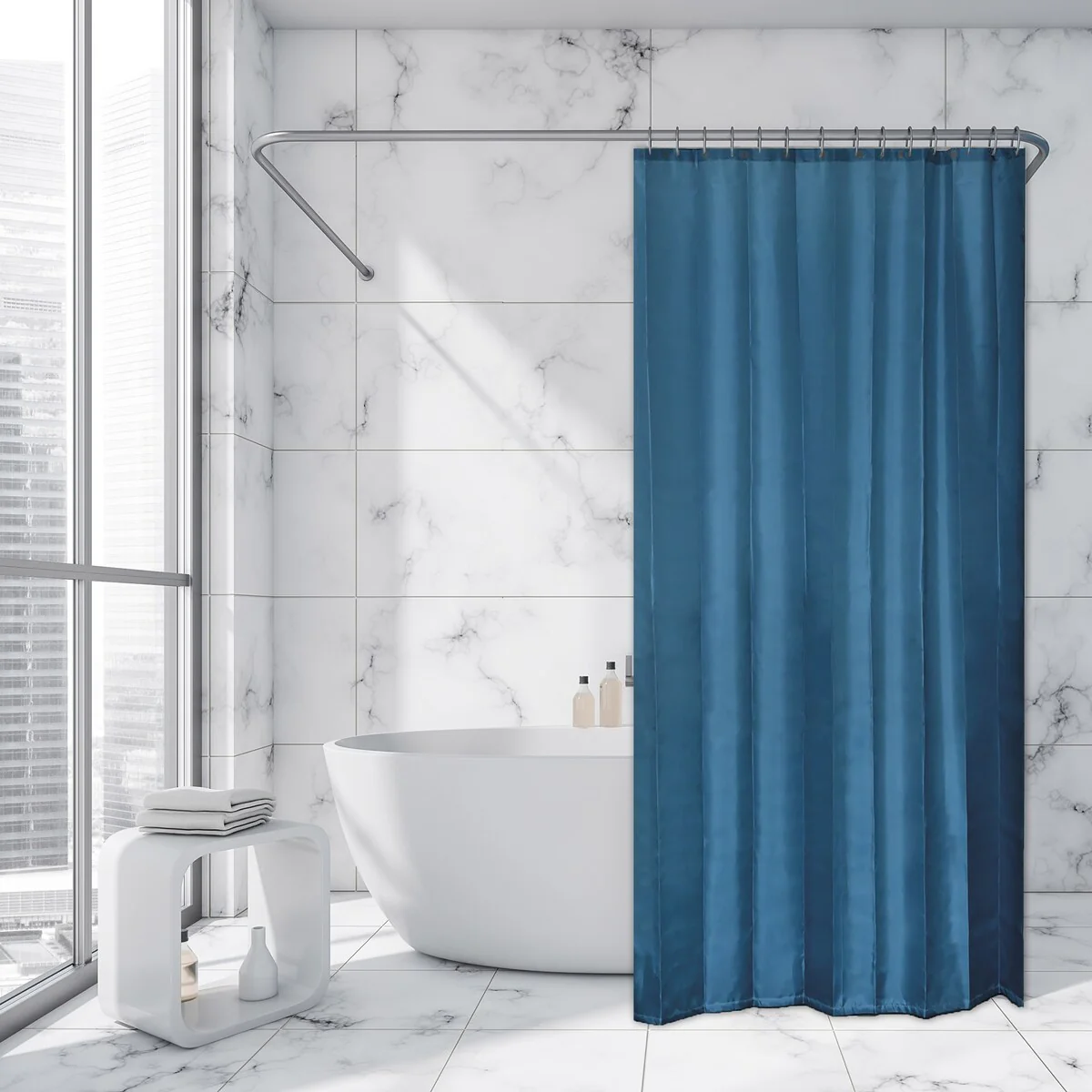 Elevate your shower experience with this Extra Long Shower Curtain. Made of 100% polyester, it is both durable and soft to the touch. With a height of 79 inches and a width of 71 inches, this curtain can fit most shower/tub combinations, making it a convenient addition to your bathroom. The waterproof material keeps water inside the shower and the cold air out, while the included 12 rustproof metal rings make installation a breeze. Choose from a variety of colors to add a personal touch to your space.