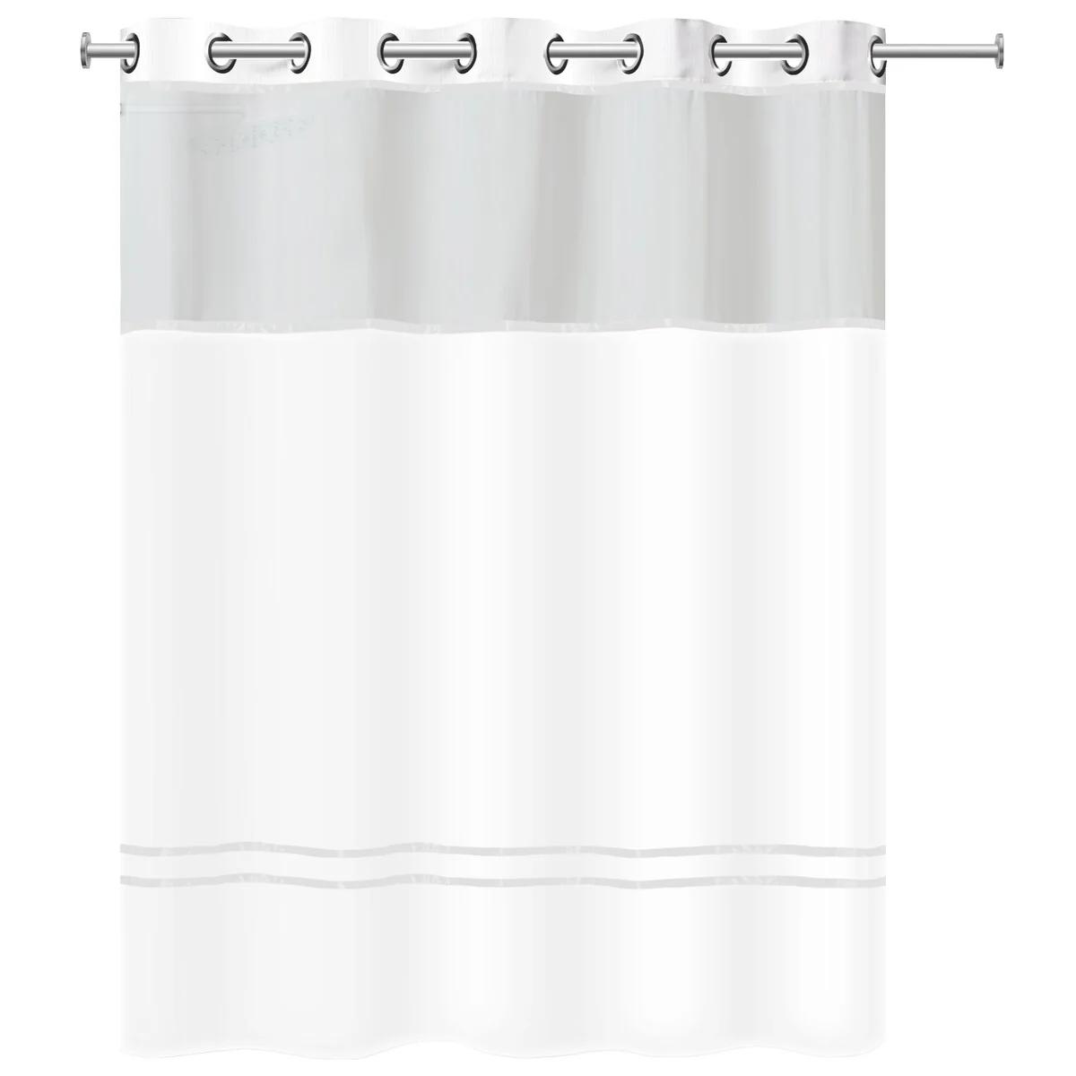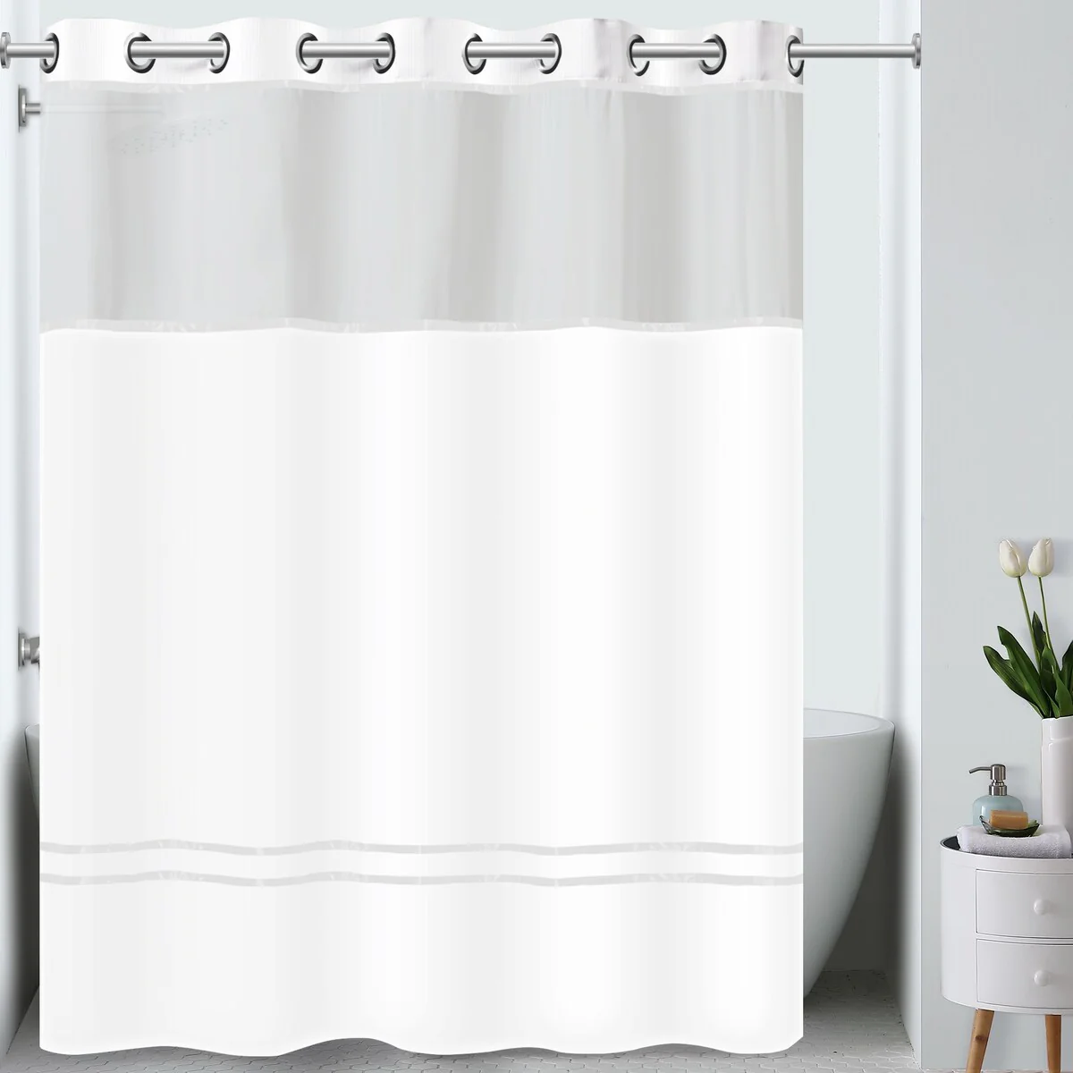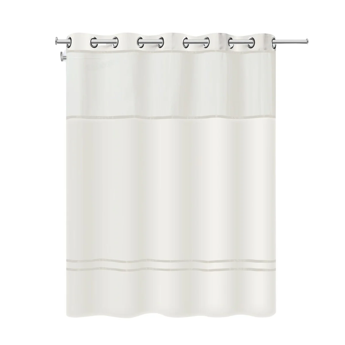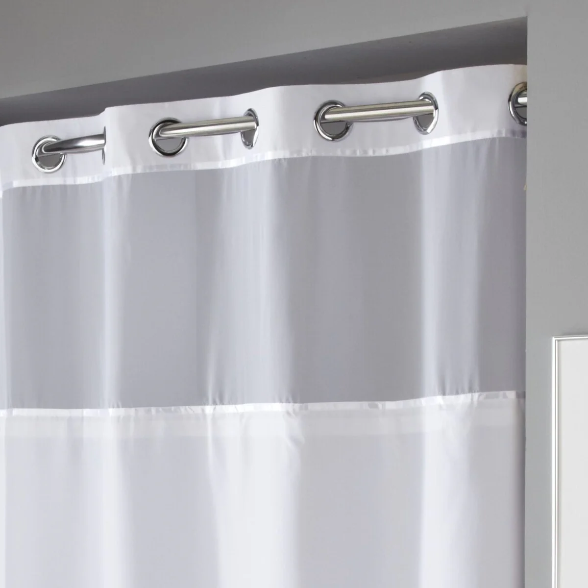 - Our Hookless shower curtain with snap in liner includes a sheer window that allows natural light while maintaining privacy, and reducing humidity and moisture for an inviting shower experience