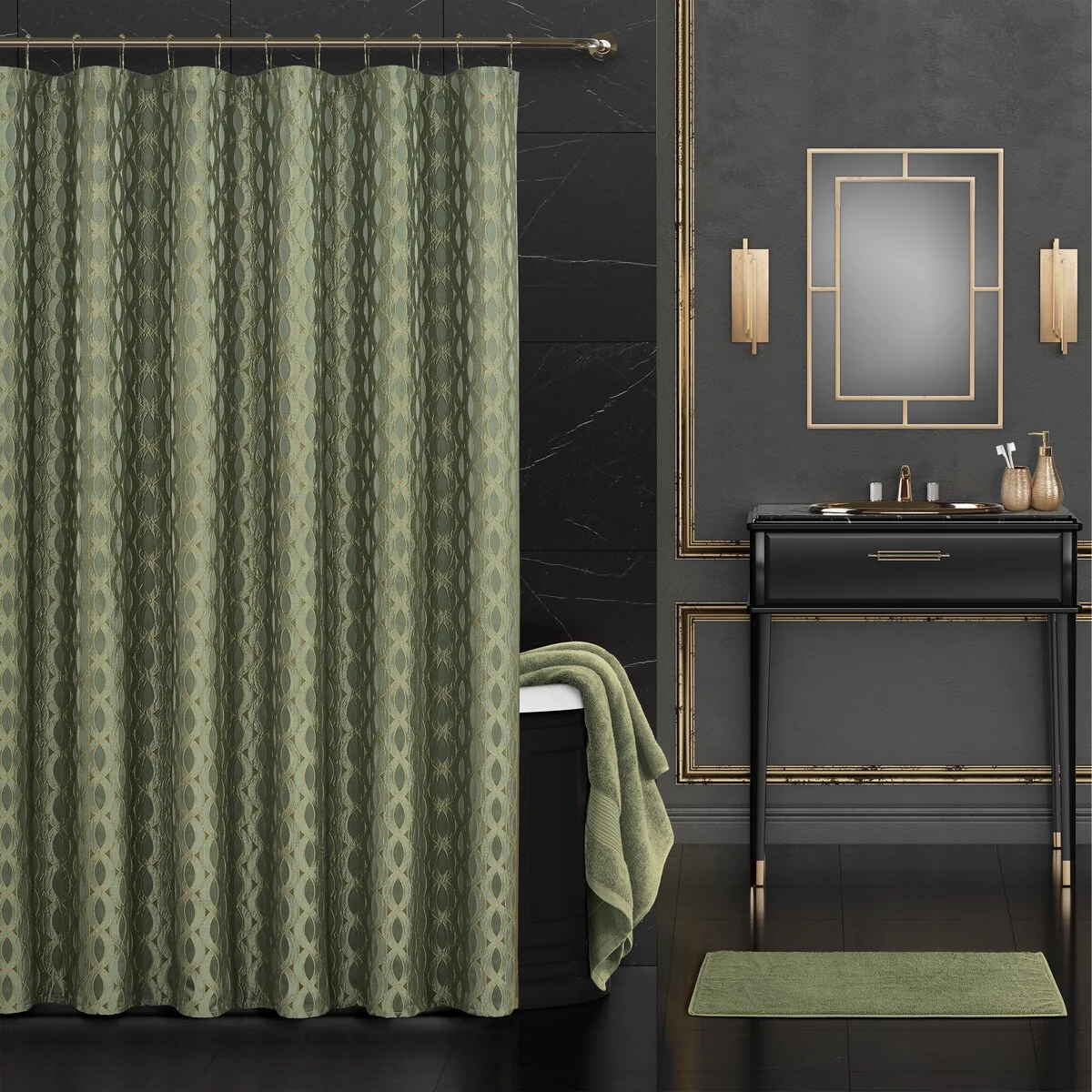 The La Boheme is a thoughtfully crafted luxury shower curtain. Constructed with a unique finishing process that is applied to this grand scale damask design, giving the appearance of an appliqued technique for added dimensions. A truly stunning addition to your bathroom and it is available in multiple colors to easily match with your existing decor. (Shower liner is recommended).