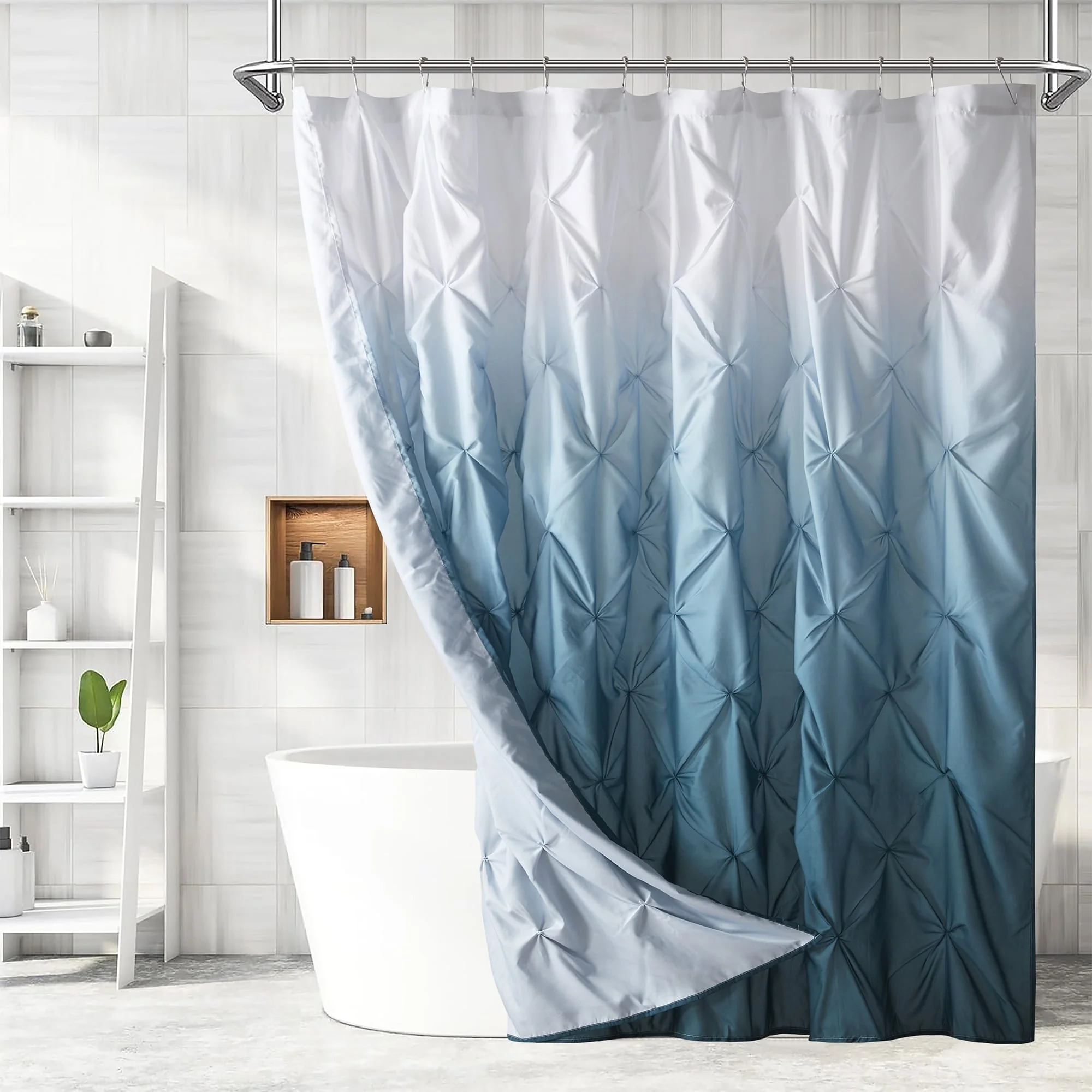 Designed for convenience, this shower curtain is not only visually appealing but also practical. The durable polyester material ensures longevity, while the machine-washable feature makes cleaning a breeze. Upgrade your bathroom with this on-trend and easy-to-maintain shower curtain that seamlessly blends fashion and function. Transform your daily routine into a luxurious experience with the Loralie Ombre Printed Pintuck Design Shower Curtain.