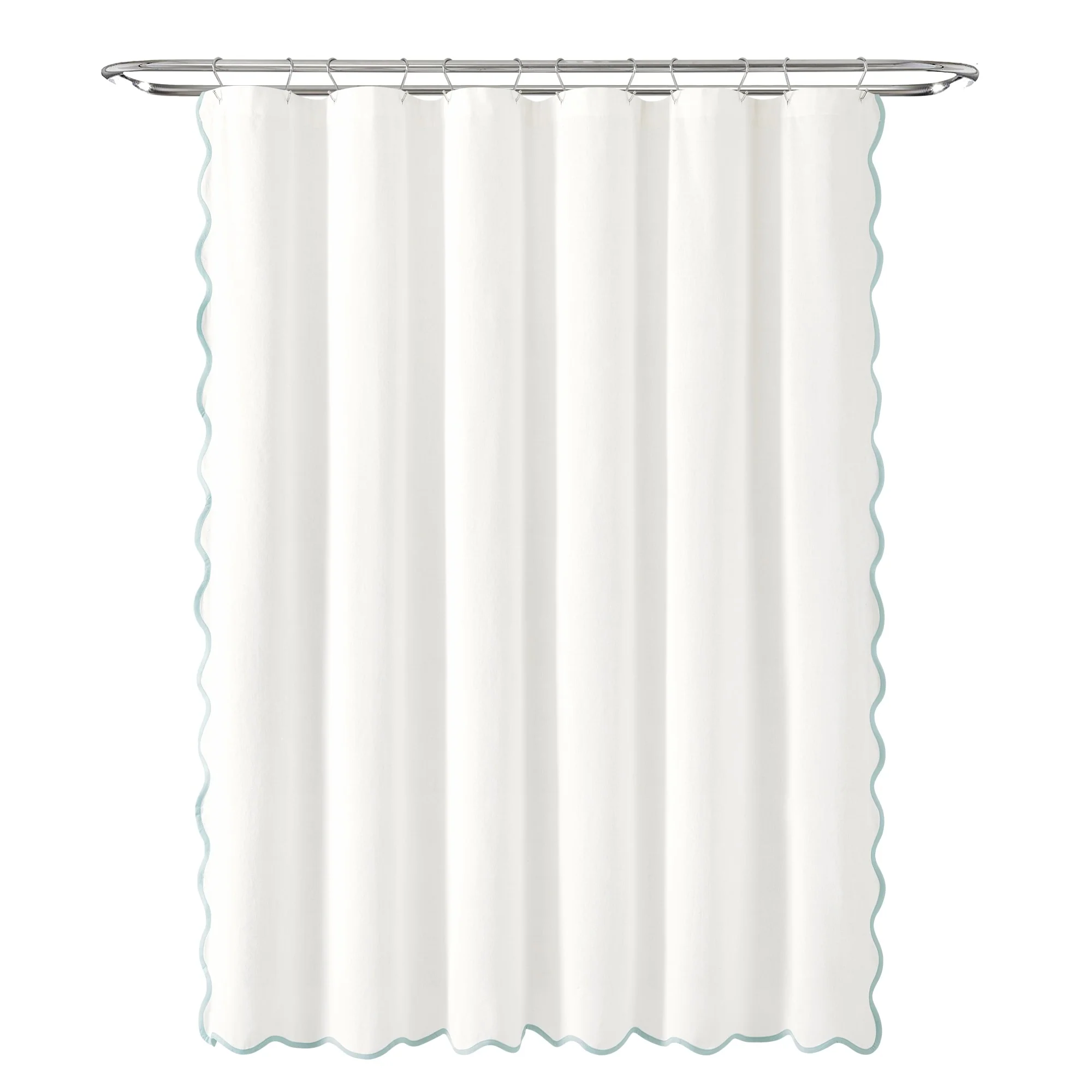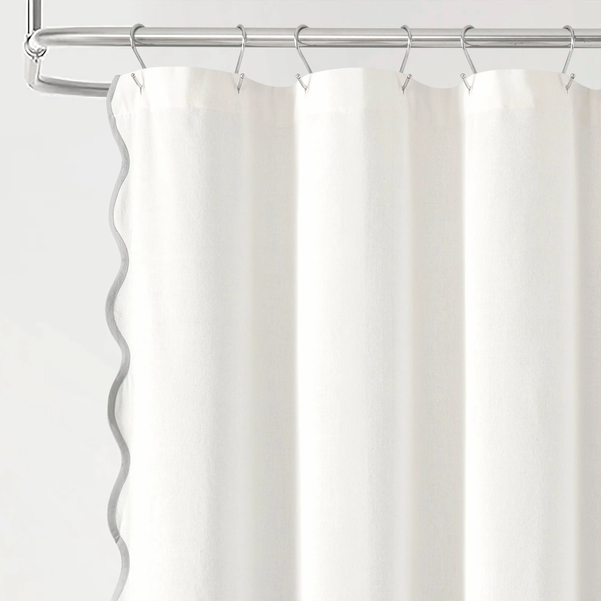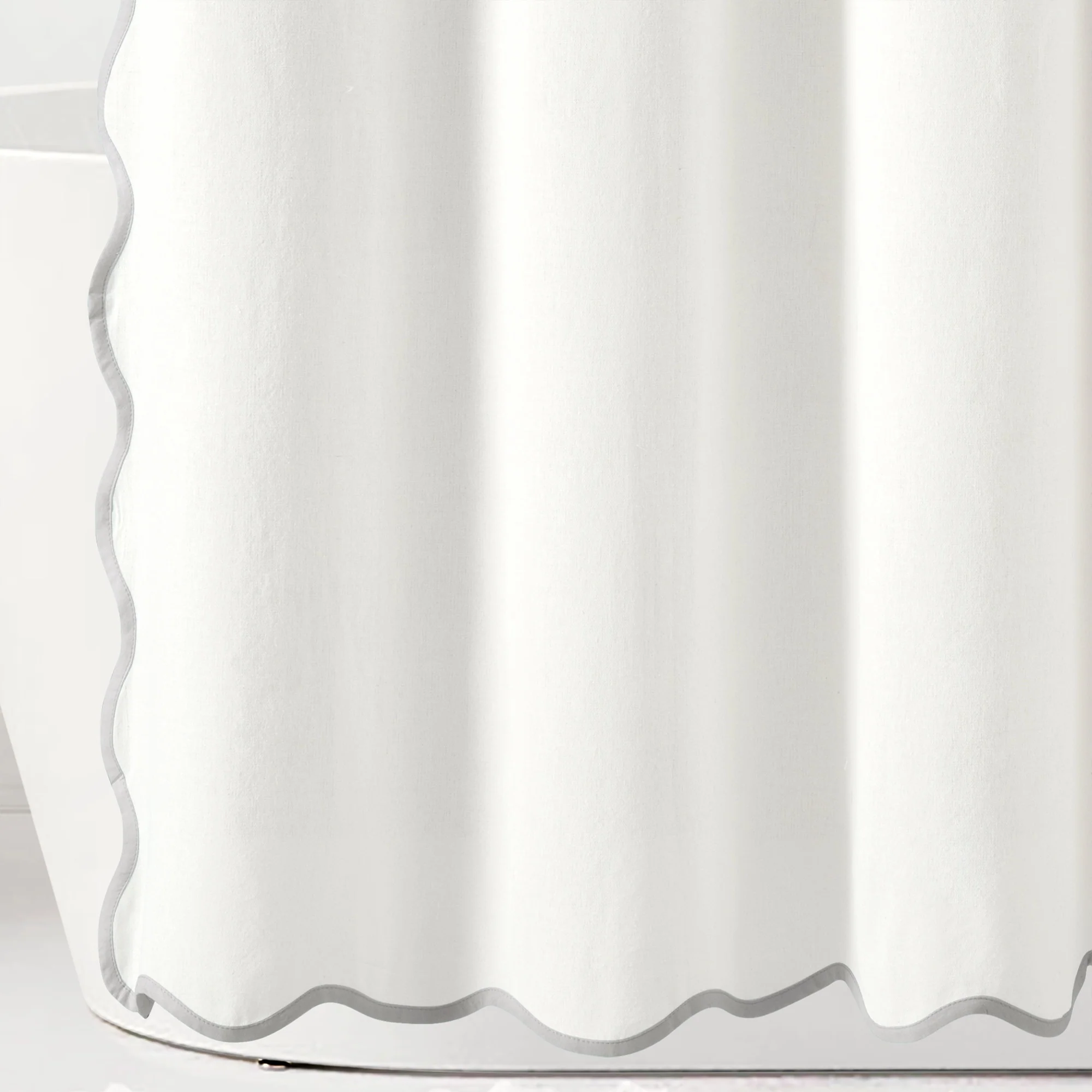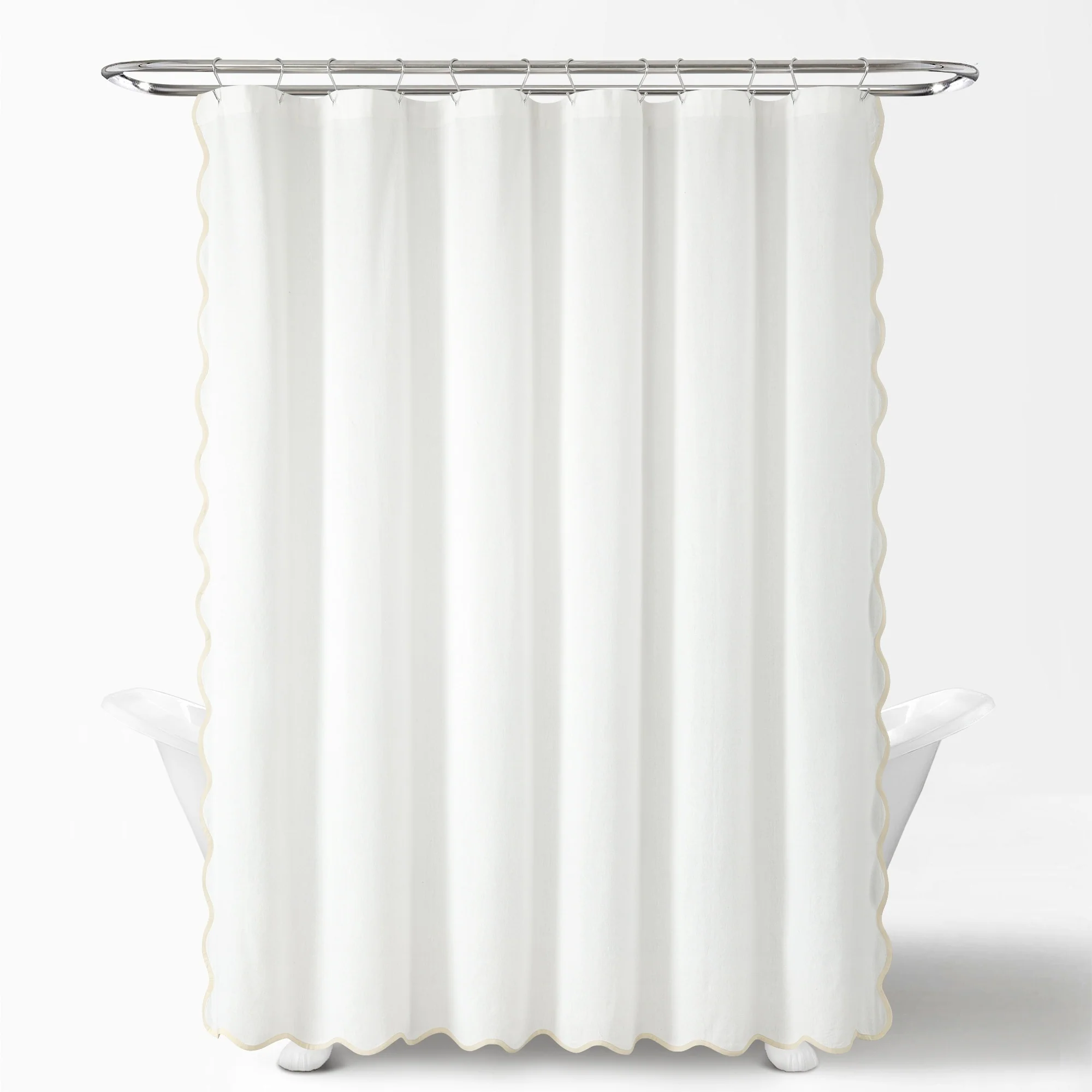 - Chic Decor: Bring a blend of seaside charm and style to your space with this Coastal Chic Scallop Edge Shower Curtain. The scalloped edge design is reminiscent of rolling waves along the shoreline, infusing your bathroom with a tranquil coastal ambiance.