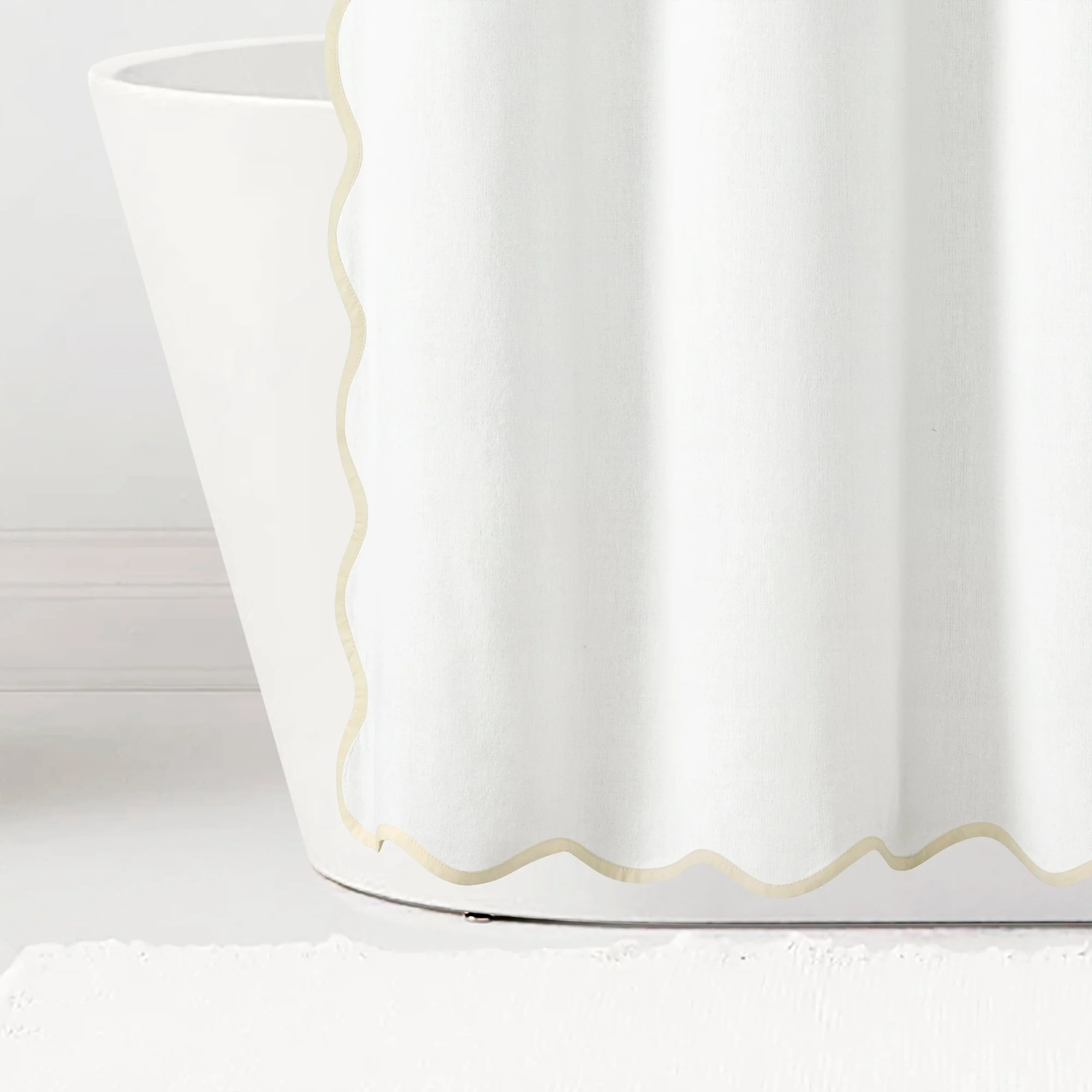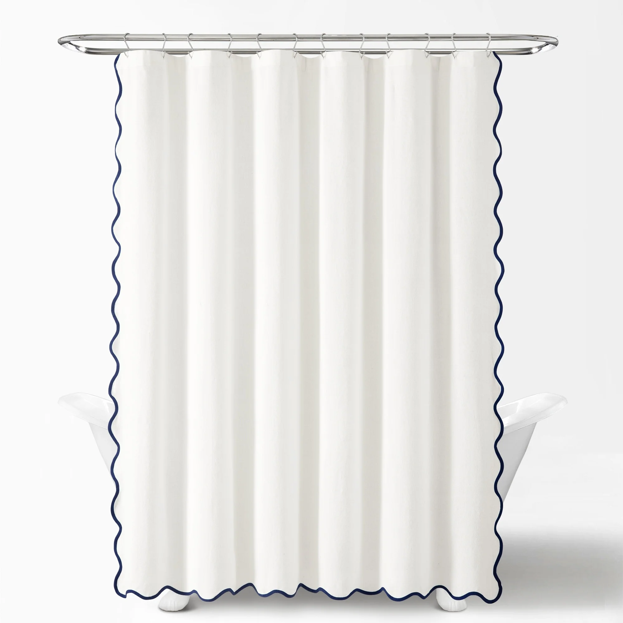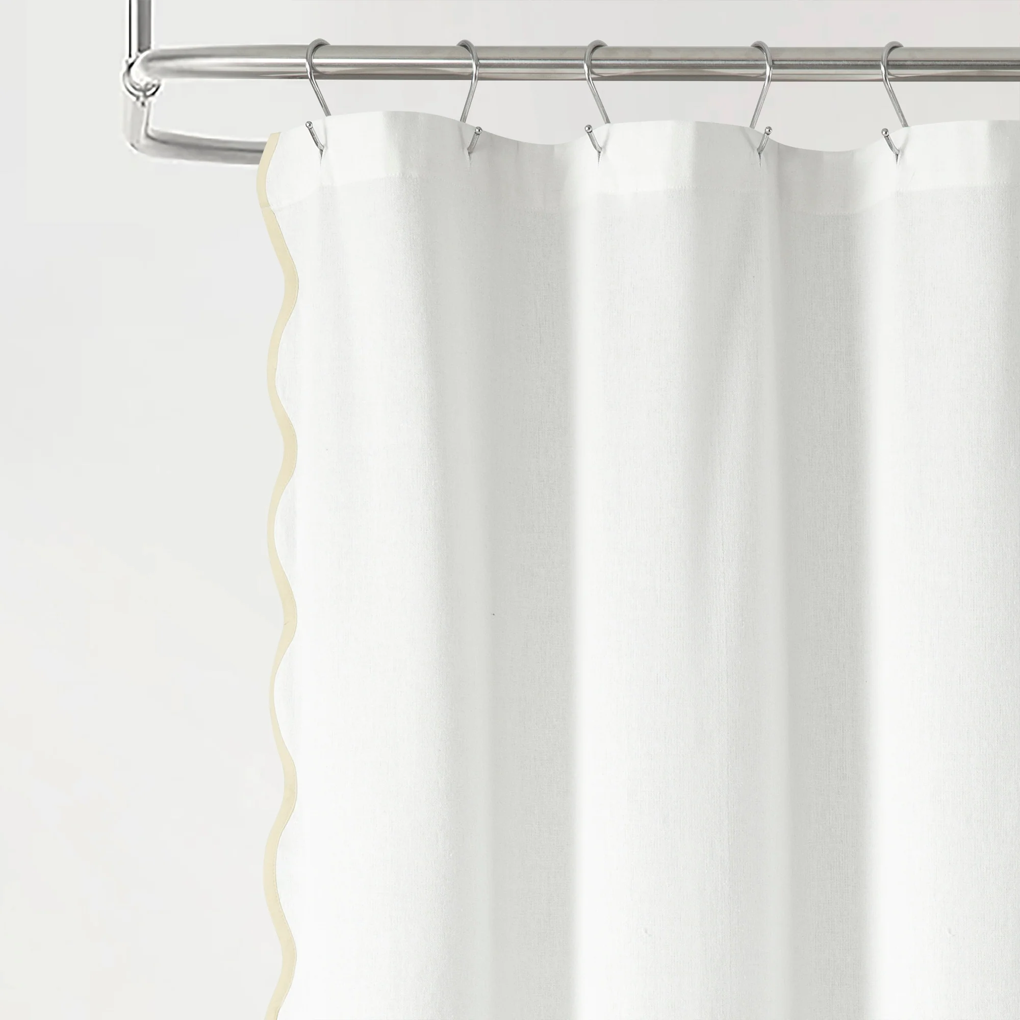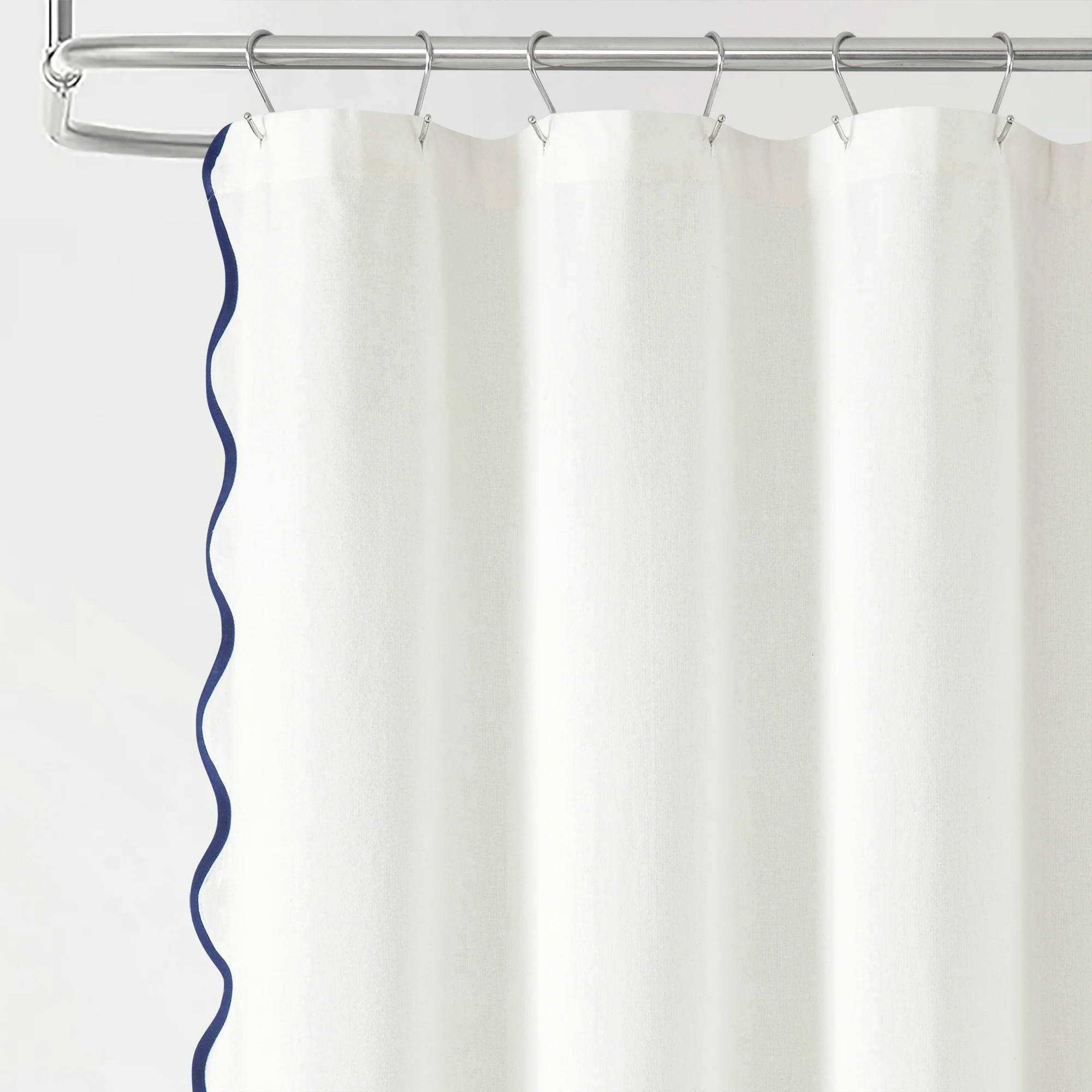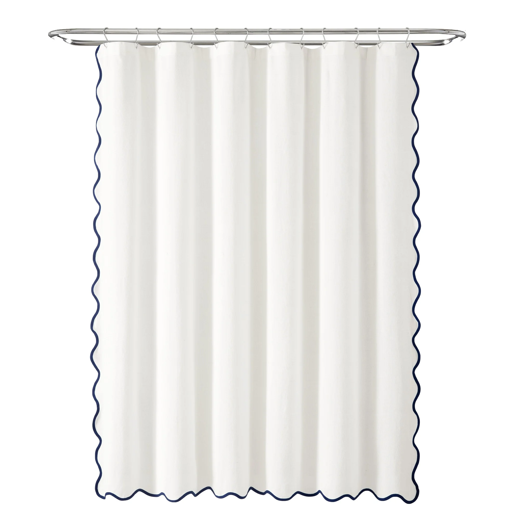 - Chic Decor: Bring a blend of seaside charm and style to your space with this Coastal Chic Scallop Edge Shower Curtain. The scalloped edge design is reminiscent of rolling waves along the shoreline, infusing your bathroom with a tranquil coastal ambiance.