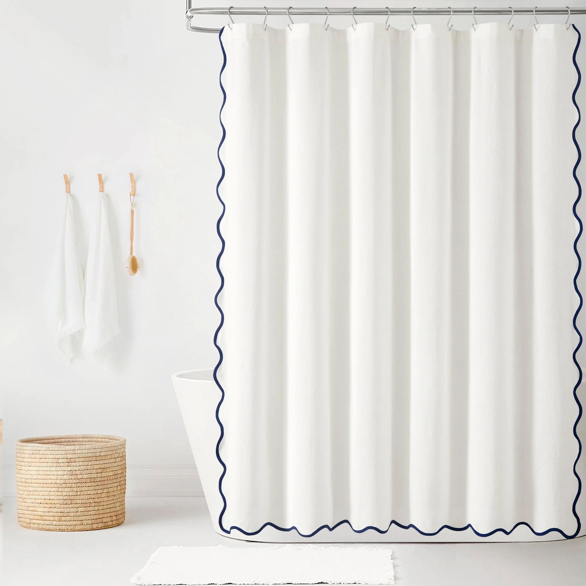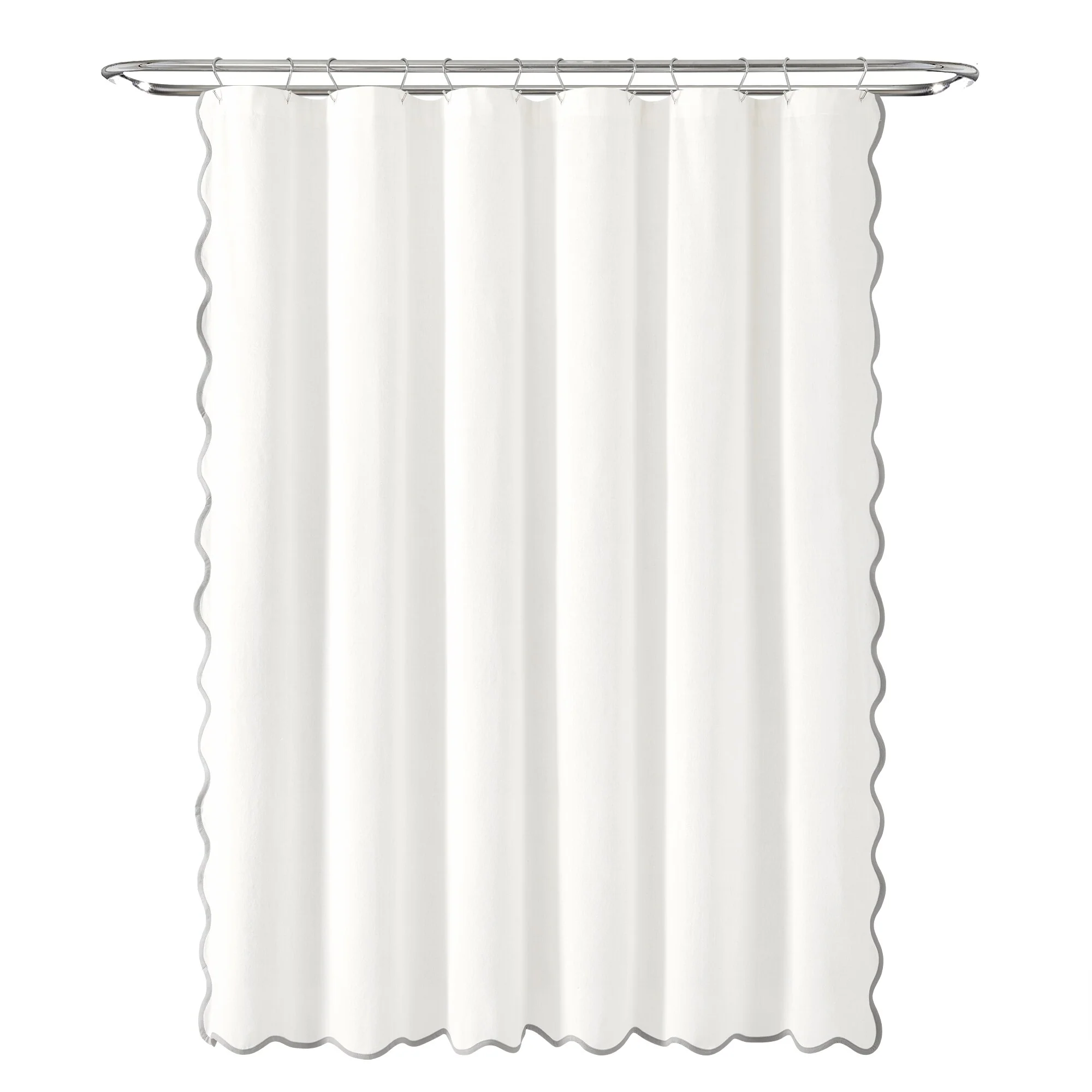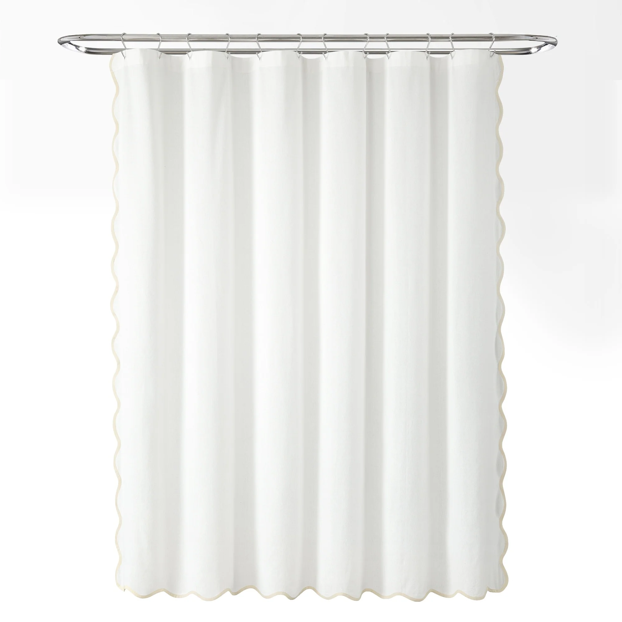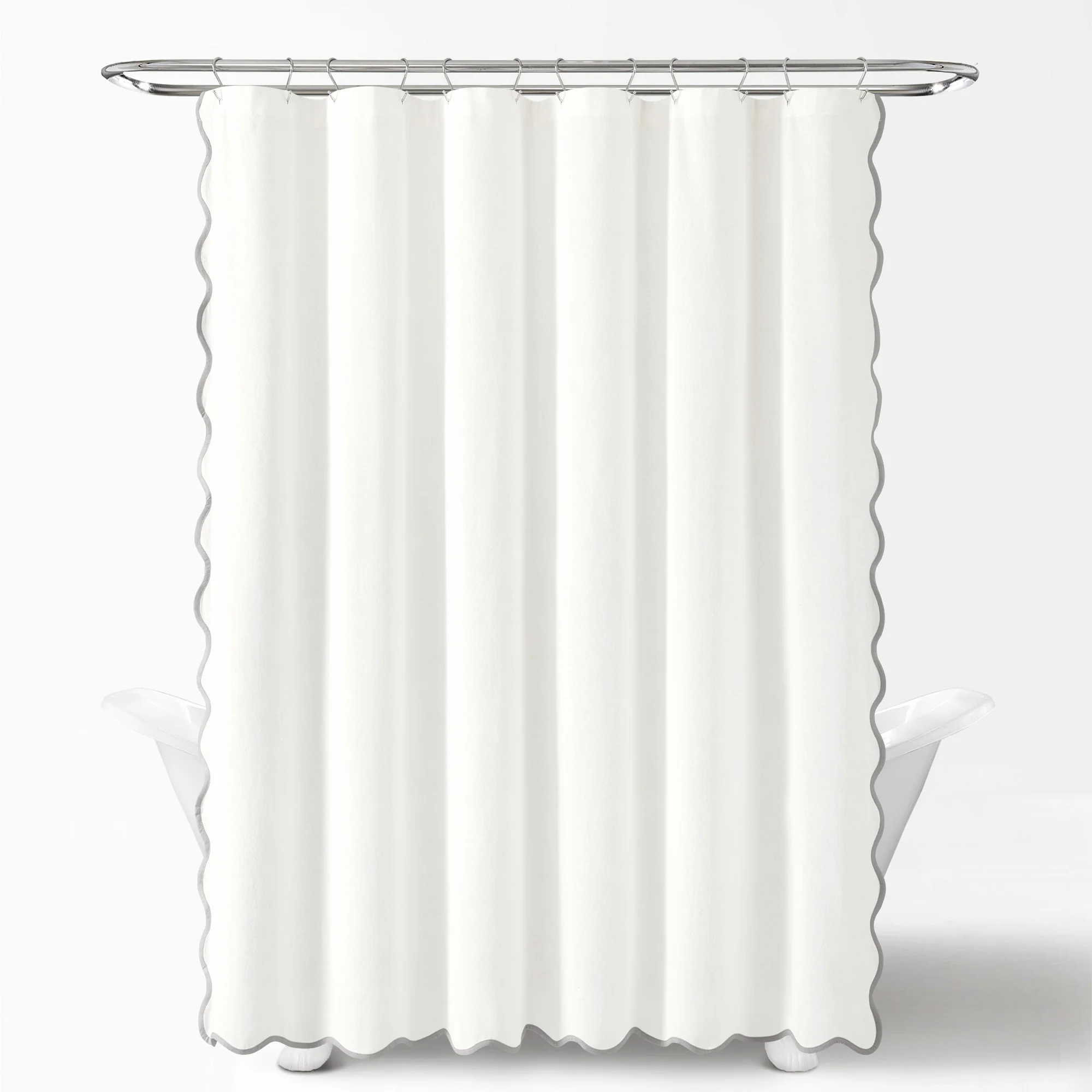 - Chic Decor: Bring a blend of seaside charm and style to your space with this Coastal Chic Scallop Edge Shower Curtain. The scalloped edge design is reminiscent of rolling waves along the shoreline, infusing your bathroom with a tranquil coastal ambiance.