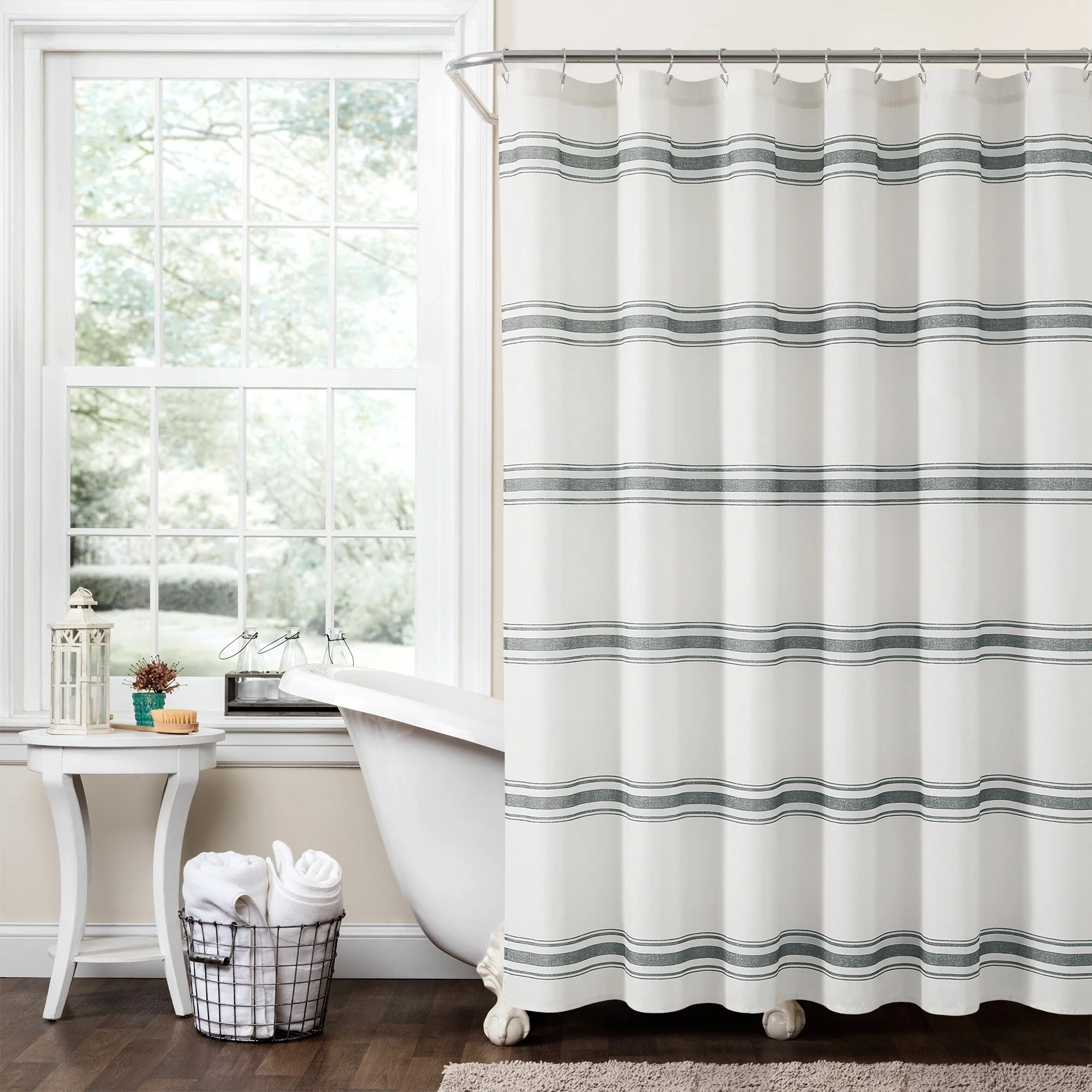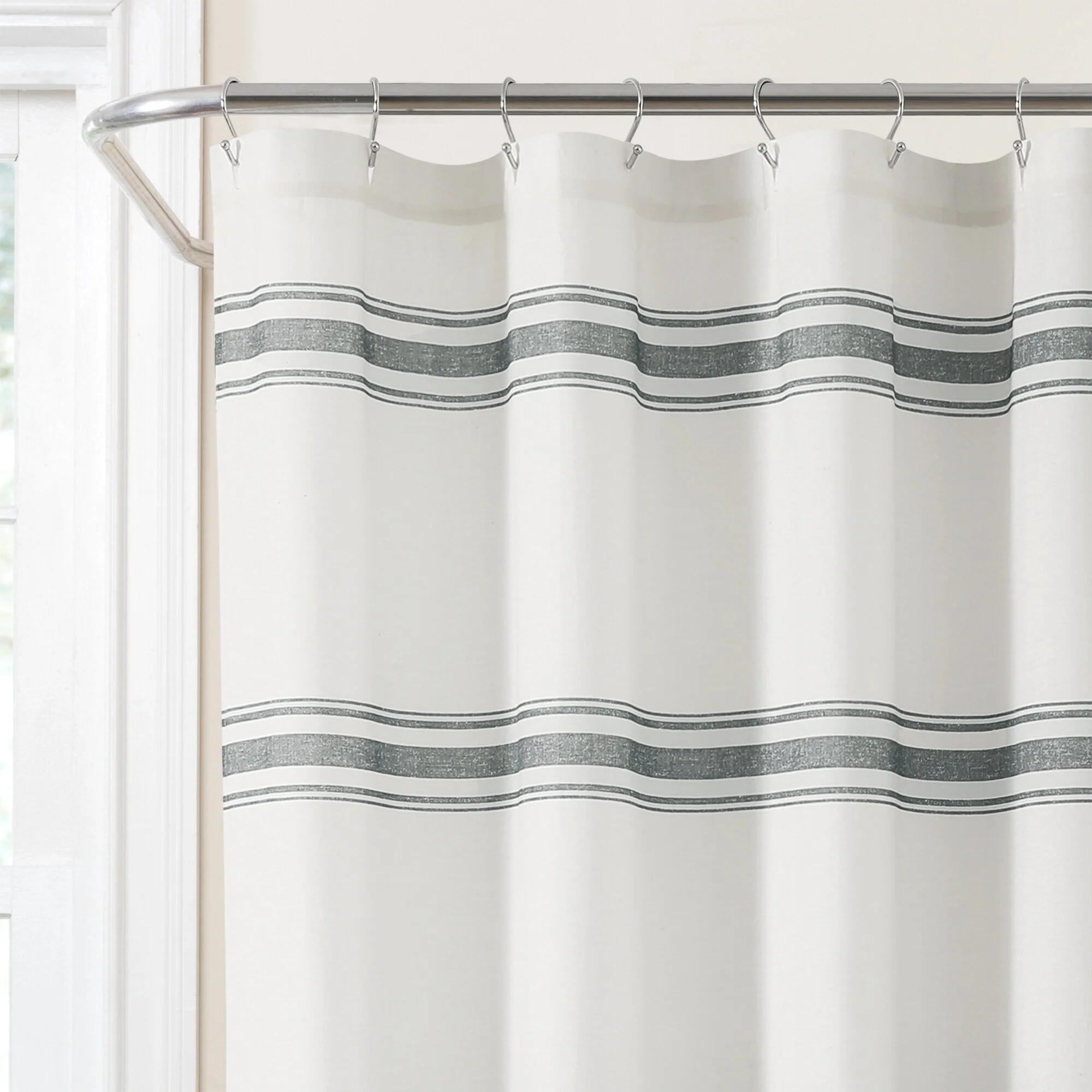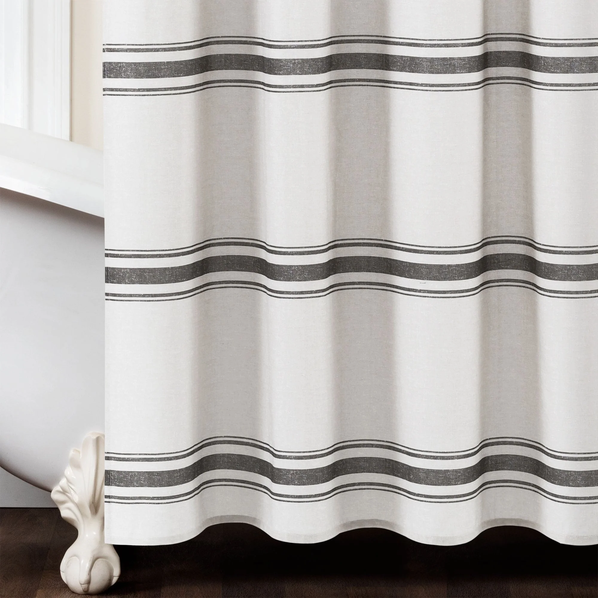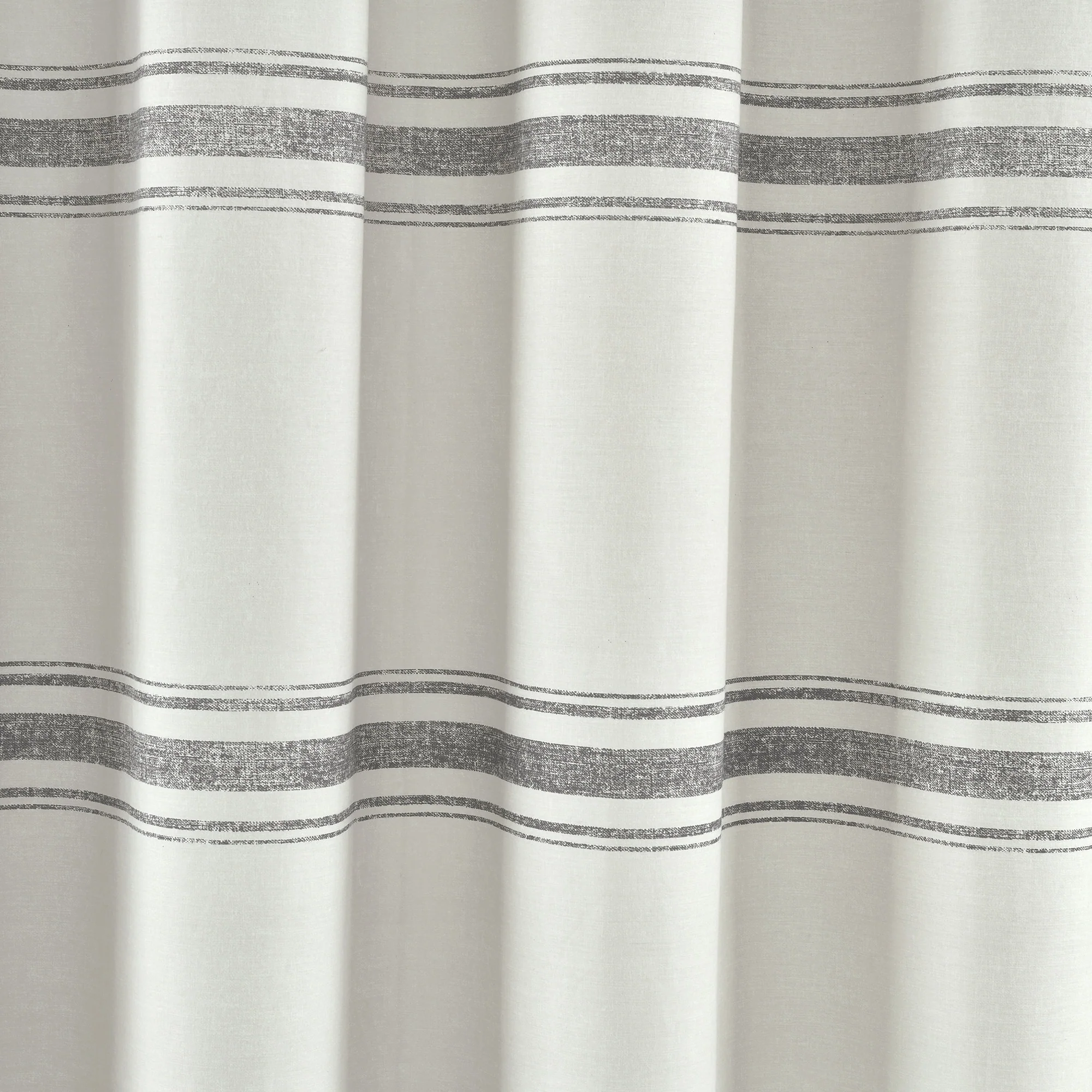 This shower curtain is OEKO-TEX Standard 100 certified, which means the fabric, dyes and all components have been tested in an independent laboratory and certified against a list of more than 350 harmful substances. This farmhouse style shower curtain is ideal for your master bathroom or guest bathroom. The printed stripes look great against a beige background. Either of our color options will surely enhance any bathroom. This striped cotton shower curtain will add style without overwhelming the space. Its simple yet fabulous design will create a fresh and beautiful look for your bathroom makeover. Measuring 72 inches long and 72 inches wide, the size and the modern farmhouse look of this shower curtain will fit nearly any bath. It hangs easily with any standard shower curtain hooks or rings, which are sold separately. This shower curtain is safe to machine wash. Please refer to the product label for full care instructions.