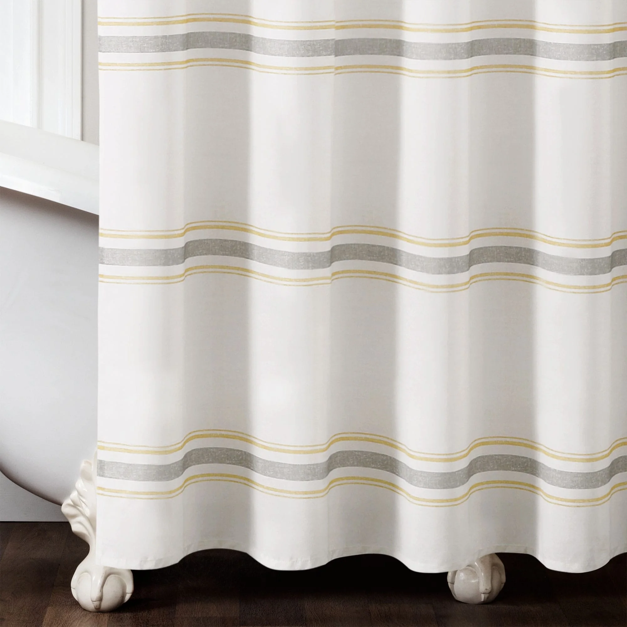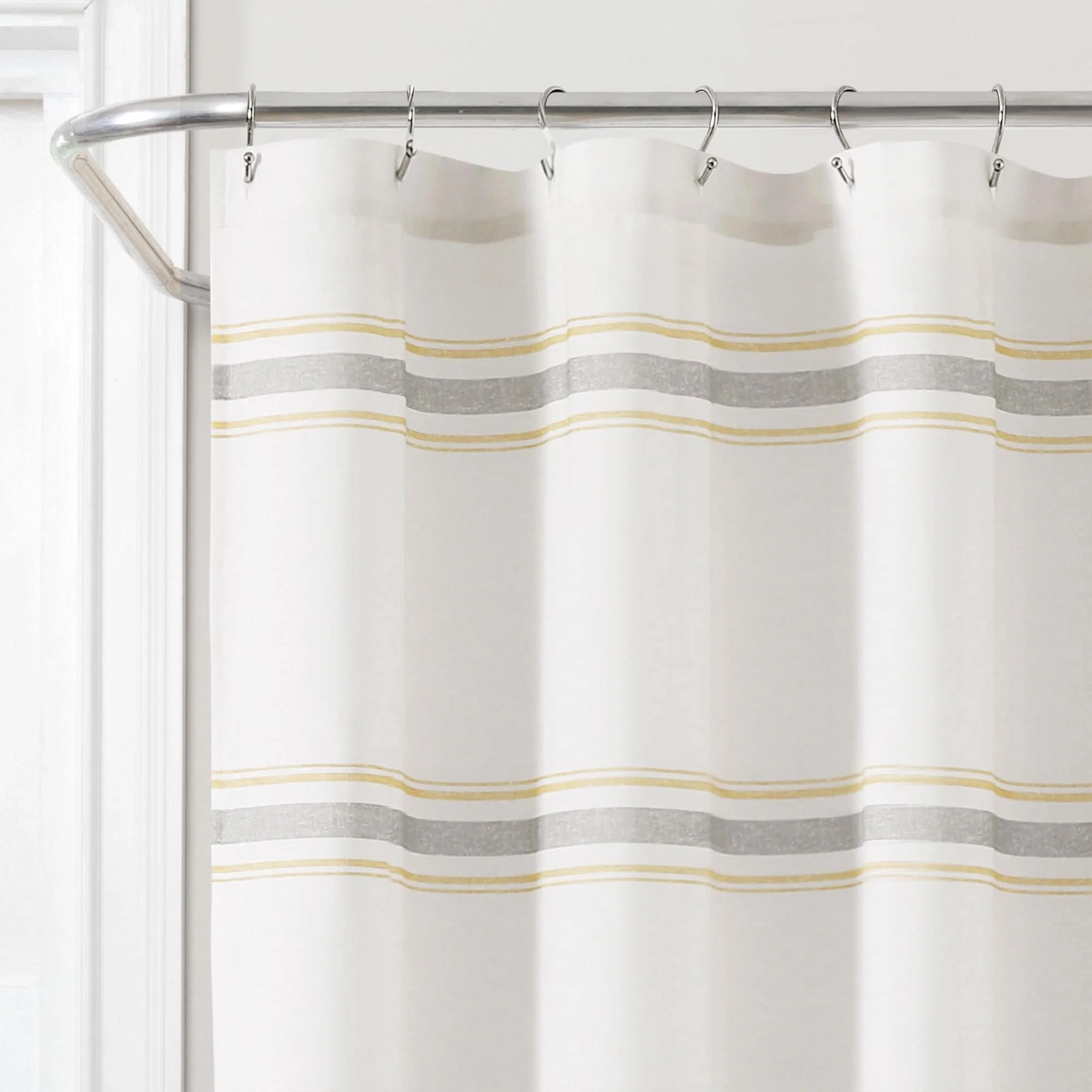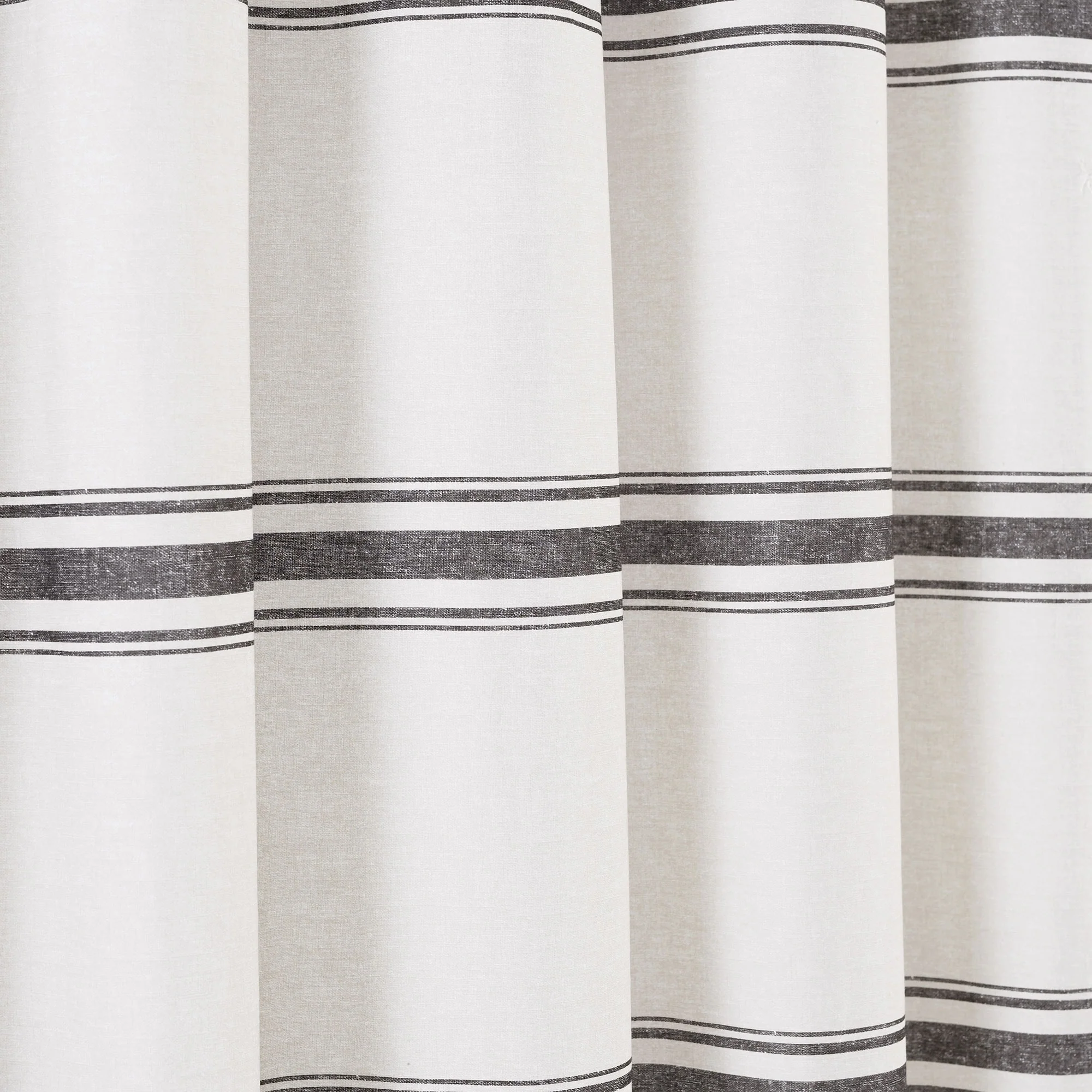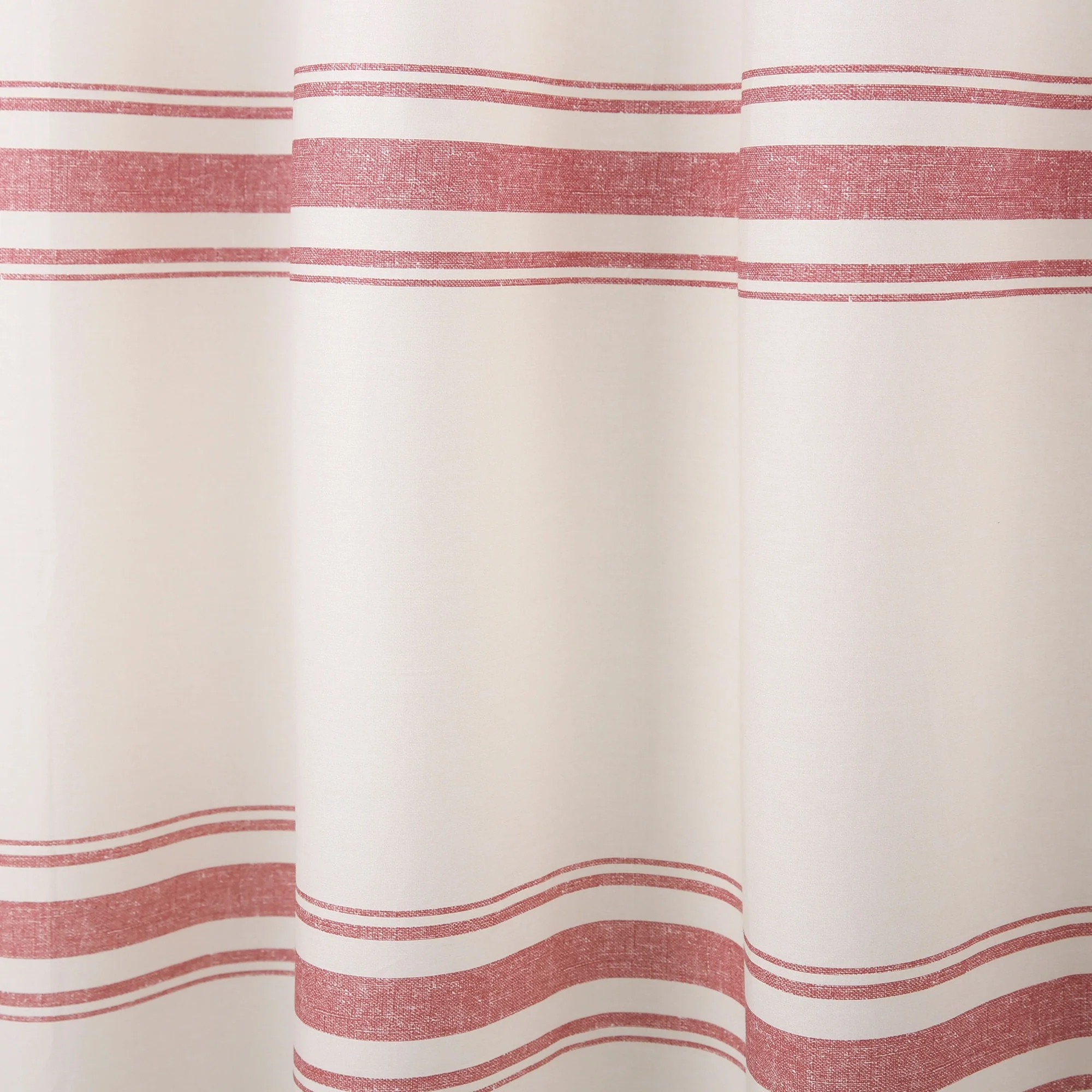 This shower curtain is OEKO-TEX Standard 100 certified, which means the fabric, dyes and all components have been tested in an independent laboratory and certified against a list of more than 350 harmful substances. This farmhouse style shower curtain is ideal for your master bathroom or guest bathroom. The printed stripes look great against a beige background. Either of our color options will surely enhance any bathroom. This striped cotton shower curtain will add style without overwhelming the space. Its simple yet fabulous design will create a fresh and beautiful look for your bathroom makeover. Measuring 72 inches long and 72 inches wide, the size and the modern farmhouse look of this shower curtain will fit nearly any bath. It hangs easily with any standard shower curtain hooks or rings, which are sold separately. This shower curtain is safe to machine wash. Please refer to the product label for full care instructions.