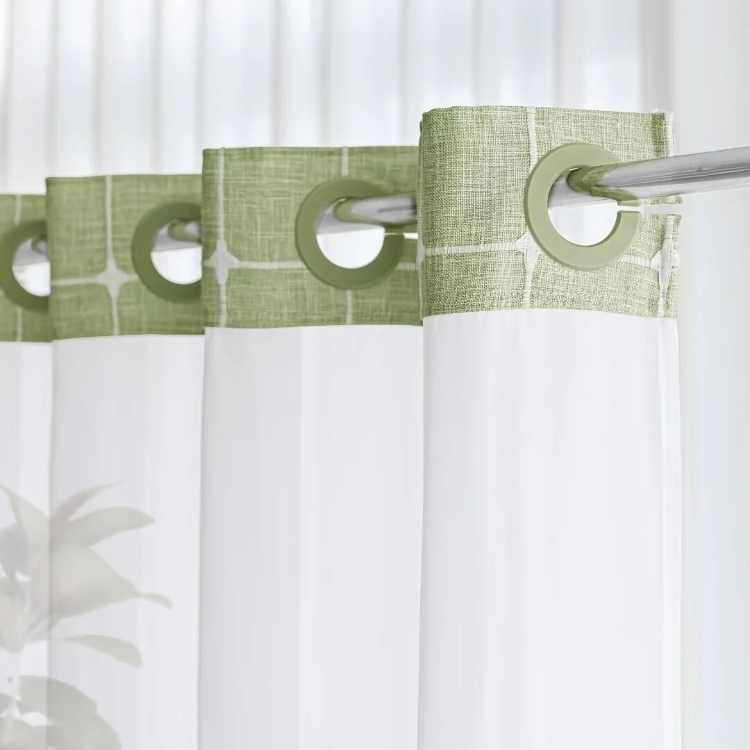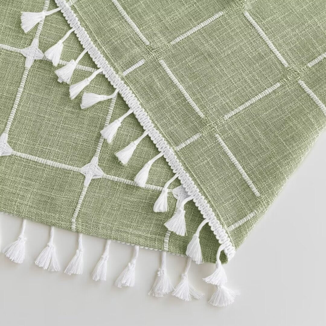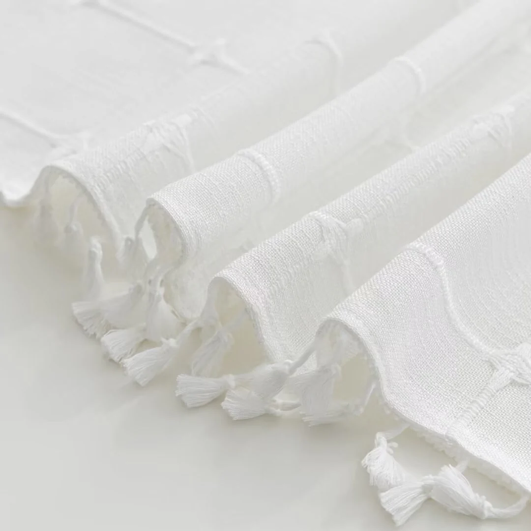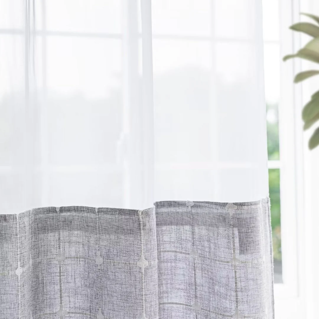 Introducing the Modern Farmhouse Geometric Tassel Shower Curtain, a luxurious addition to any bathroom that combines sophisticated design with practical functionality. Perfect for those who appreciate fine details and unique touches. Featured with captivating 3D embroidery geometric design and charming tassels at the bottom, this shower curtain effortlessly transforms your bathroom into a stylish retreat. Built-in split rings makes it easy for installment, no additional hooks needed, simply slide onto your shower rod for an instant upgrade. Top sheer window allows light and air to flow into and brightens your bath space. The detachable liner is easy to snap on/off for cleaning or replacing.