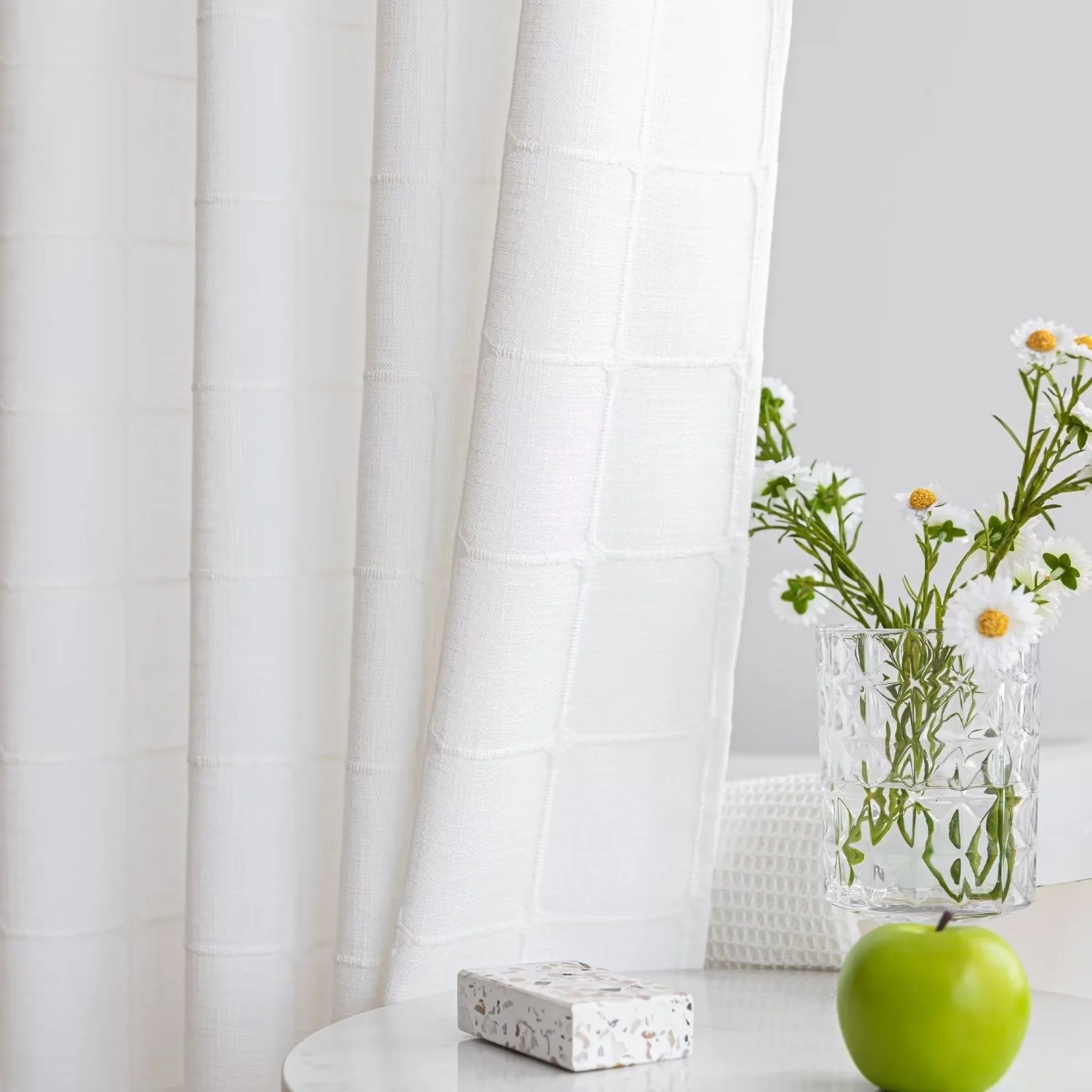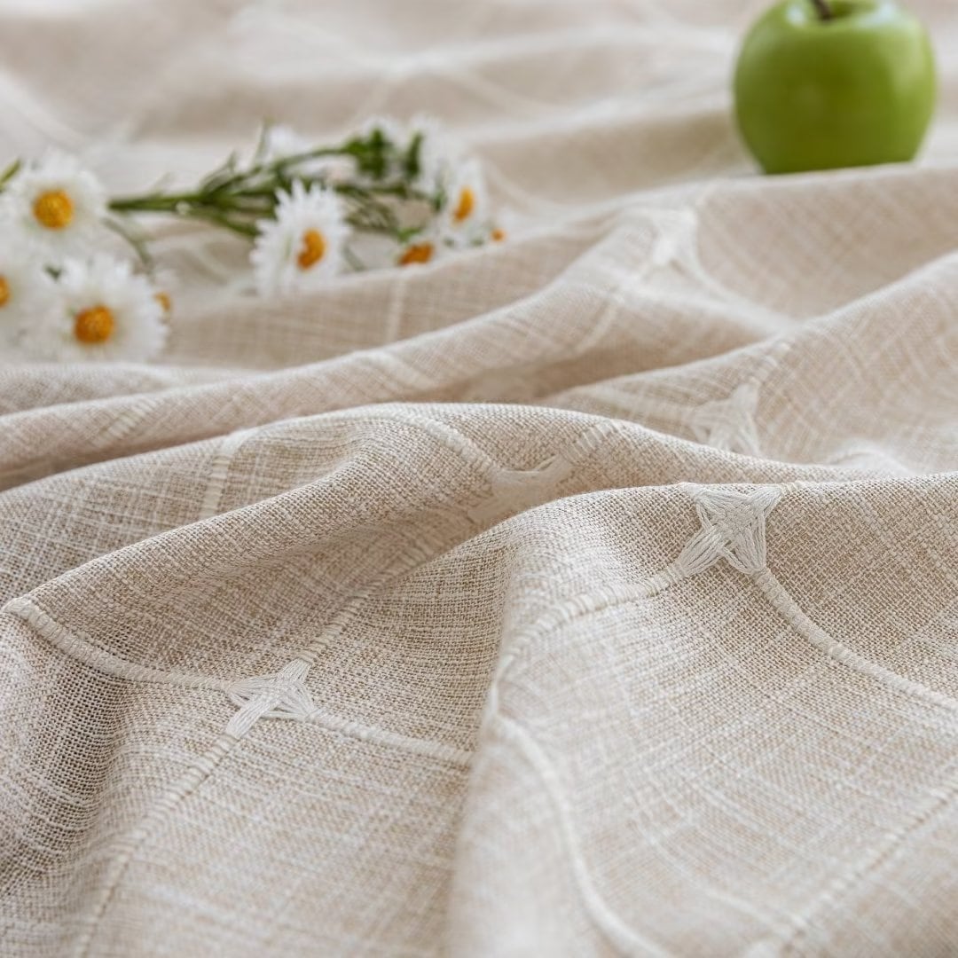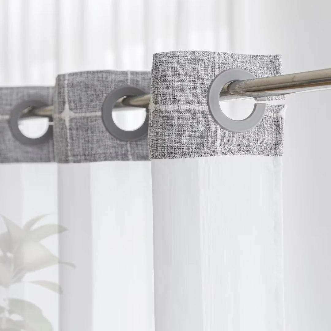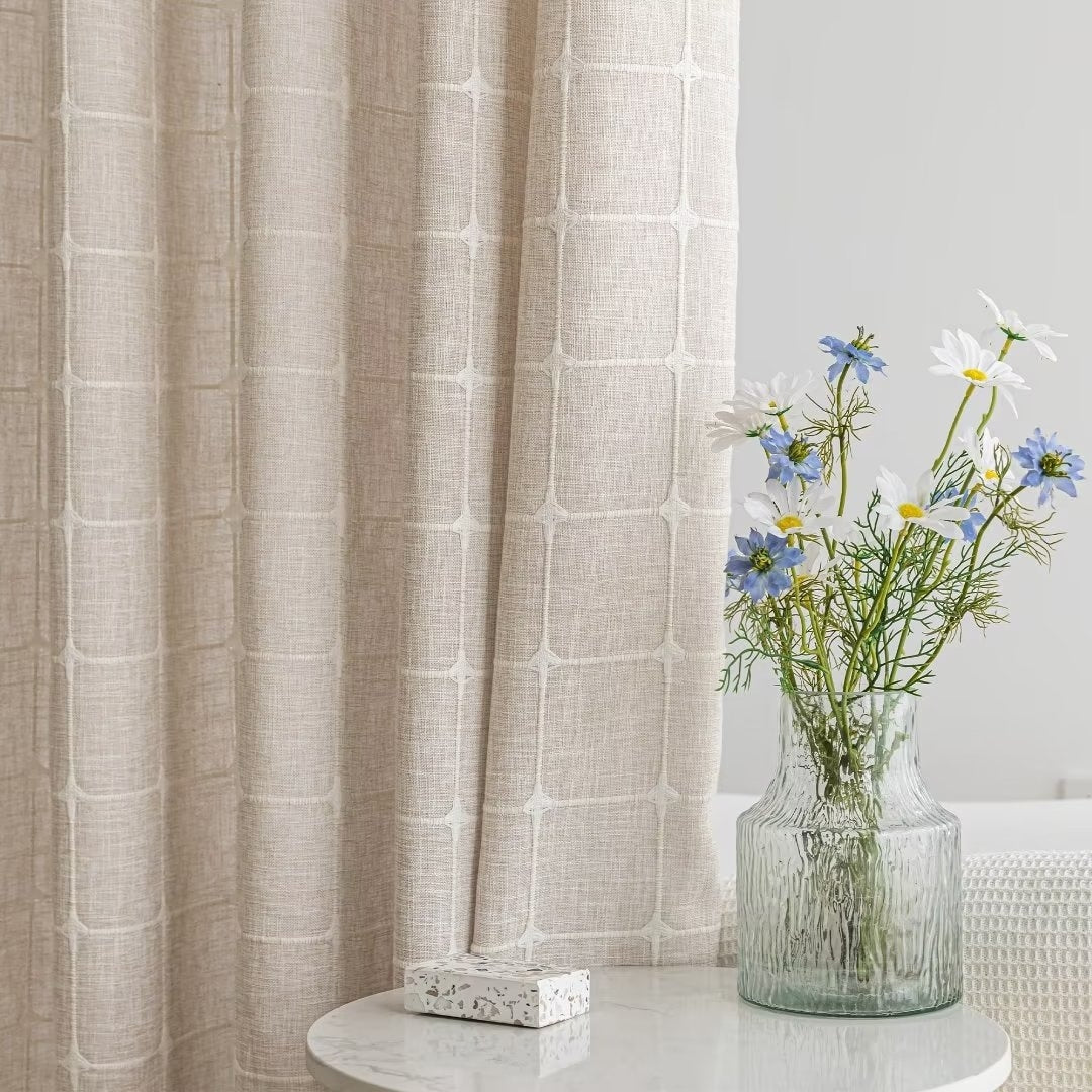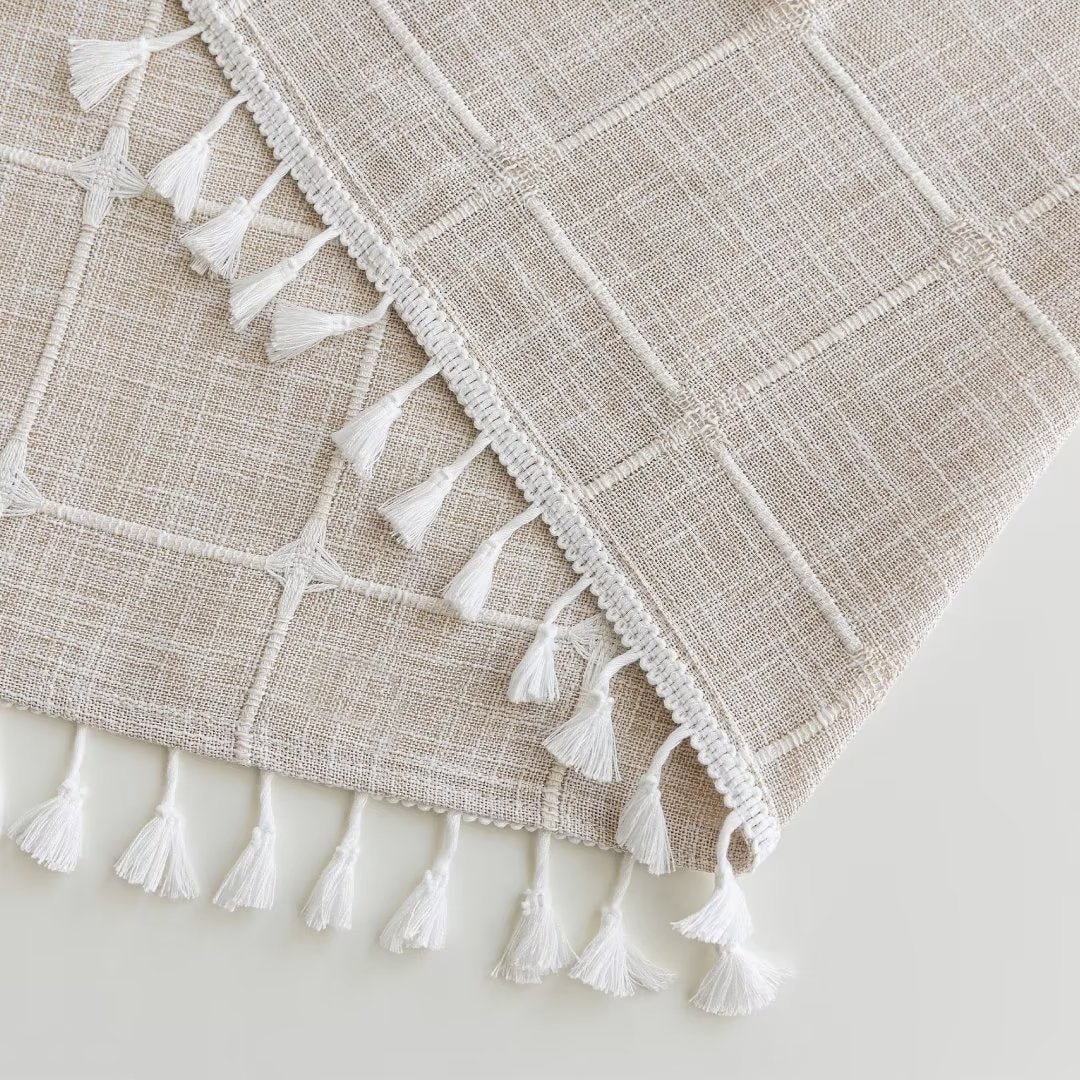 Introducing the Modern Farmhouse Geometric Tassel Shower Curtain, a luxurious addition to any bathroom that combines sophisticated design with practical functionality. Perfect for those who appreciate fine details and unique touches. Featured with captivating 3D embroidery geometric design and charming tassels at the bottom, this shower curtain effortlessly transforms your bathroom into a stylish retreat. Built-in split rings makes it easy for installment, no additional hooks needed, simply slide onto your shower rod for an instant upgrade. Top sheer window allows light and air to flow into and brightens your bath space. The detachable liner is easy to snap on/off for cleaning or replacing.