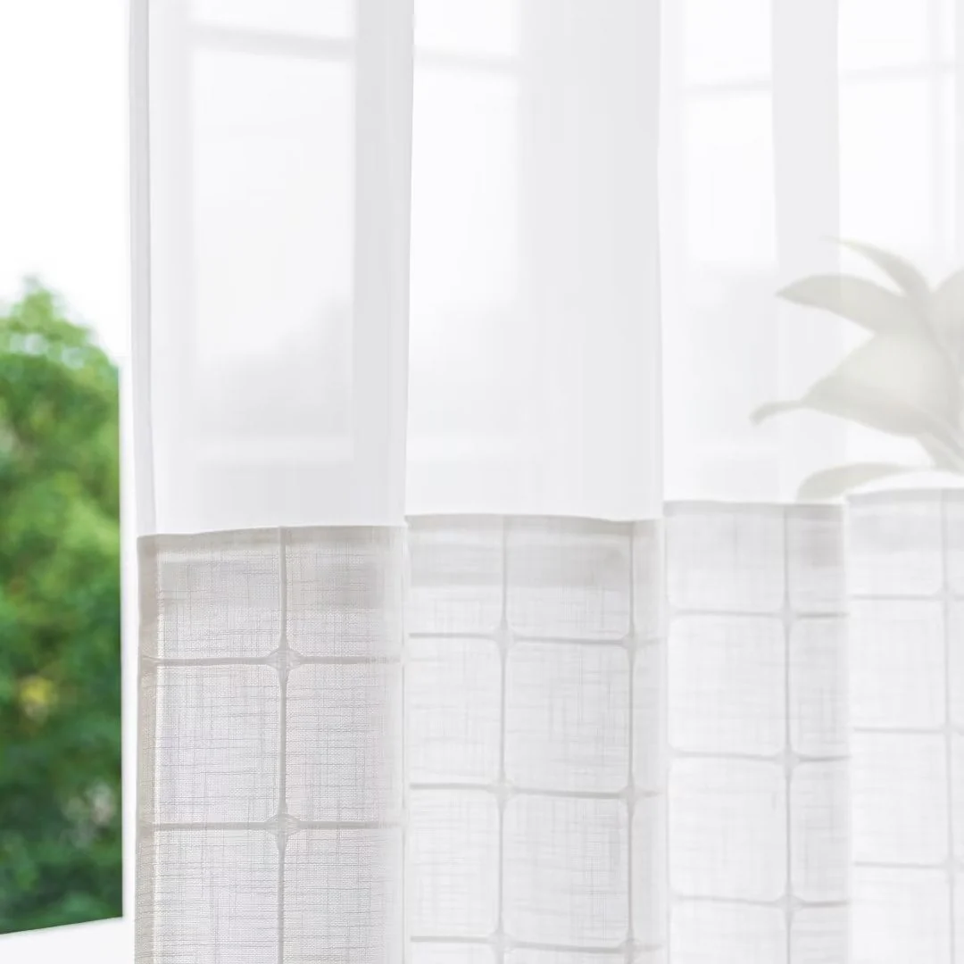 - Sheer window allows light and air into while brightening the bath space.