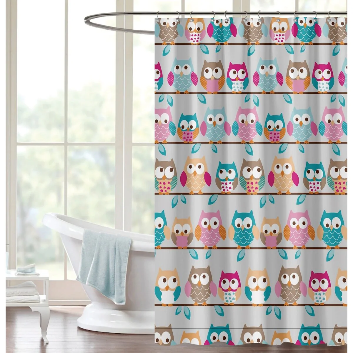 Add a fun and vibrant touch to your bathroom with the Novelty Shower Curtain Collection. This collection features 12 unique patterns, including Daisies, Fish, Flowers, Mushrooms, Marble, Owl Stripes, and more, ensuring there's a design to match any décor style. Transform your bathroom with the Novelty Shower Curtain Collection, combining playful designs with practical features for a delightful shower experience.